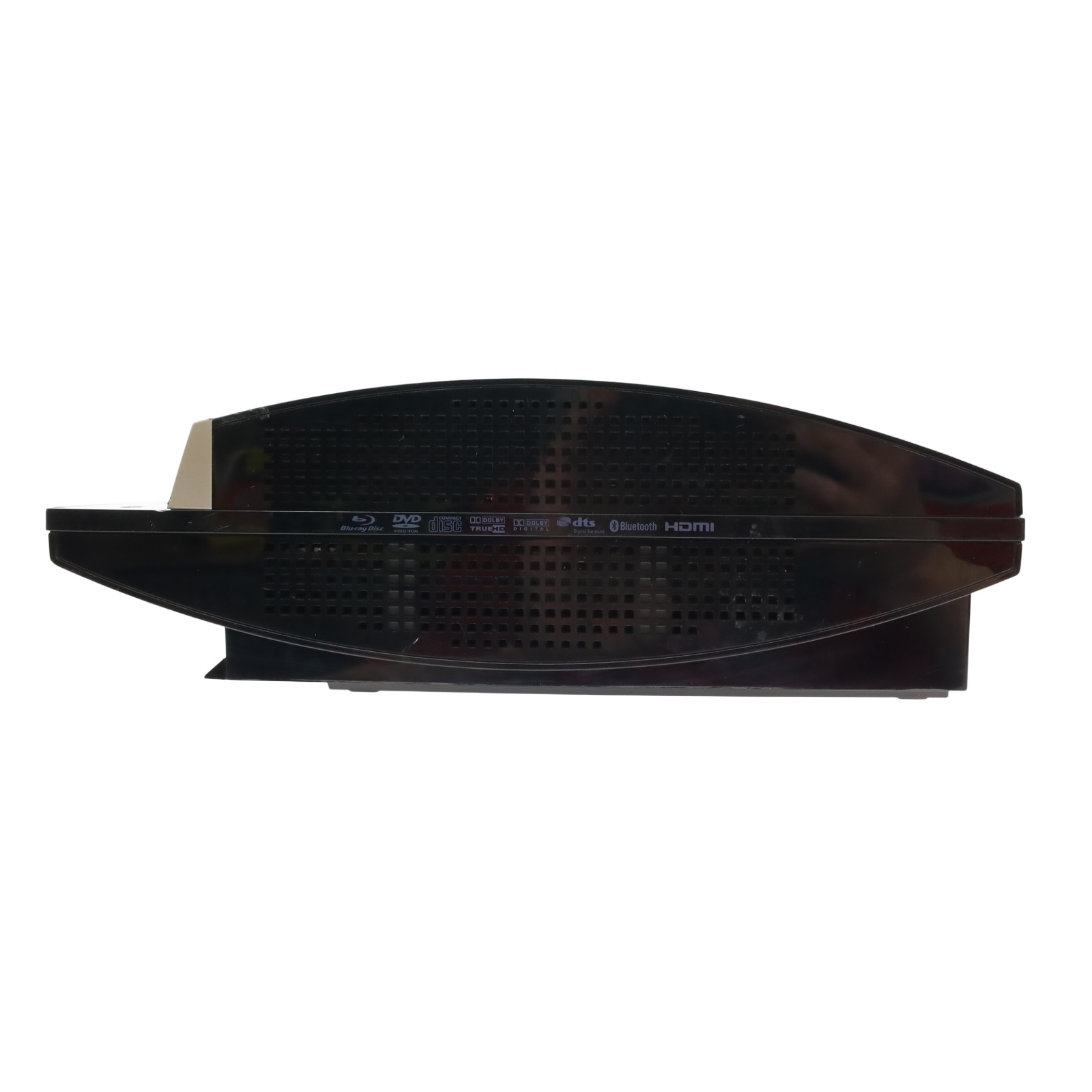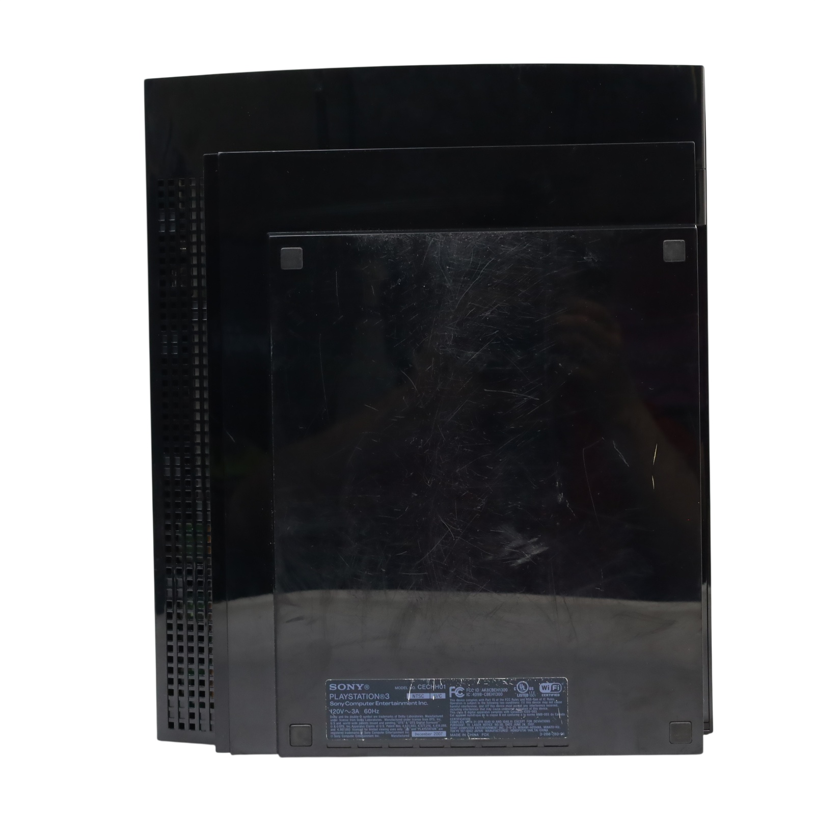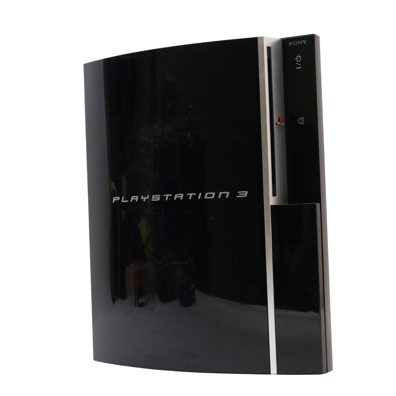 A black video game console with a 40GB hard drive. It supports Blu-ray discs, DVDs, and CDs, offering a comprehensive entertainment experience. The console features built-in Wi-Fi, an HDMI output for high-definition video, and multiple USB ports for connecting accessories. Additionally, it includes Bluetooth for wireless peripherals and an Ethernet port for wired internet connections. With its powerful hardware and wide range of compatible games, the PlayStation 3 CECHA01 provides an immersive gaming experience.