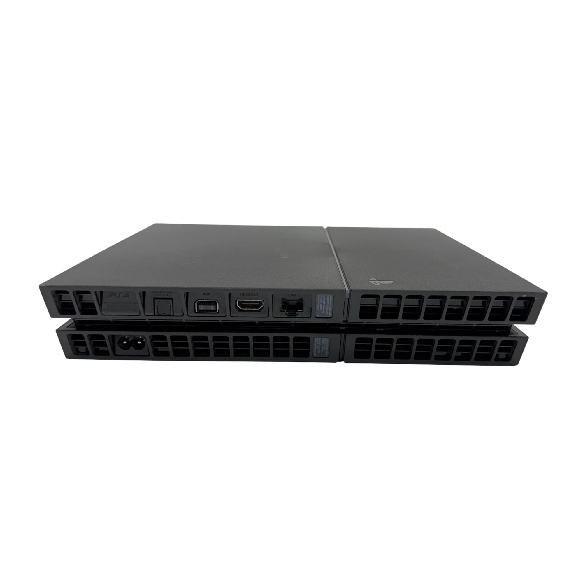 This Sony PlayStation 4 delivers high-quality gaming performance with a sleek, compact design in jet black. This model features a 500GB hard drive, providing ample storage for games and multimedia. It supports a wide range of PlayStation 4 titles and offers immersive gameplay experiences with smooth graphics and responsive controls.