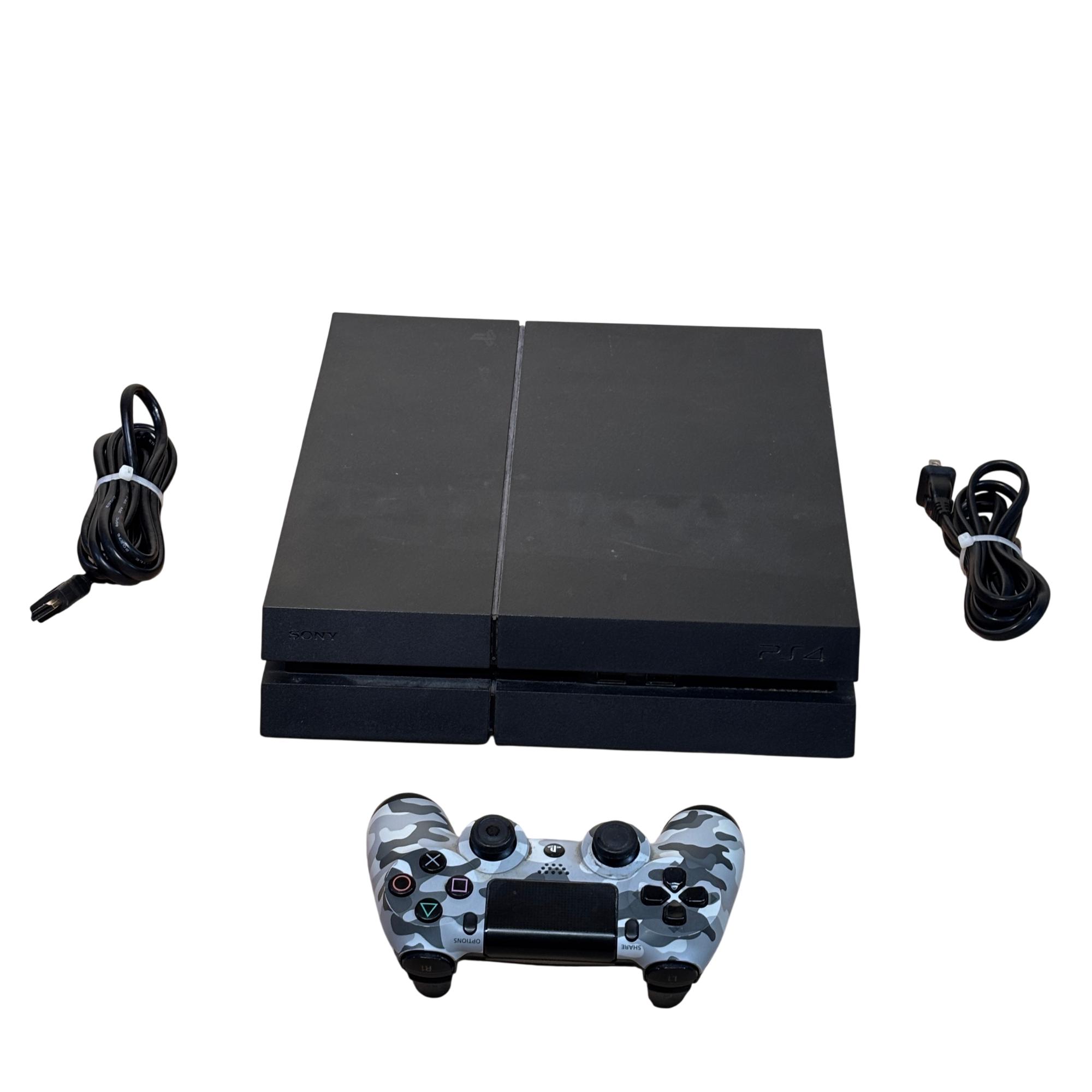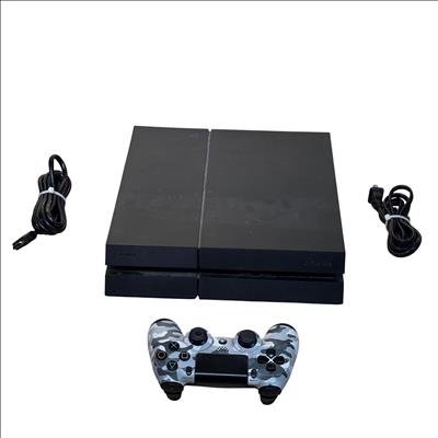 Sony PlayStation 4 PS4 CUH-1215A 500GB Black Console features a sleek matte black finish and robust hardware designed for immersive gaming experiences. It includes a camouflage patterned DualShock 4 controller that offers precise control with ergonomic design and responsive buttons. This model supports a wide range of games and multimedia applications, making it a versatile entertainment system optimized for lasting performance.