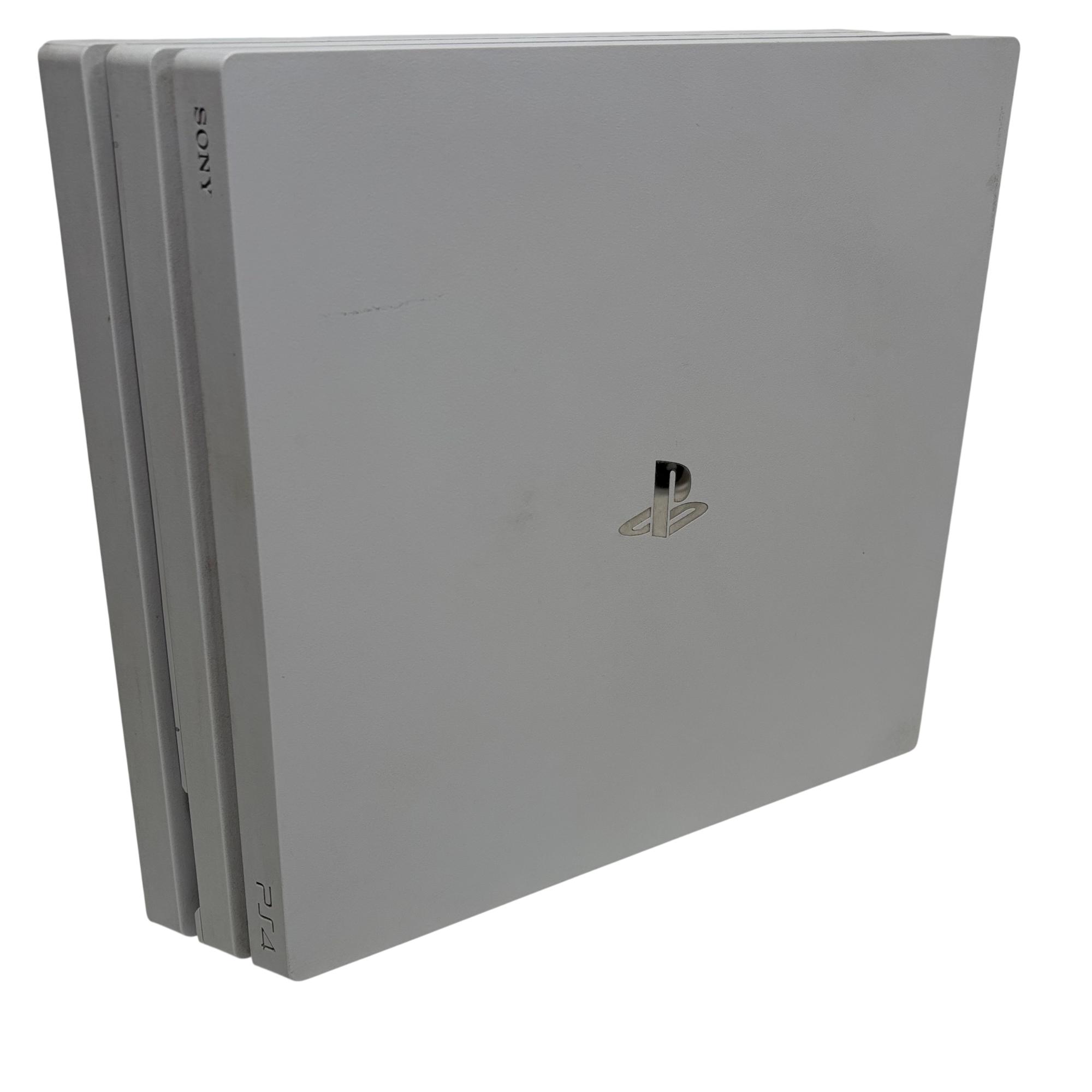 Sony PlayStation 4 Pro 1TB Glacier White (Model CUH-7015B) delivers enhanced gaming performance with a sleek white design and powerful hardware. This console supports 4K gaming and offers a spacious 1TB storage capacity to accommodate a large library of games and media. The included controller features ergonomic design and responsive controls, making it ideal for immersive gameplay sessions.