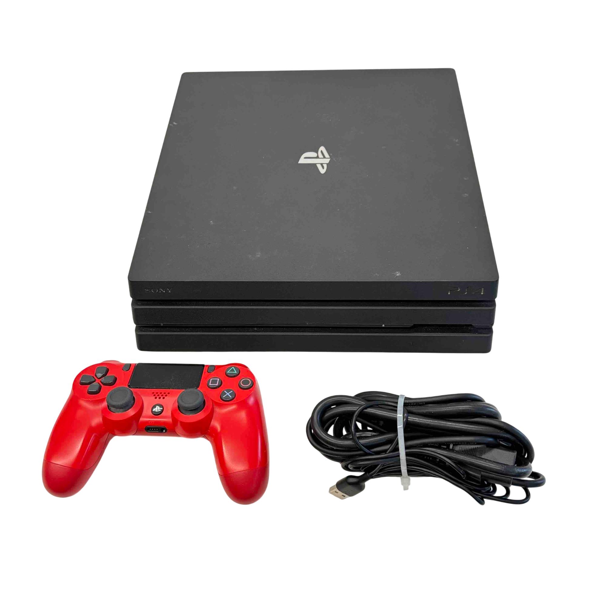 Elevate your gaming experience with the Sony PlayStation 4 Pro CUH-7015B. This powerful console comes complete with a striking red DualShock 4 wireless controller and essential cables, delivering stunning graphics and smoother gameplay. Dive into immersive worlds with improved performance and enjoy seamless gaming sessions.