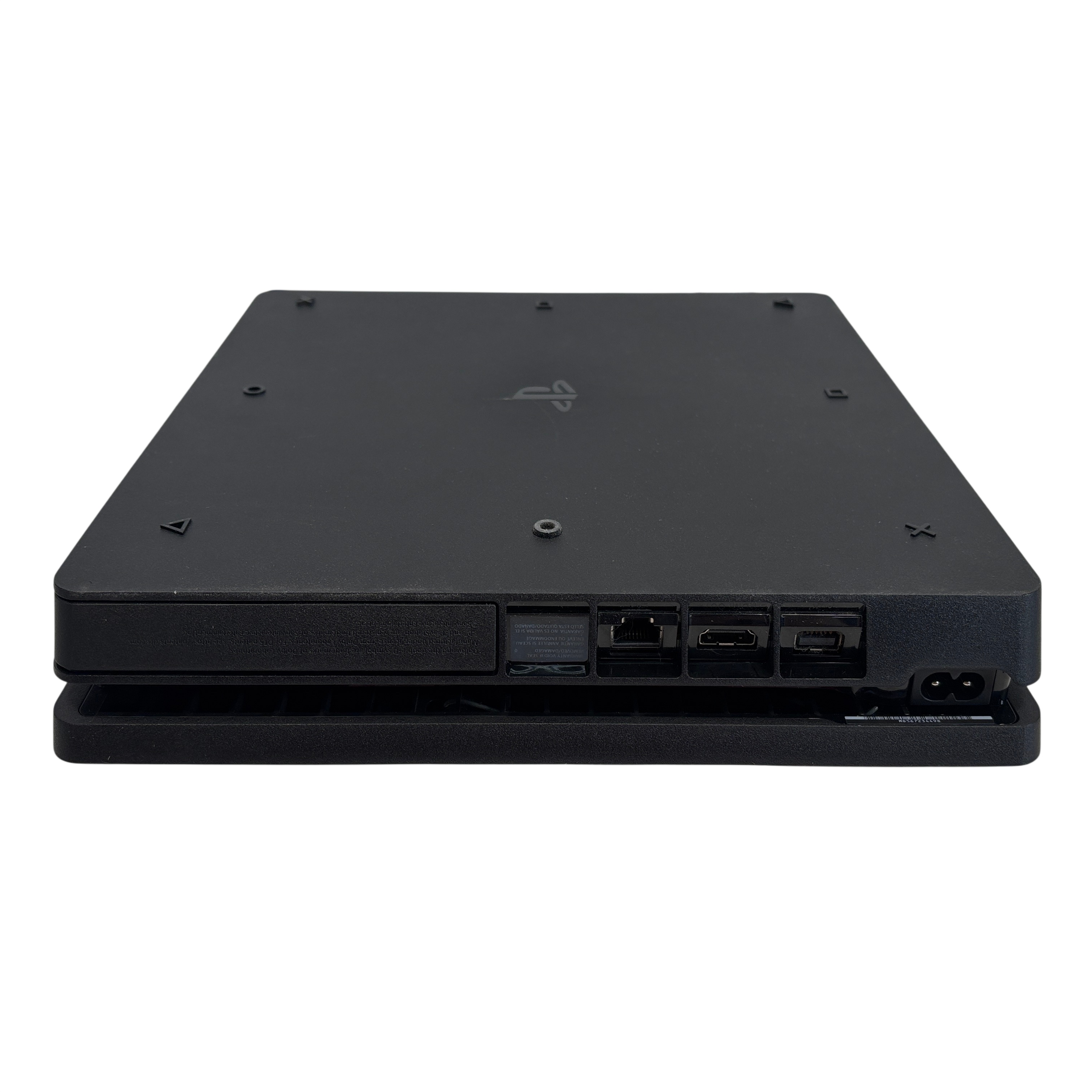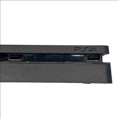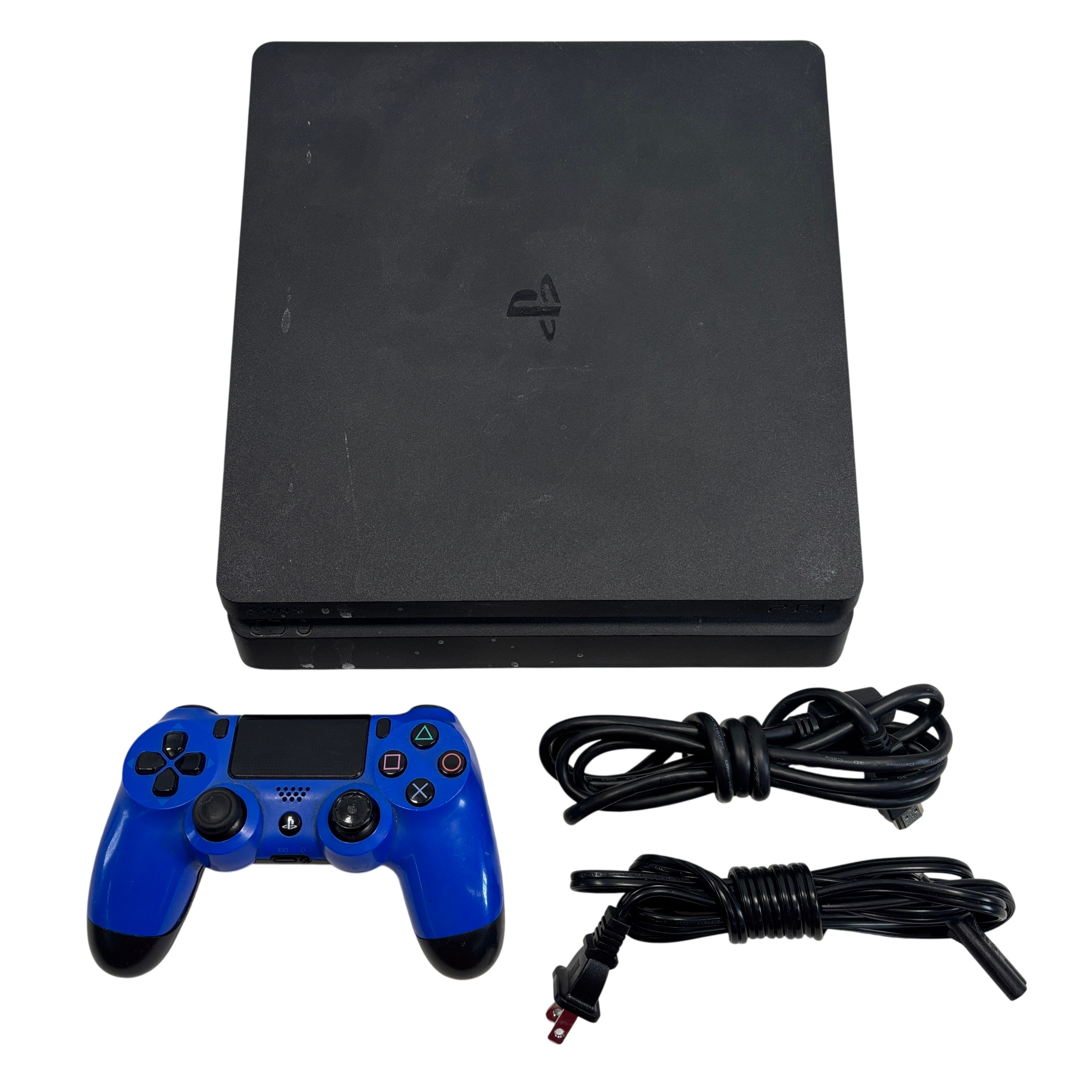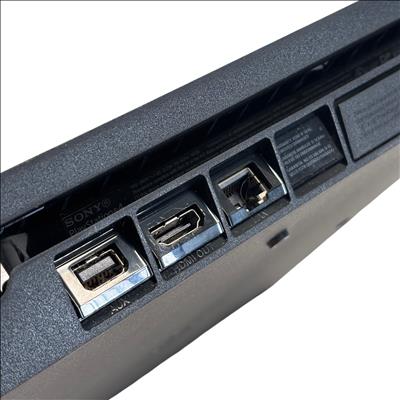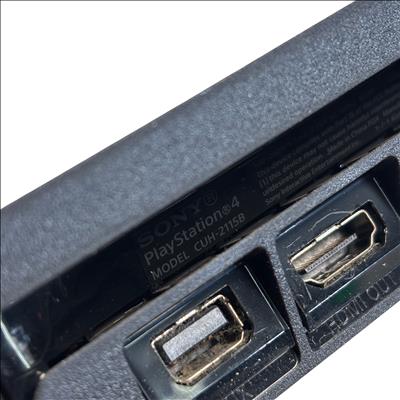The Sony PlayStation 4 Slim CUH-2115B is a compact and powerful video game console designed for immersive gaming experiences. This console features a sleek black finish with a slim form factor. Included in the set is a vibrant blue DualShock 4 wireless controller, along with essential cables such as power and HDMI for easy setup. This model supports HDMI output for high-definition video and includes a variety of ports for versatile connectivity options. Ideal for gamers seeking a reliable and space-efficient console with a gaming accessory package.