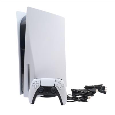 Sony PlayStation 5 Disc Edition is previously owned. Shows signs of use with some scuffs and marks on the side panels. Controller is tested and in functioning condition. See photos for details.