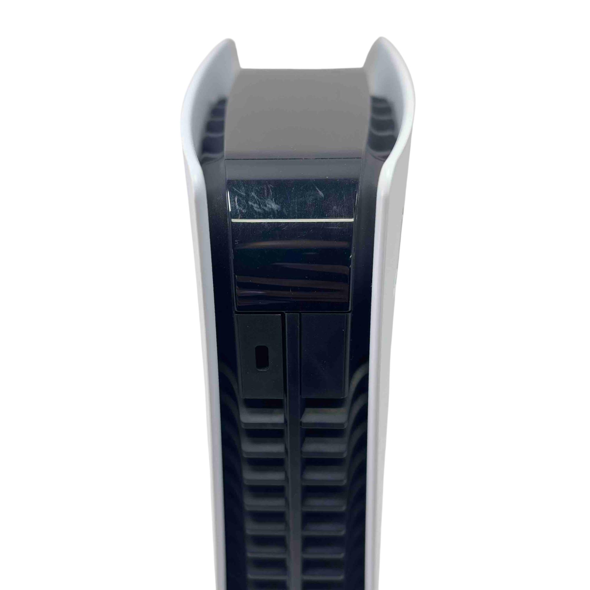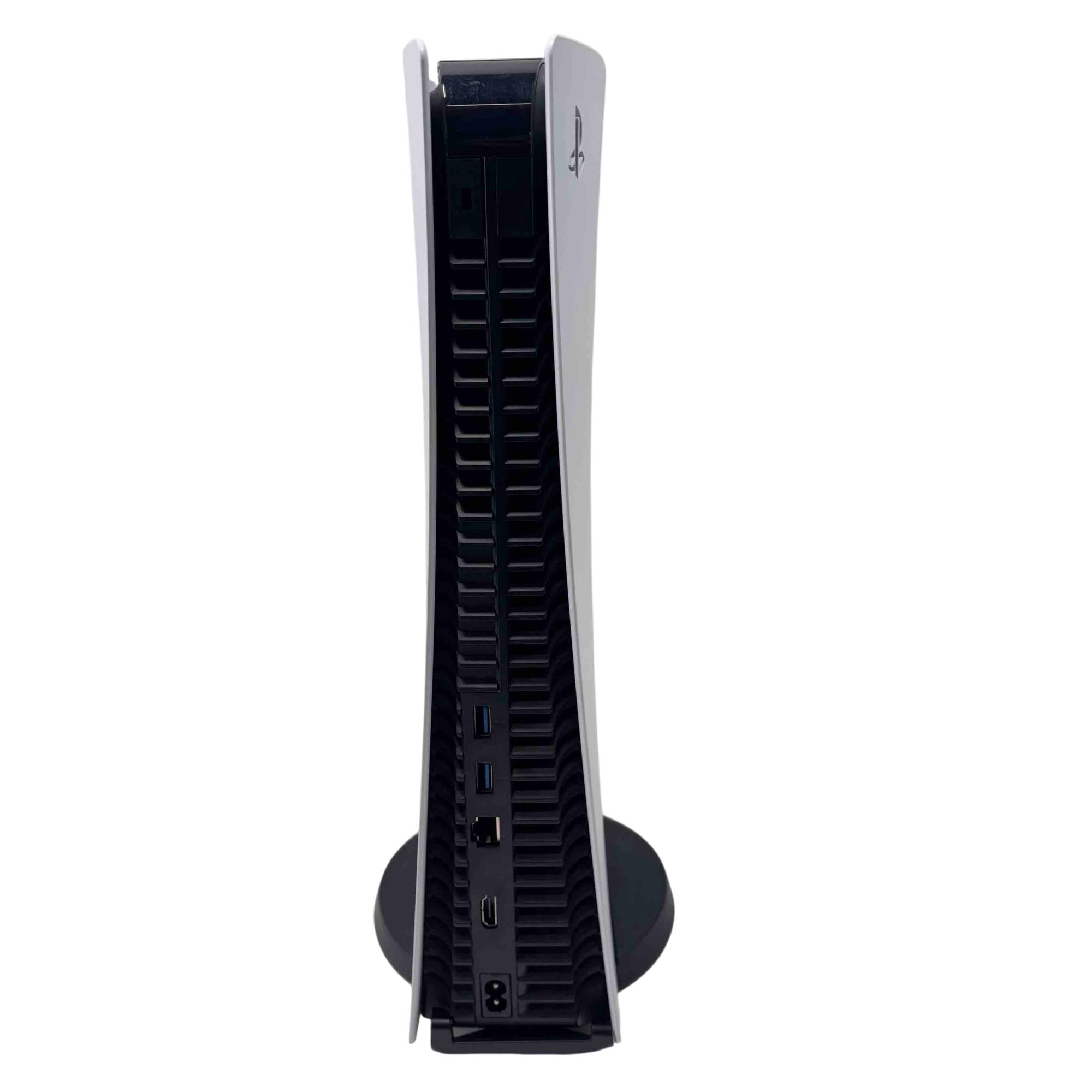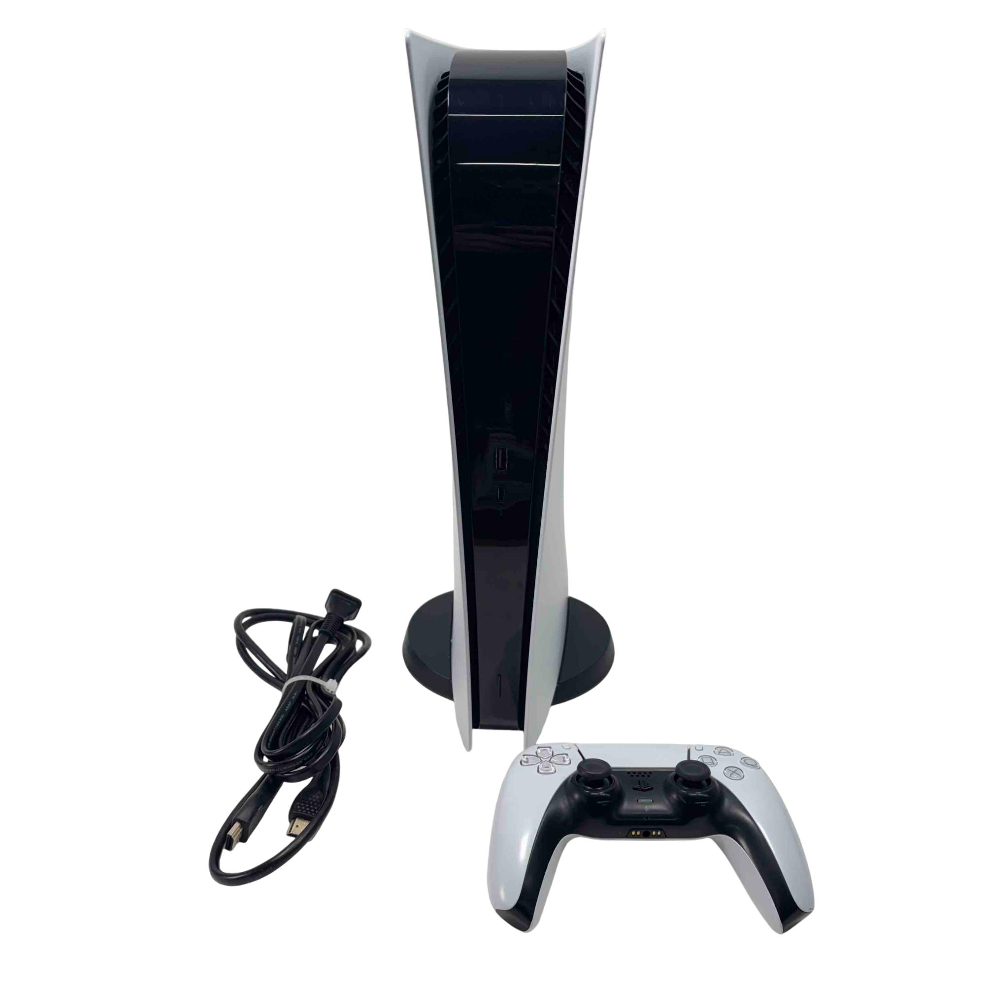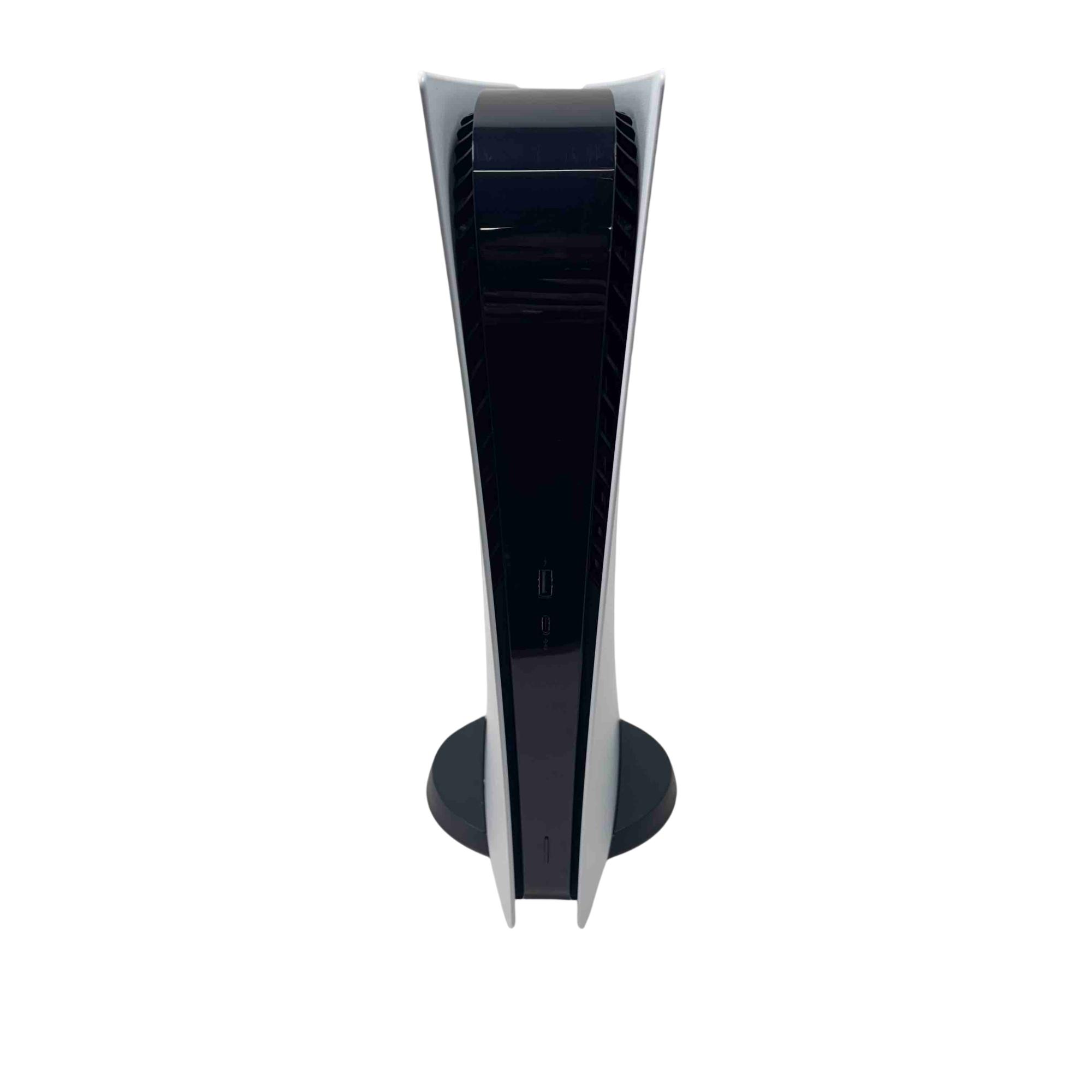 Experience next-level gaming with the Sony PS5 Digital Edition Gaming Console, Model CFI-1215B. With stunning graphics and ultra-fast load times, immerse yourself in your favorite games like never before. This sleek black and white console comes with a DualSense Wireless Controller, offering a seamless and responsive gaming experience.