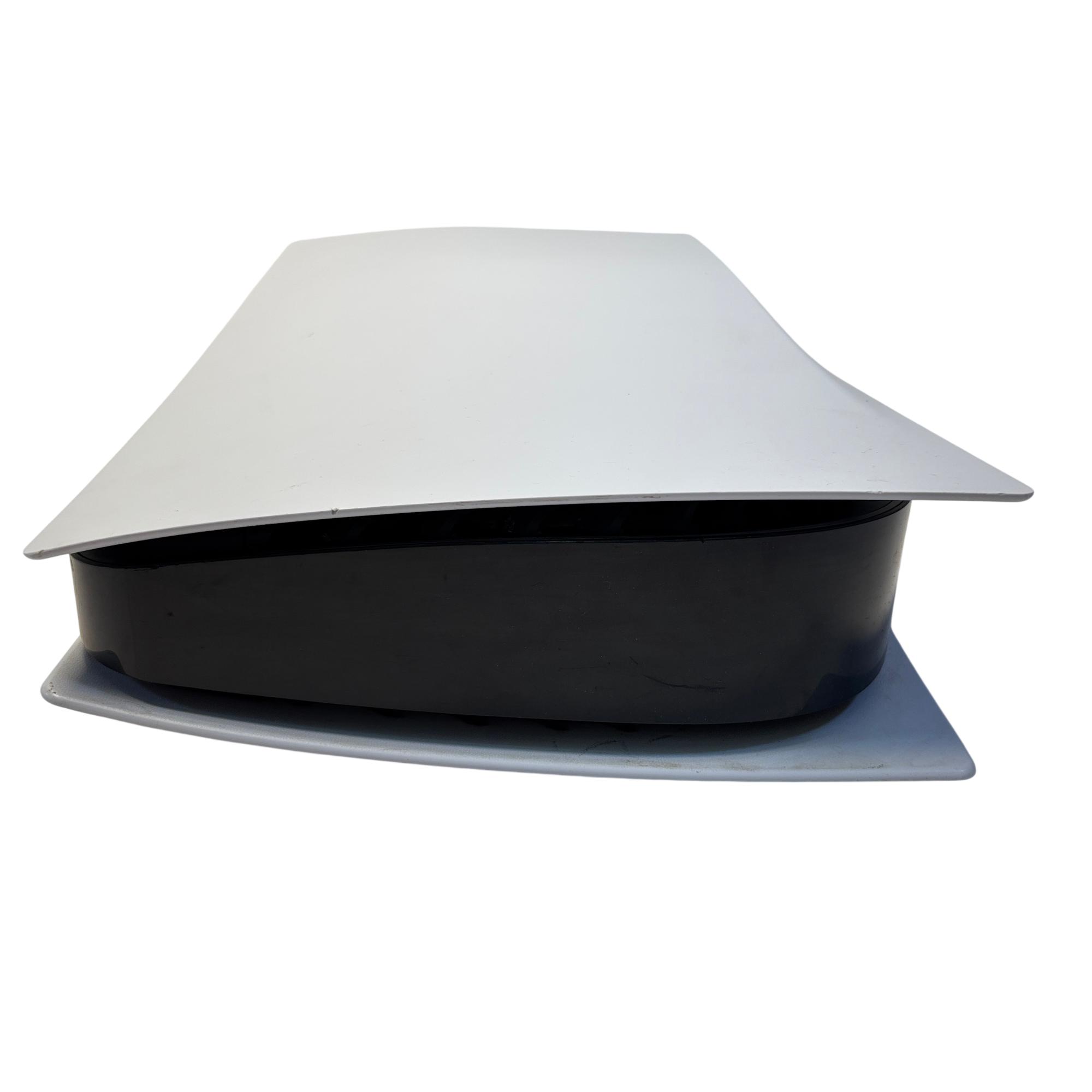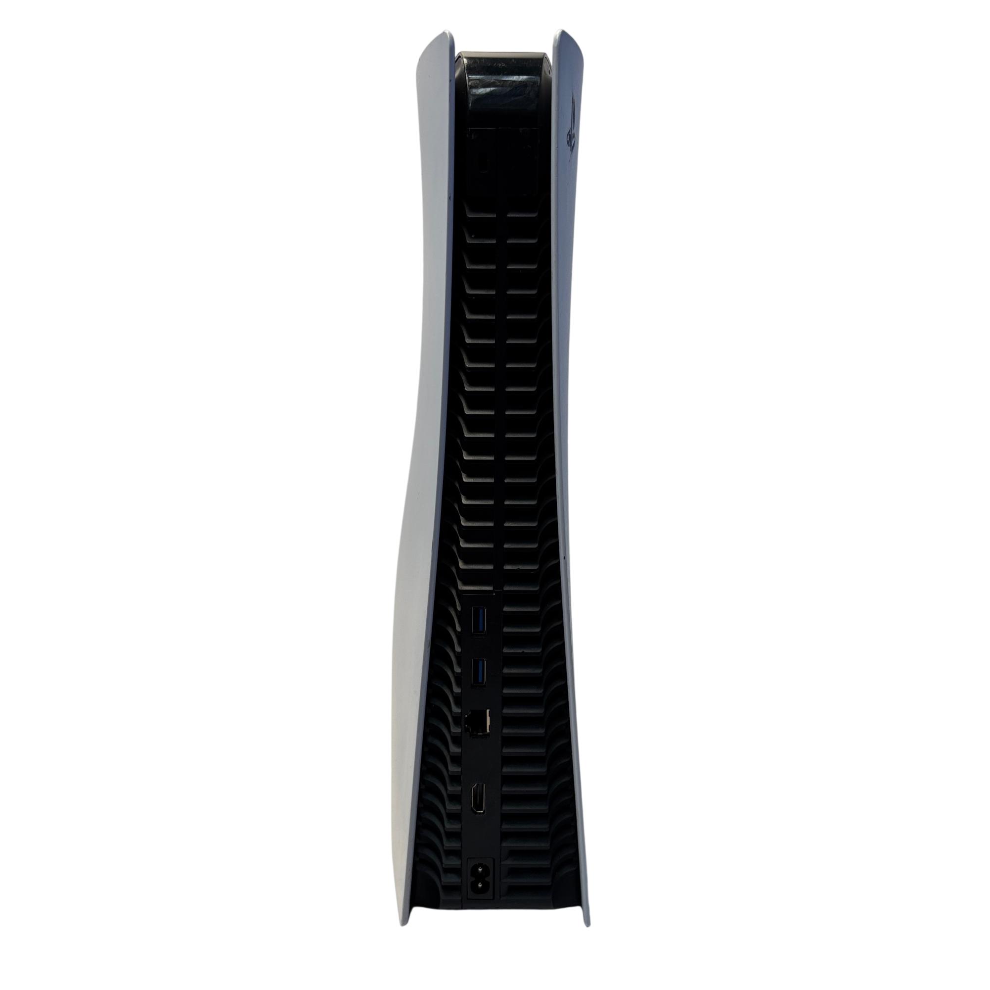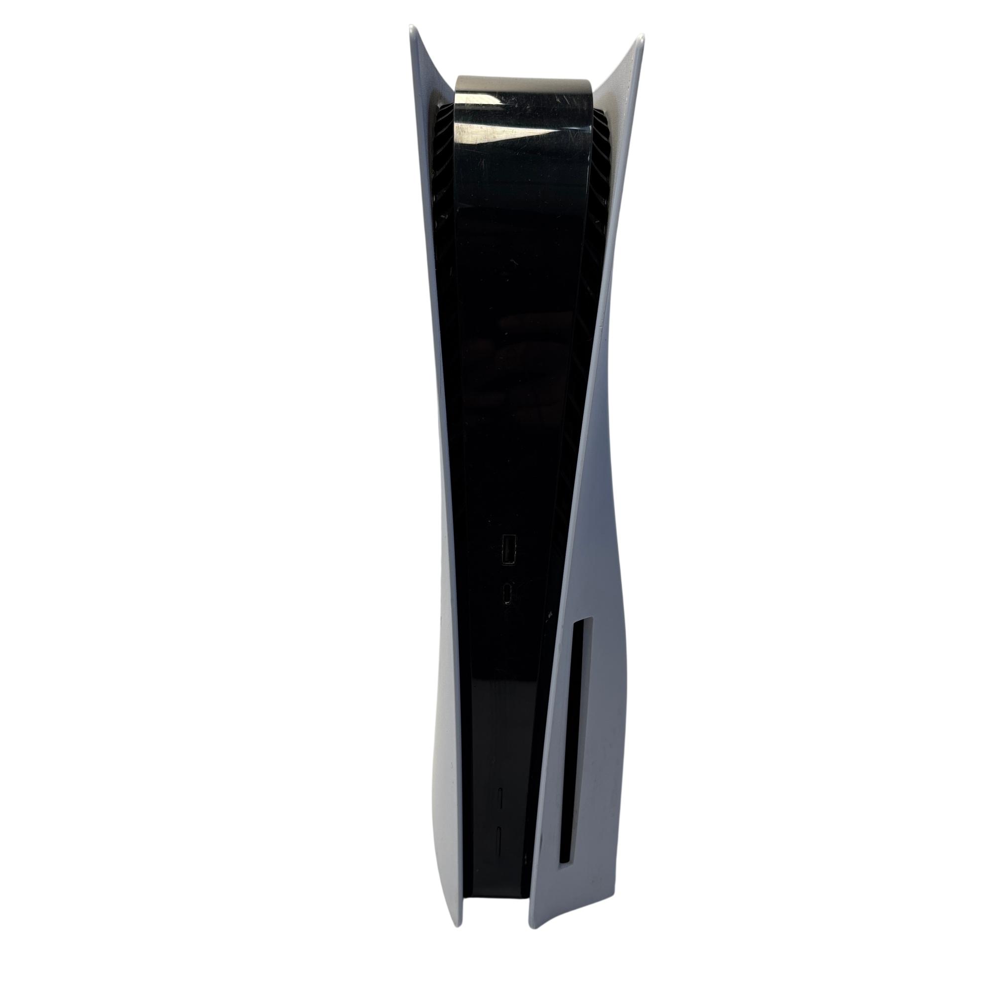 The Sony PlayStation 5 Disc Edition features a sleek black and white design with advanced hardware optimized for next-generation gaming. This console supports Ultra HD Blu-ray playback and delivers high-speed performance for immersive gaming experiences. Its distinctive aesthetic combines contemporary style with functional venting to ensure efficient cooling during extended play sessions.