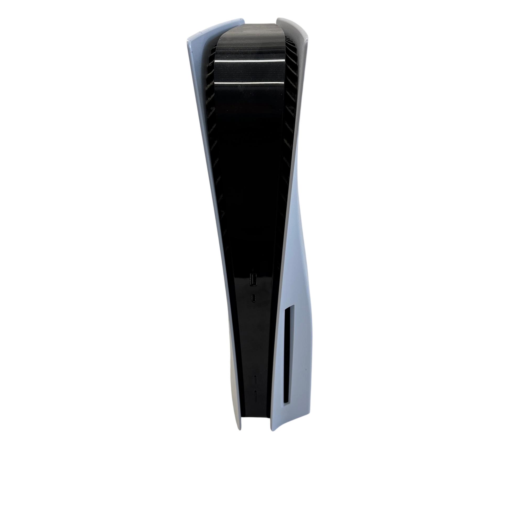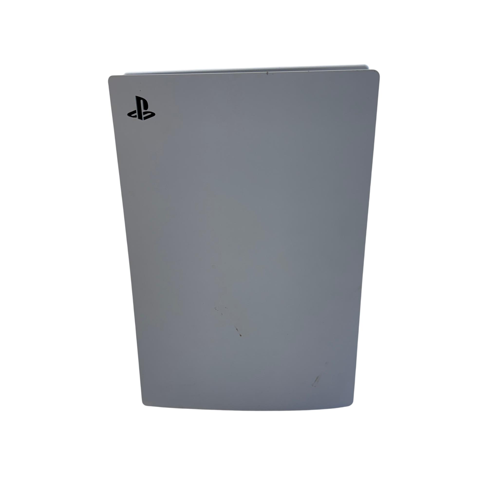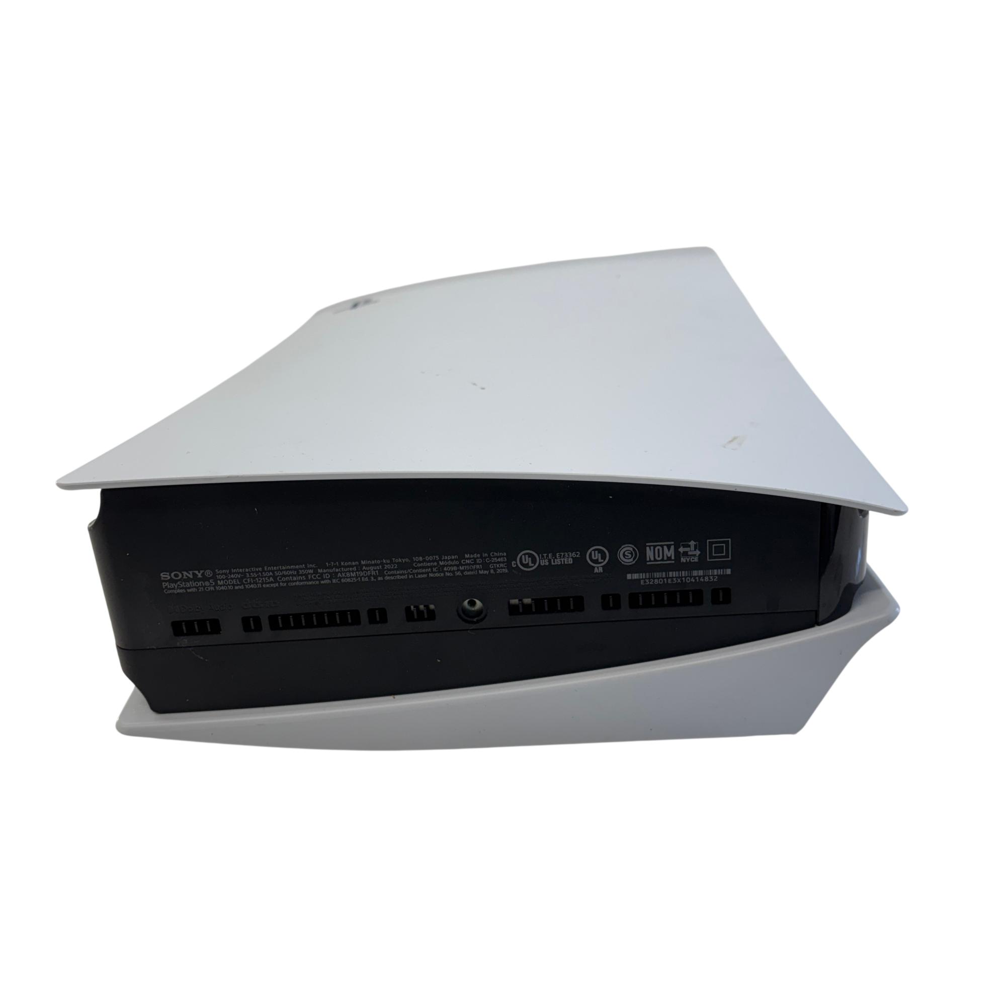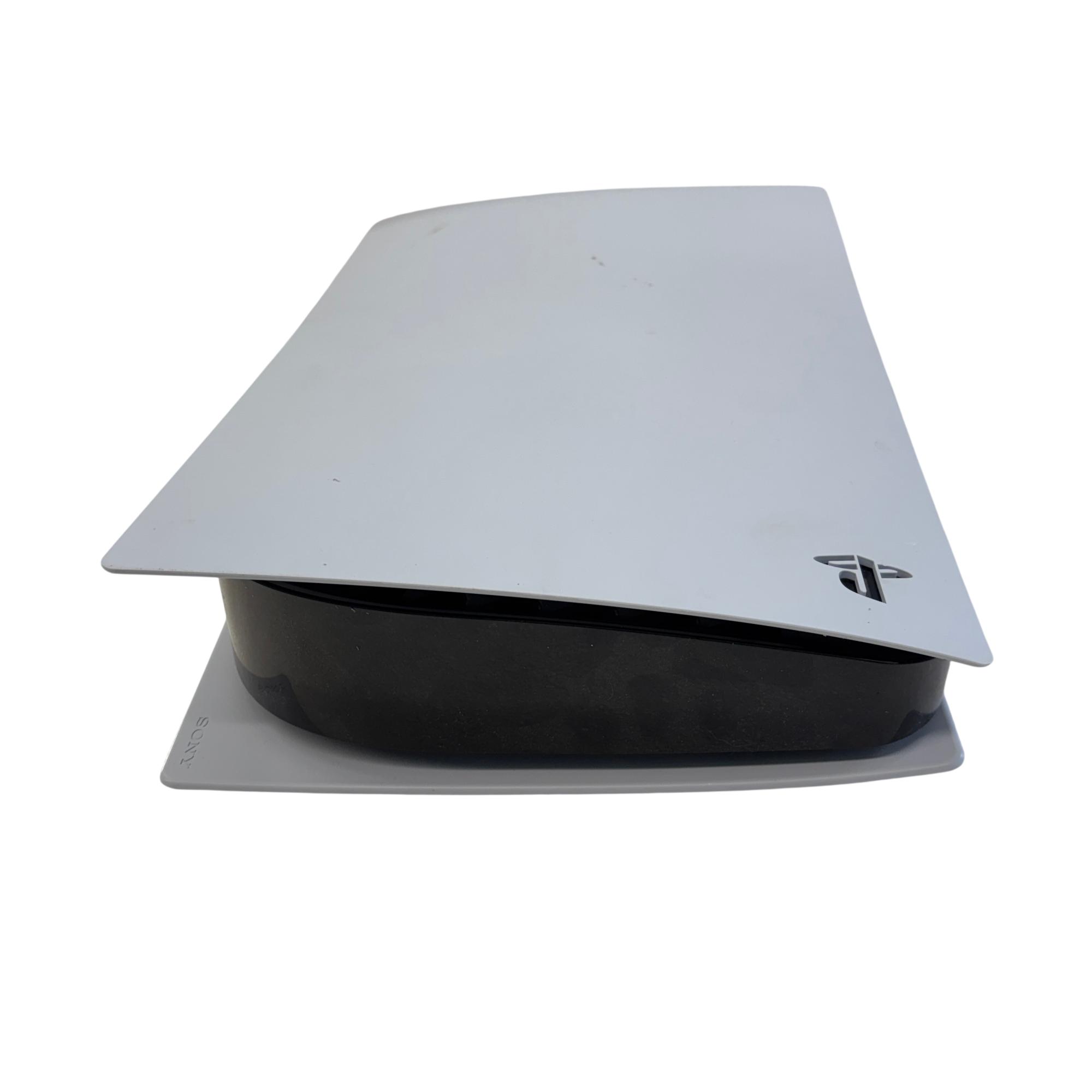 Sony PlayStation 5 Disc Edition CFI-1215A 825GB Console with Camouflage DualSense Controller features a sleek white design with black accents and an 825GB SSD for fast loading of games and applications. This console supports 4K UHD gaming and includes a DualSense wireless controller with adaptive triggers and enhanced haptic feedback for immersive gameplay experiences.