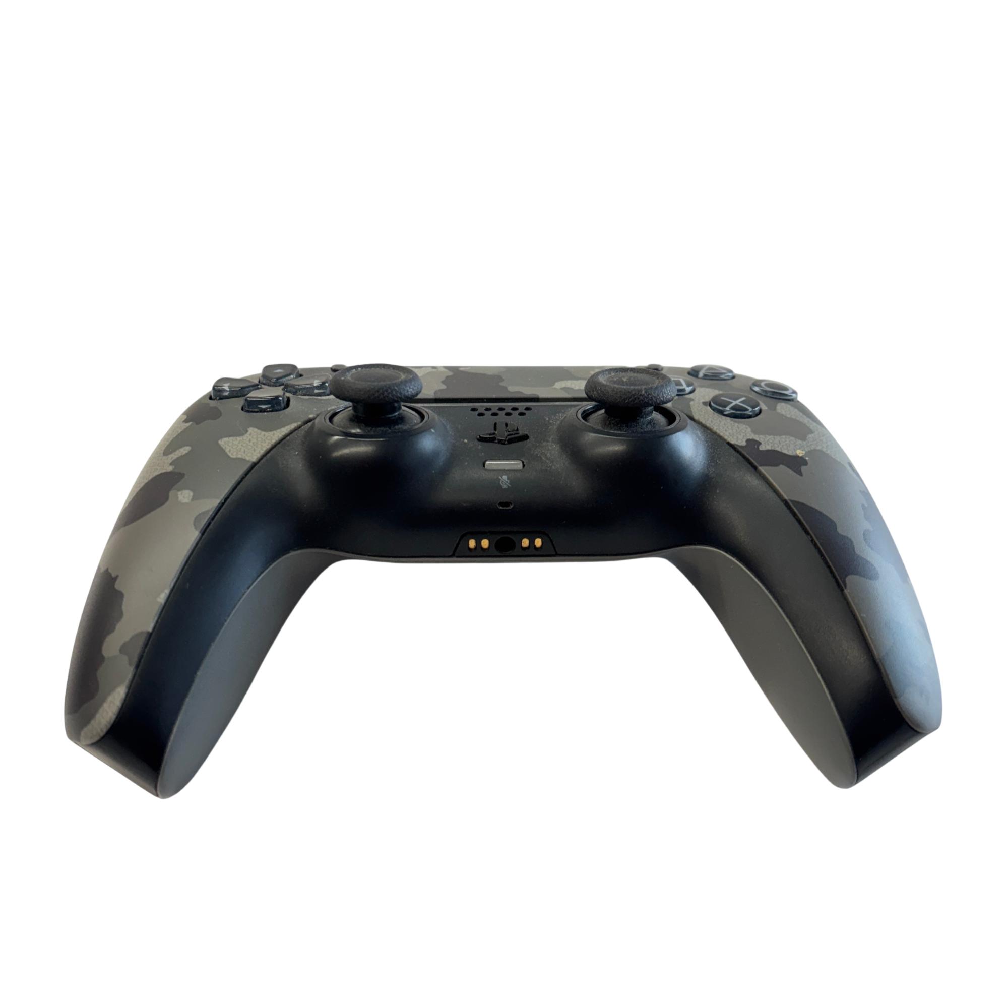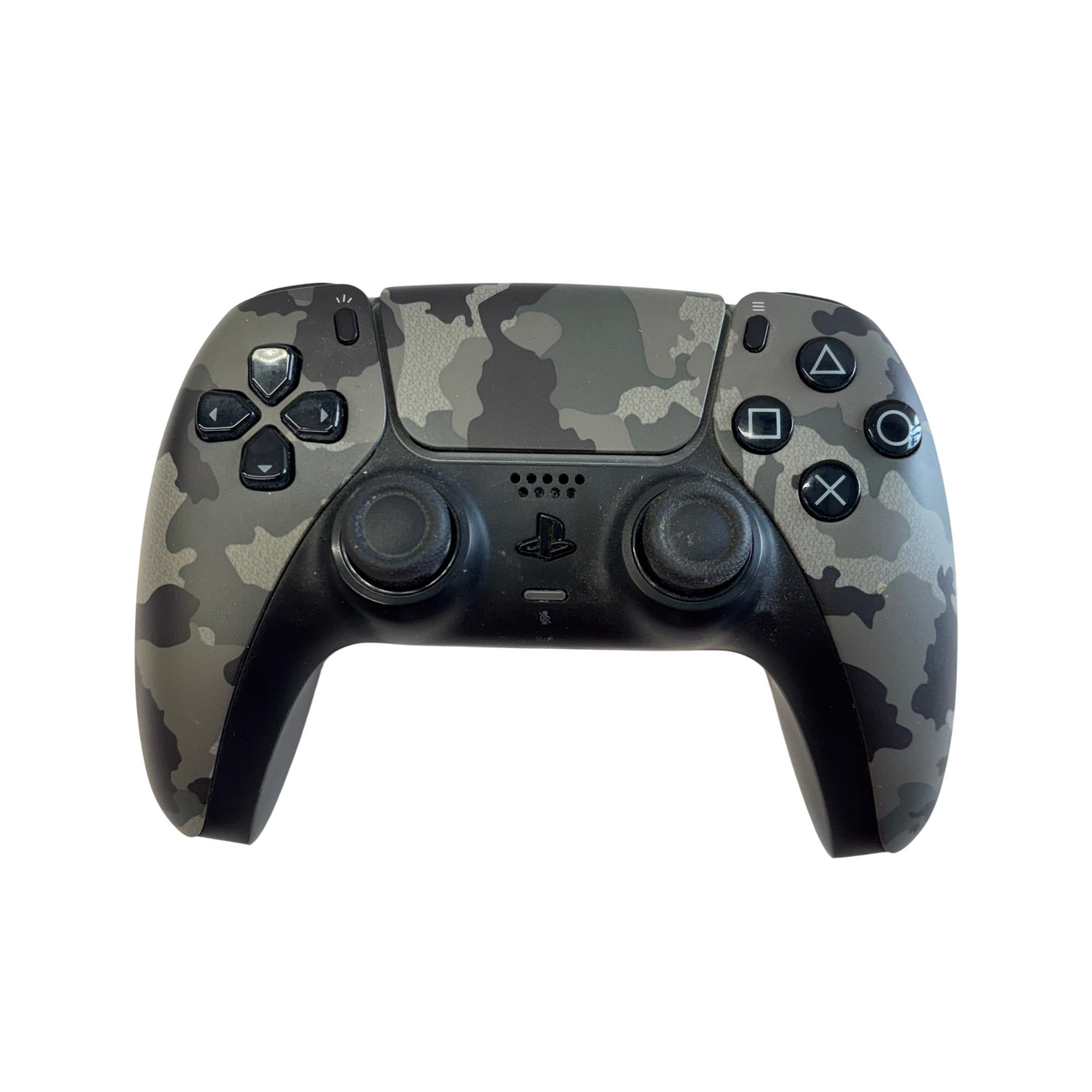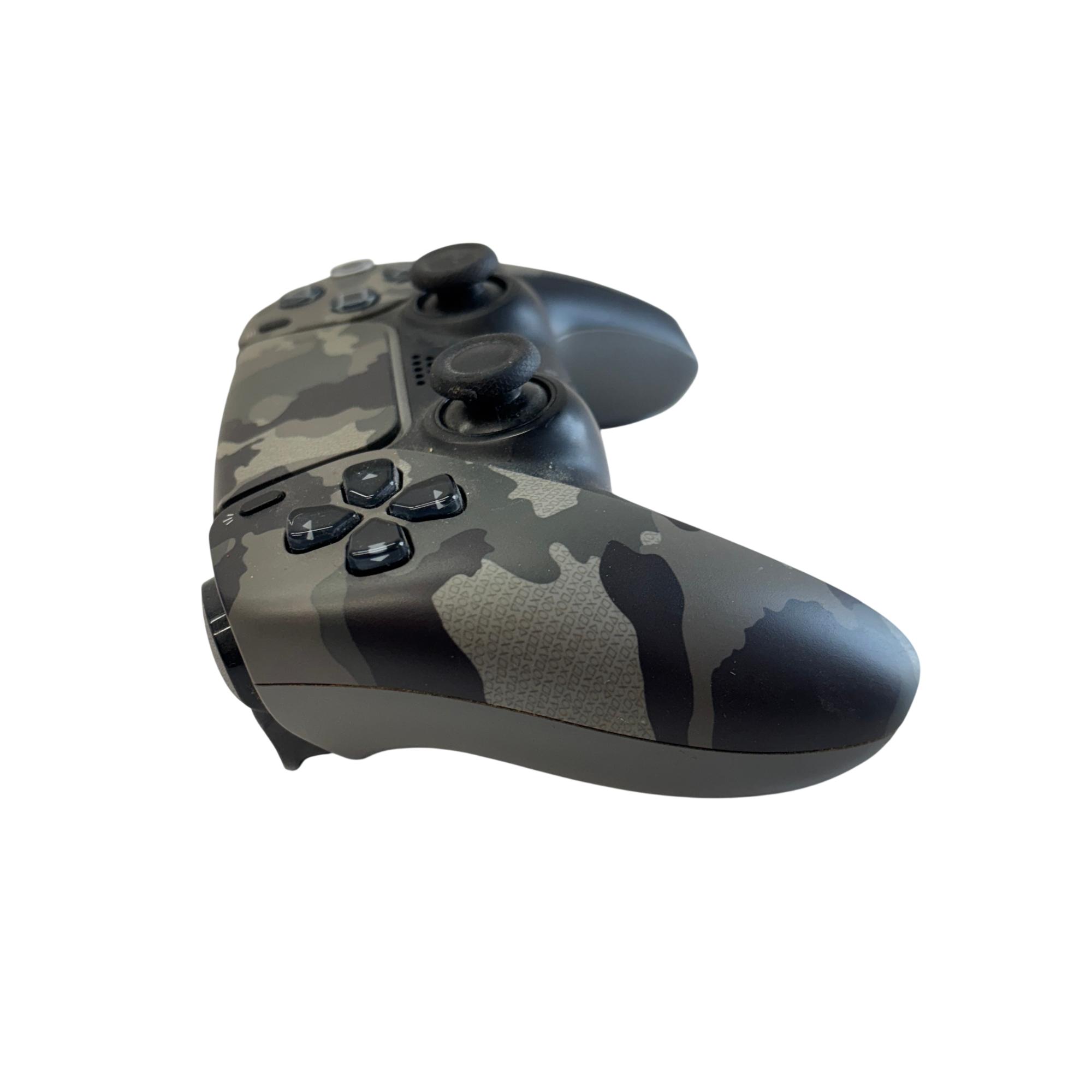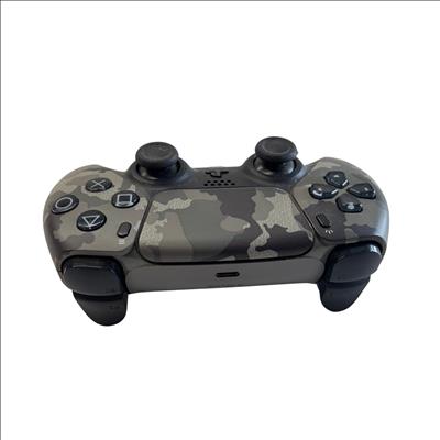 This Sony PlayStation 5 DualSense Wireless Controller features a distinctive gray camouflage design that enhances grip and style during gameplay. Engineered with upgraded hall-effect joysticks and adaptive triggers, it delivers precise control and immersive feedback for an enhanced gaming experience on the PlayStation 5 console.