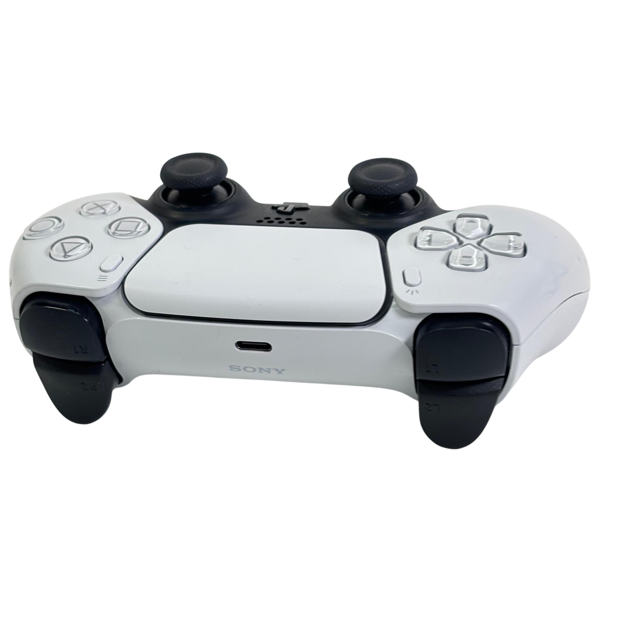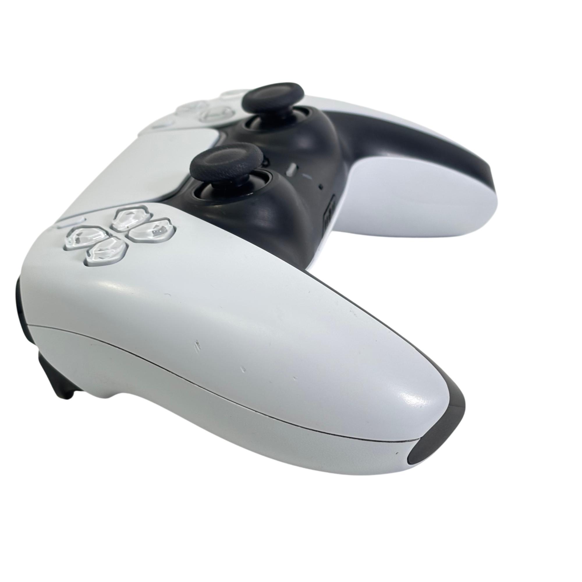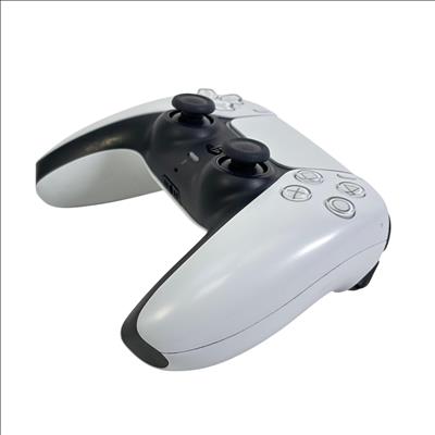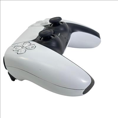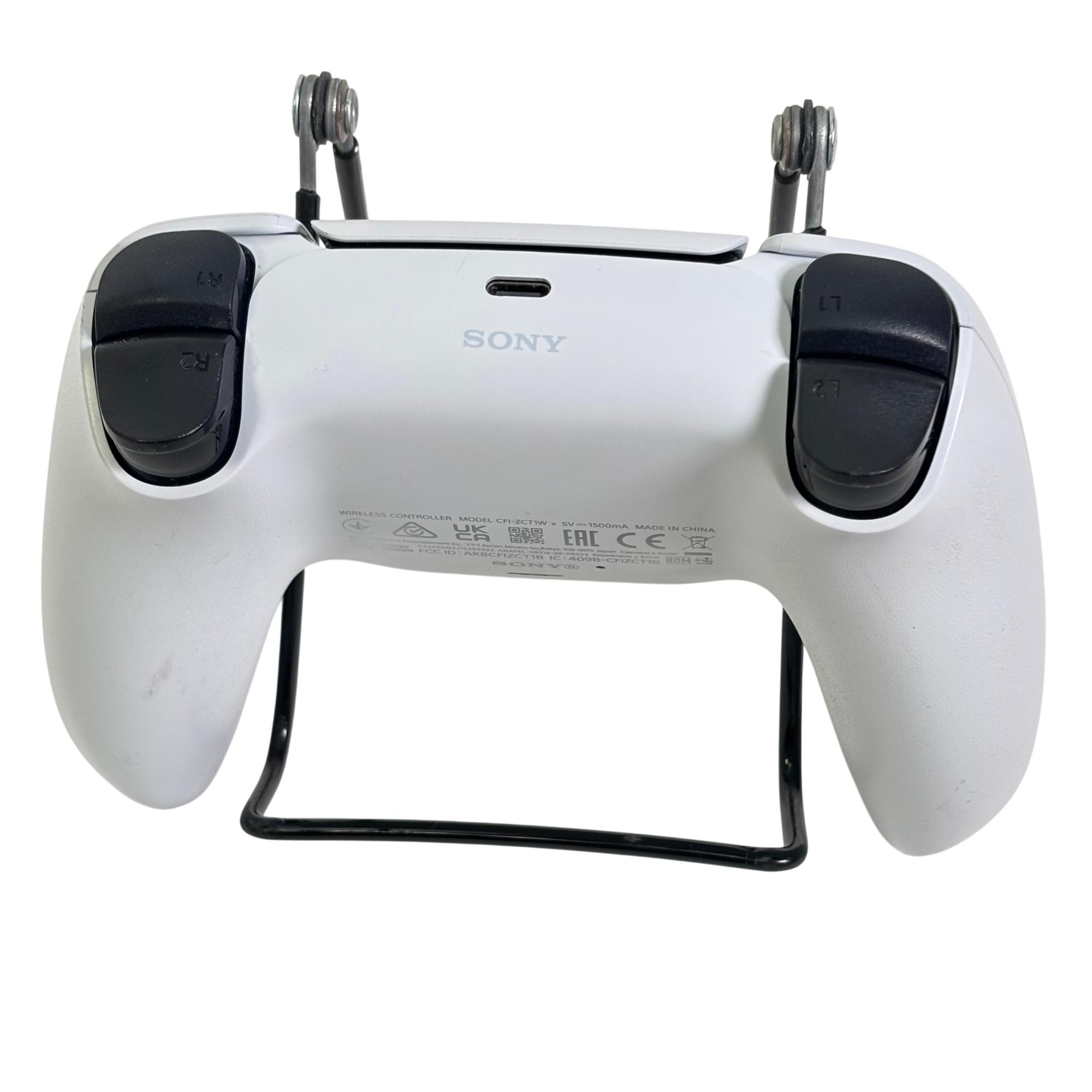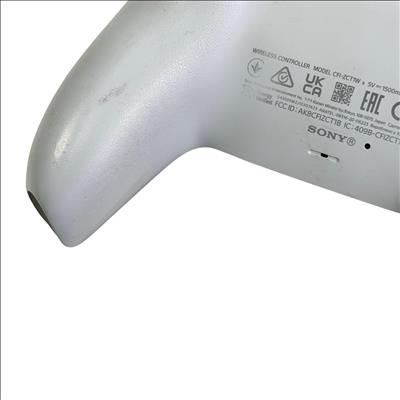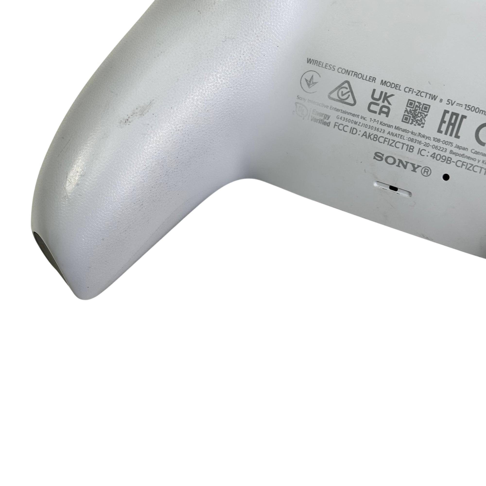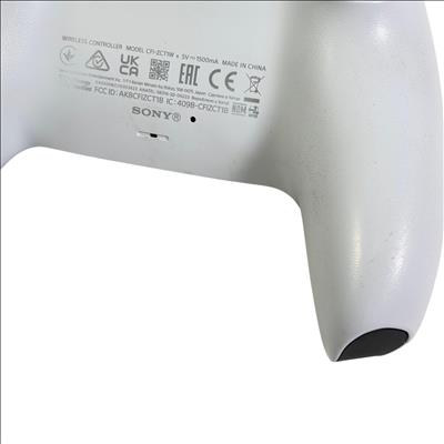 Sony PlayStation 5 DualSense Wireless Controller Model CFI-ZCT1W in white features advanced haptic feedback and adaptive triggers for immersive gameplay. Designed with a sleek white and black color scheme, this wireless controller offers precise input and ergonomic comfort for extended gaming sessions.