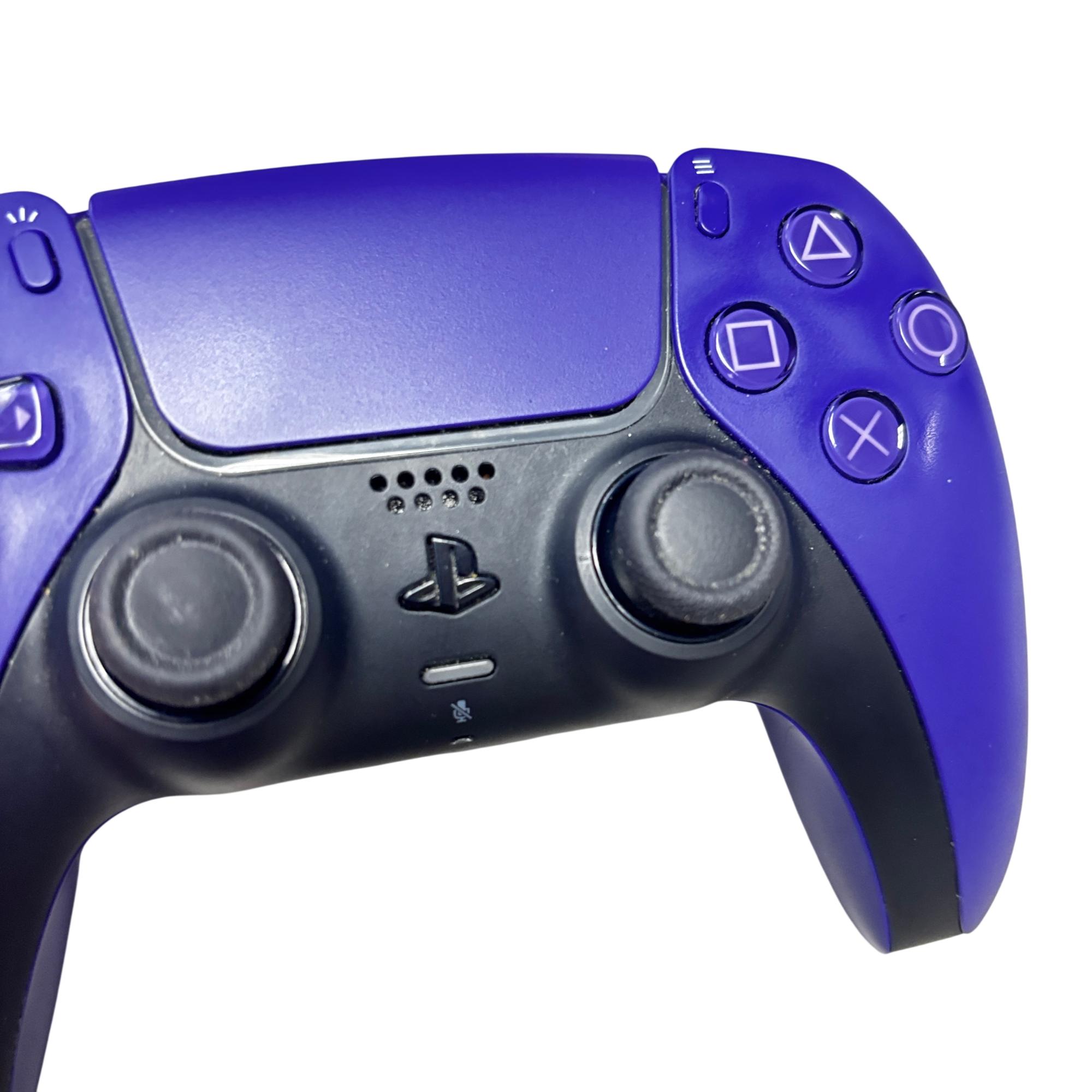 This PlayStation 5 DualSense Wireless Controller in Galactic Purple features advanced haptics and adaptive triggers for immersive gaming experiences. This controller offers a comfortable ergonomic design with a built-in microphone and a refined, responsive layout that enhances precision and control on the PS5 console.