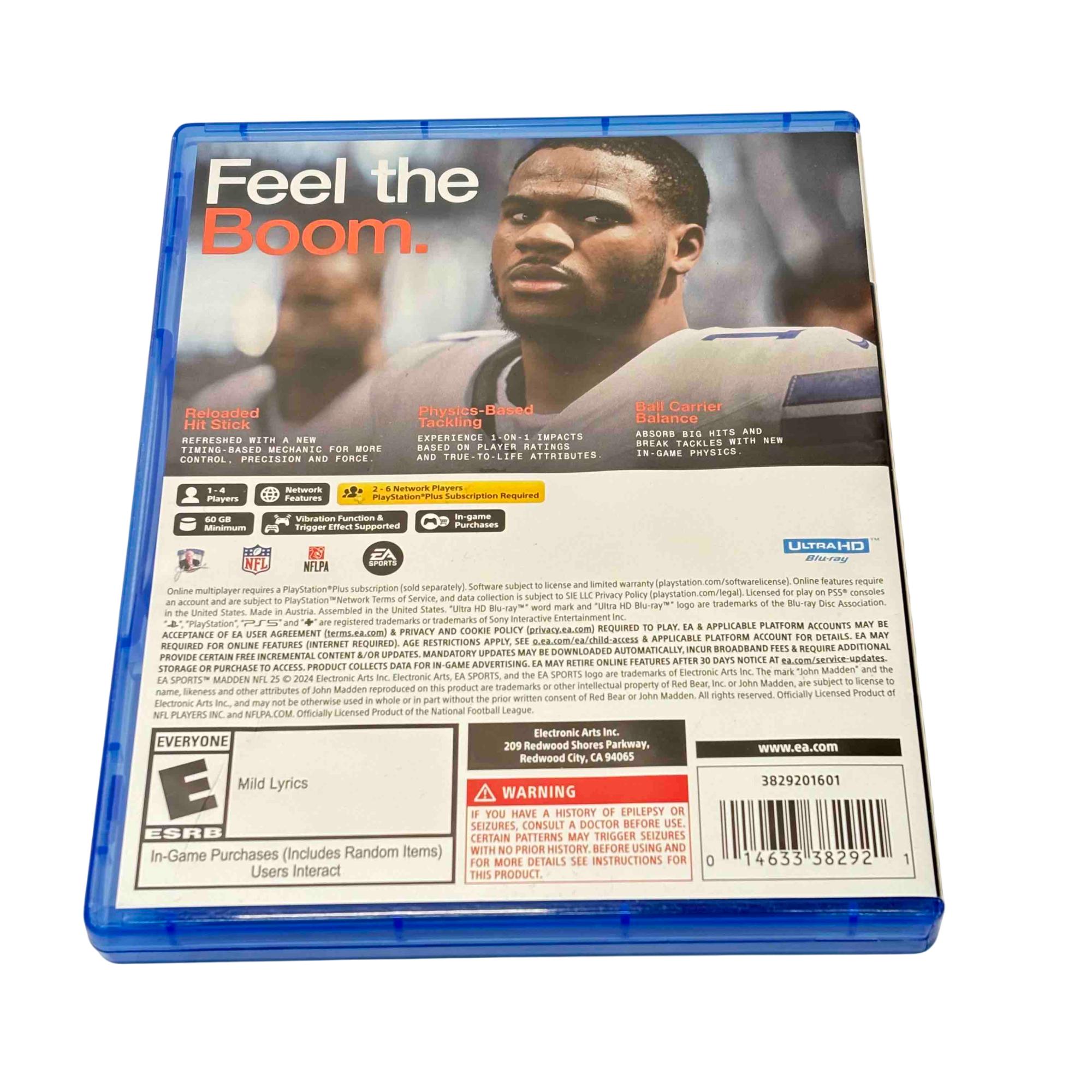 Experience the thrill of football like never before with Sony EA Sports Madden NFL 25 for PlayStation 5! This 2024 edition brings cutting-edge physics-based gameplay and enhanced visuals, fully immersing you in the game. Whether youre a seasoned player or new to the franchise, this game promises to deliver hours of entertainment and competitive fun.