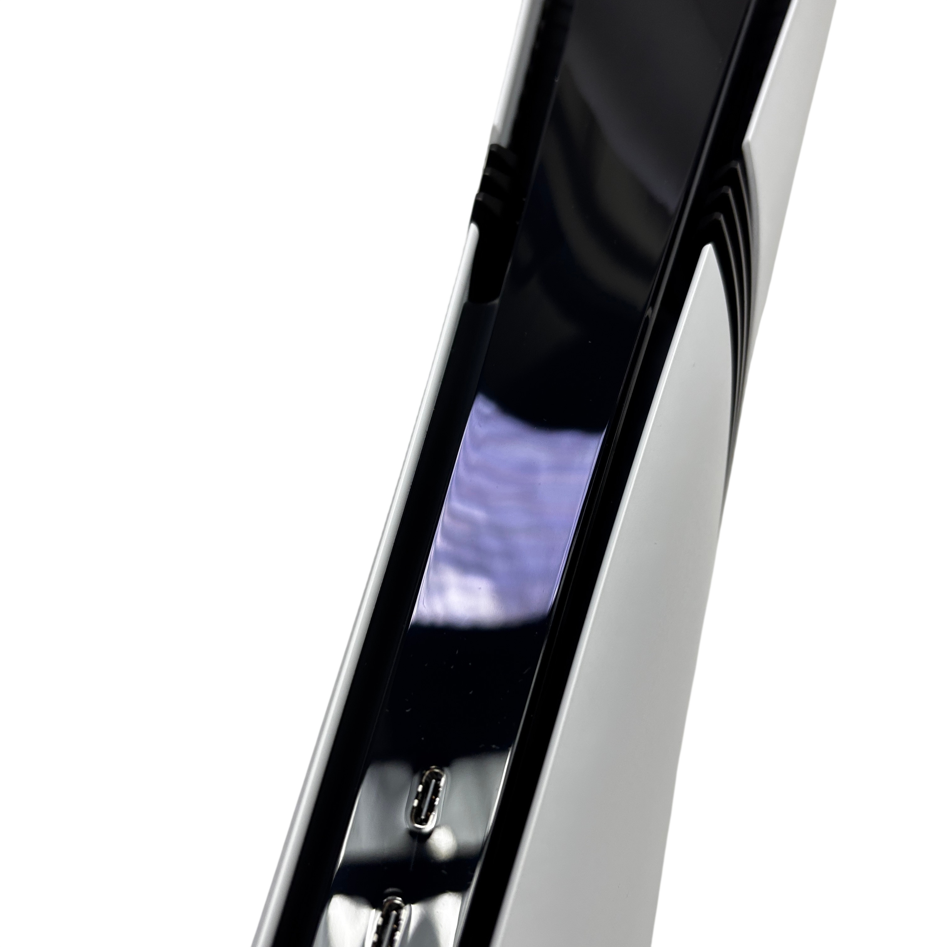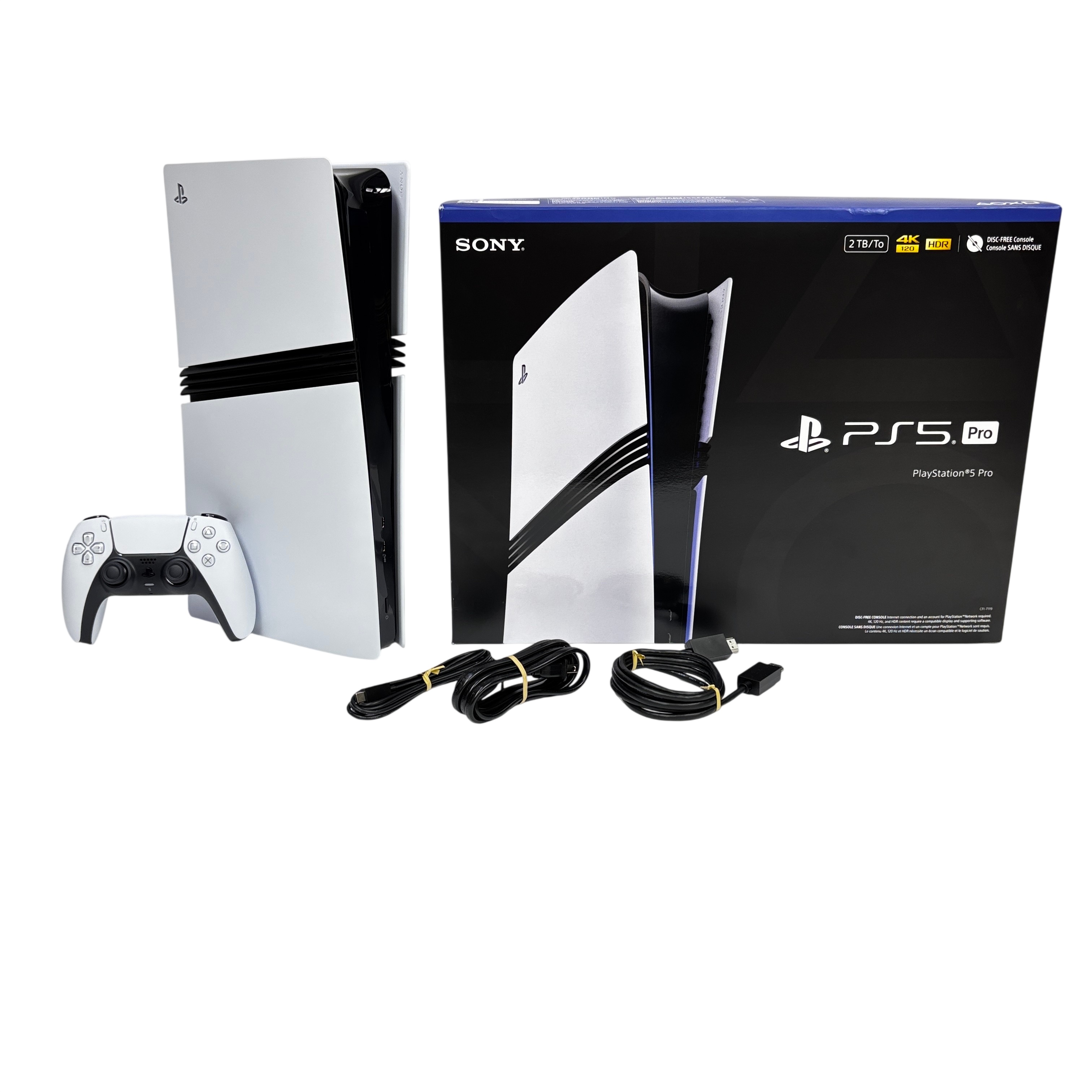 This Sony PlayStation 5 Pro Console (Model CFI-7119) offers an enhanced gaming experience with 2TB of internal storage and support for stunning 4K resolution at 120Hz refresh rate. This disc-free digital edition features HDR compatibility for vibrant visuals and comes with a DualSense wireless controller. The consoles sleek white and black design fits seamlessly into any entertainment setup, delivering powerful performance for immersive gameplay.