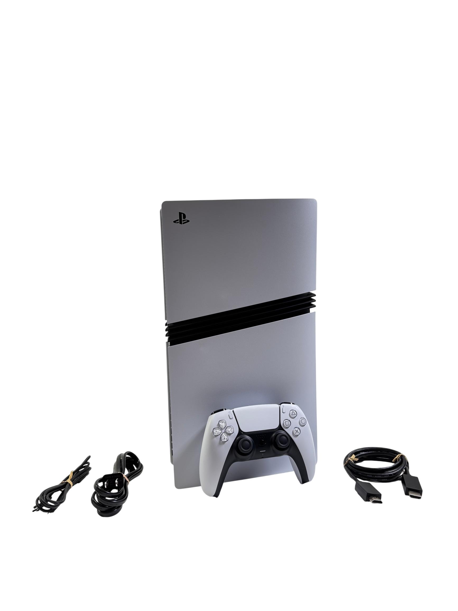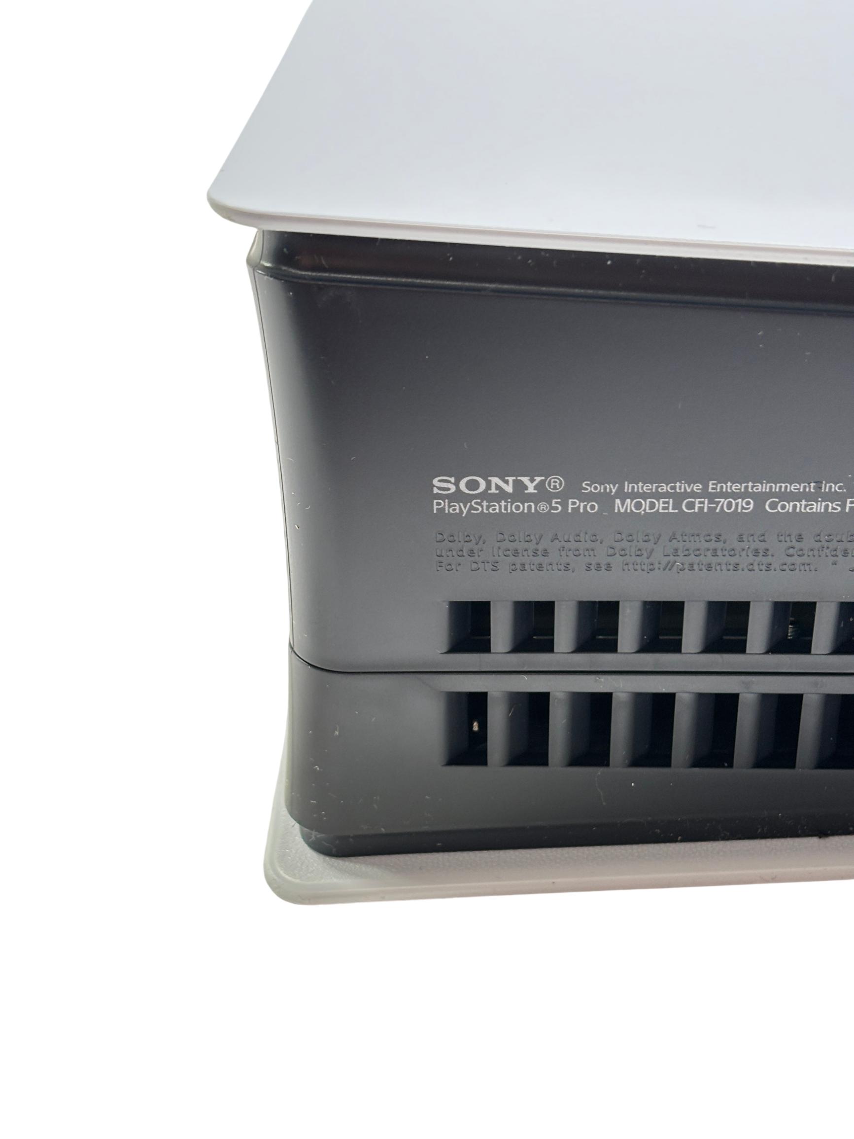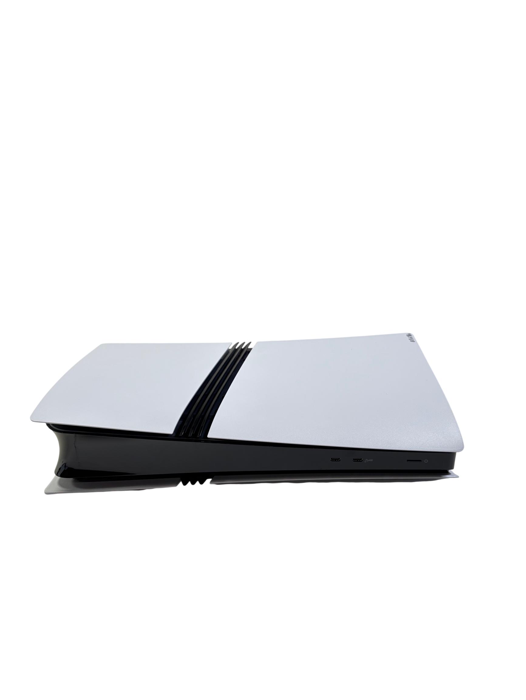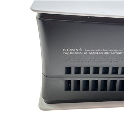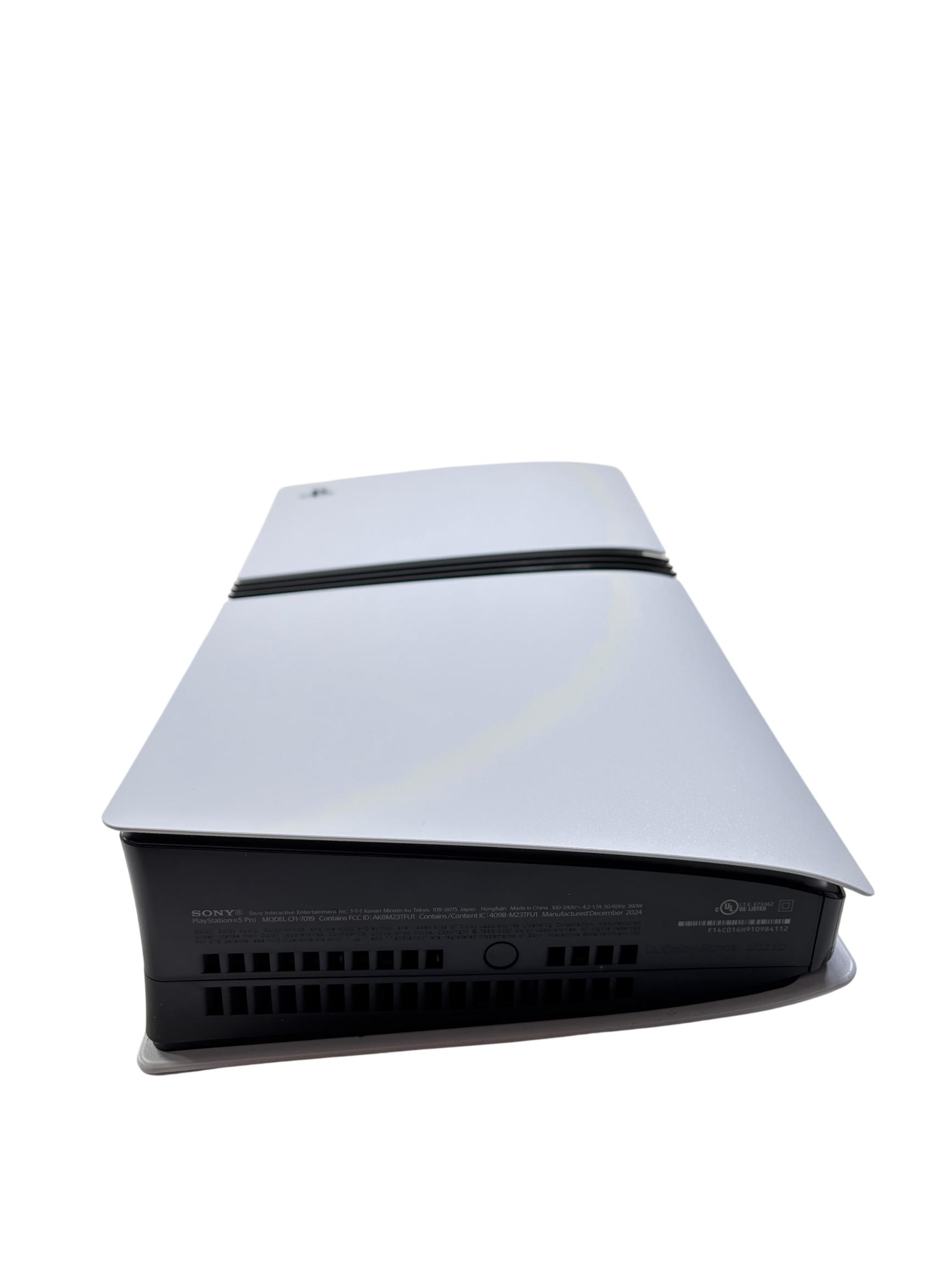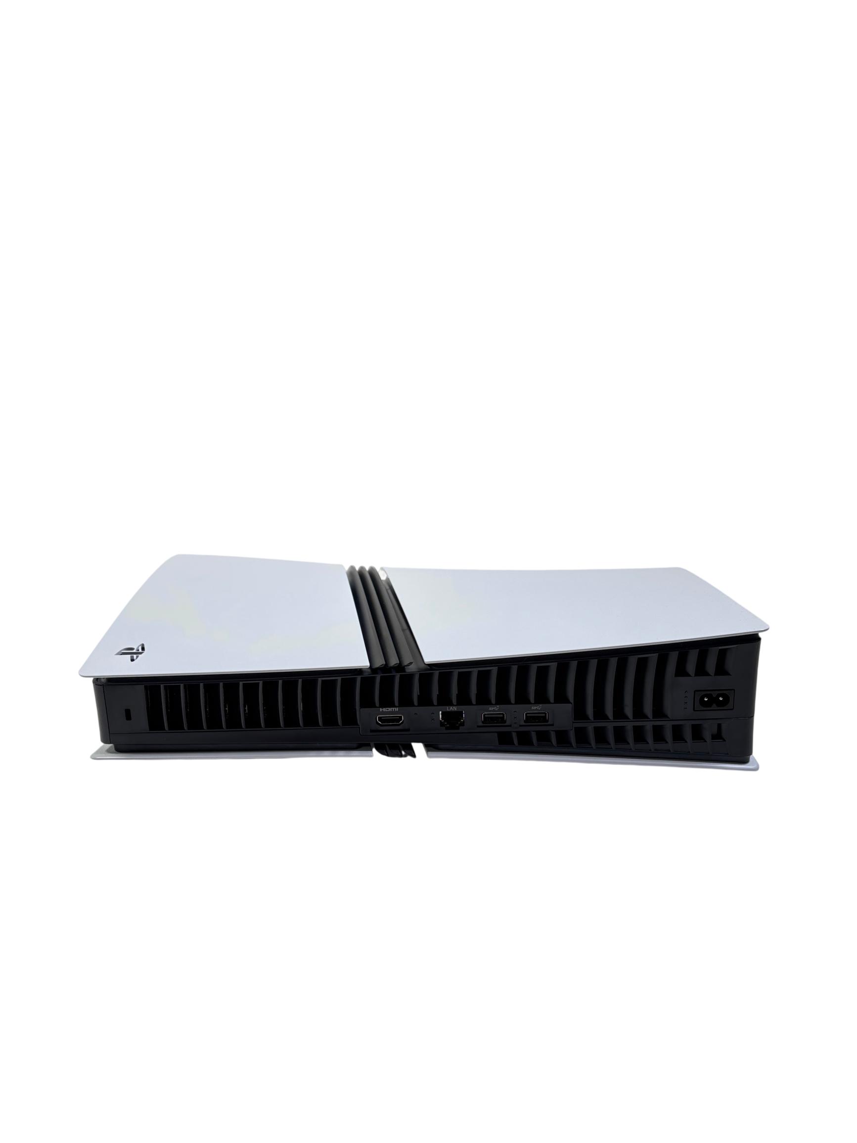 Sony PlayStation 5 Pro Digital Edition Model CFI-7019 offers an upgraded gaming experience with a sleek white and black design and a spacious 2TB solid-state drive for expansive game storage. This advanced video game console features enhanced performance capabilities and a modern controller designed for comfortable gameplay.
