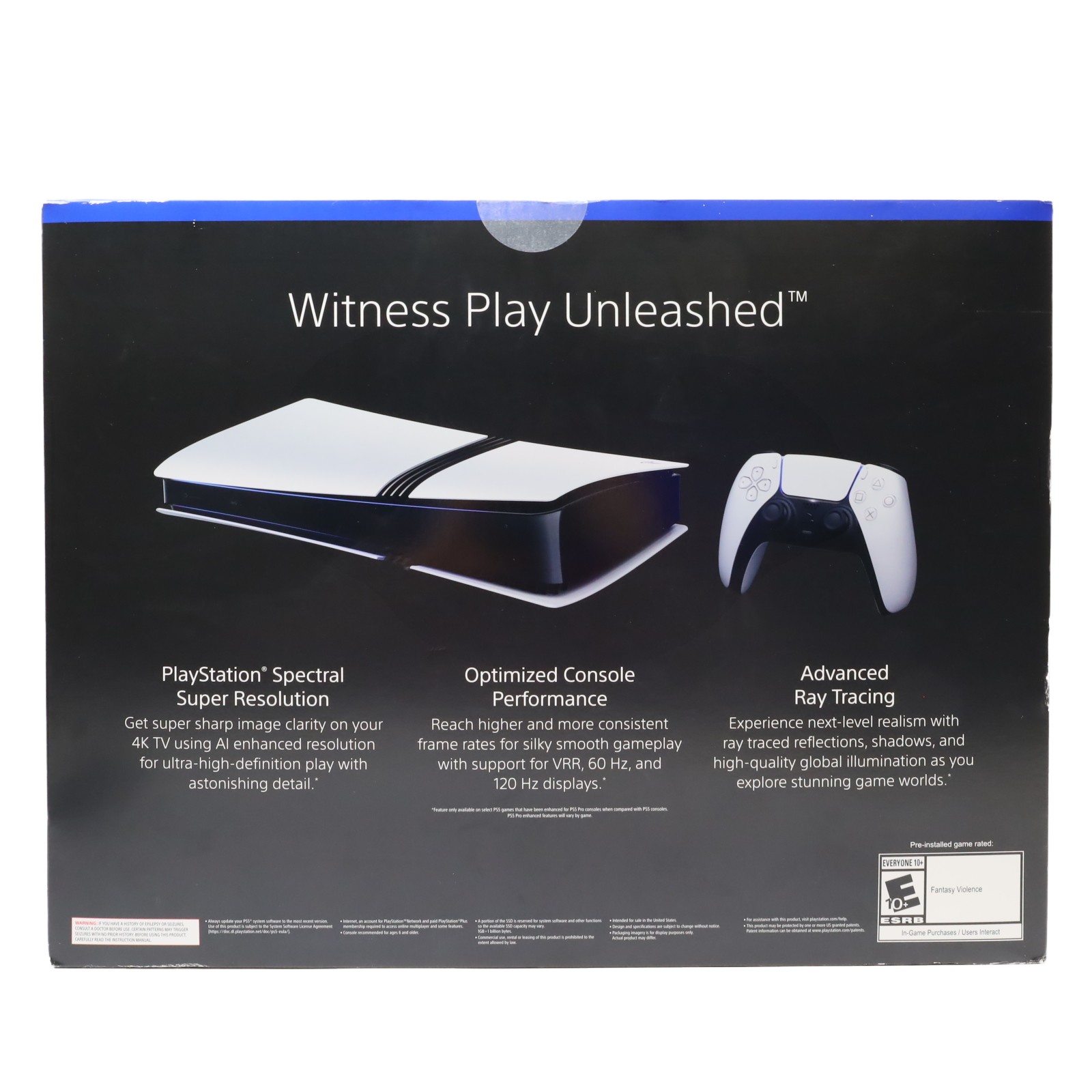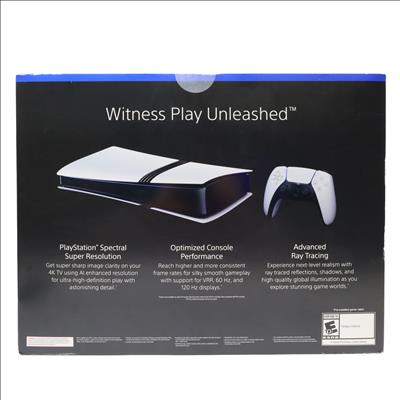 Features a 2TB ultra-high-speed SSD for rapid game loading and expanded storage capacity. This model supports gameplay at up to 120fps with 4K output and enhanced ray tracing for advanced lighting, shadow, and reflection effects. It is designed for high-performance gaming with support for PlayStation Spectral Super Resolution (PSSR), 1440p output, and 8K display compatibility via HDMI 2.1. Enhanced features such as Game Boost improve performance for select PS4 titles, and backwards compatibility extends playability to over 8,500 PS4 games. Integrated Tempest 3D AudioTech and HDR technology contribute to immersive audiovisual experiences, while advanced wireless connectivity using IEEE 802.11be reduces latency during online play.