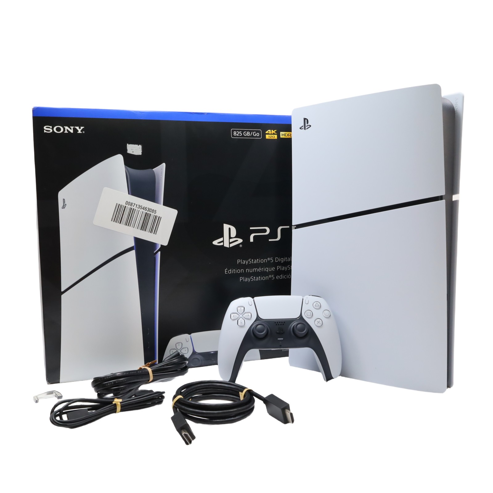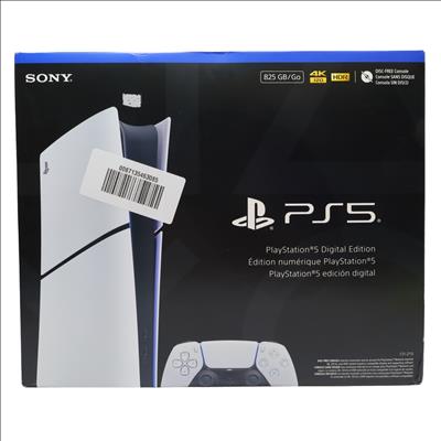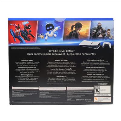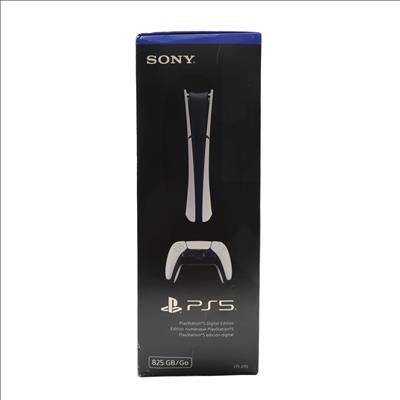A compact gaming console designed for digital gameplay, featuring an 825GB solid-state drive for fast data access and game storage. It includes a custom CPU, GPU, and ultra-high-speed SSD with integrated I/O, enabling near-instant load times and advanced game design capabilities. The system supports haptic feedback, adaptive triggers, and 3D Audio for immersive gameplay, along with ray tracing technology to enhance visual realism in compatible titles. Its streamlined design houses next-generation hardware capable of running PS5 games and a library of PS4 titles.