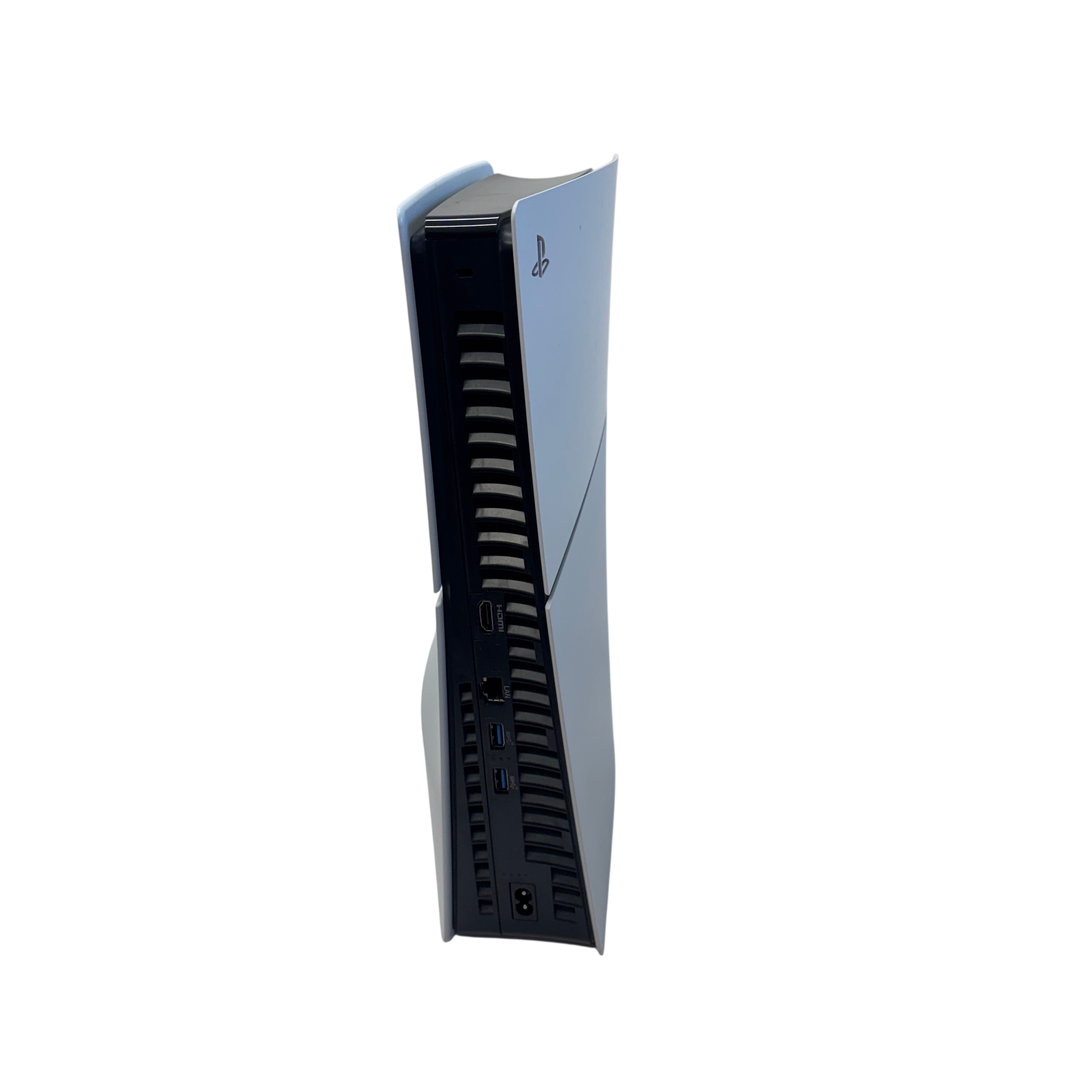 Sony PlayStation 5 Digital Edition (Model CFI-2015) is a sleek white and black video game console designed for immersive next-generation gaming. This digital-only version features a compact form factor with dimensions of 3.14 inches height, 8.46 inches width, and 14.76 inches length, weighing approximately 5.73 pounds. The console supports 4K gaming and comes with a power cable included. Please note, this listing does not include a controller or HDMI cable, making it ideal for buyers who already have accessories or want to customize their setup.