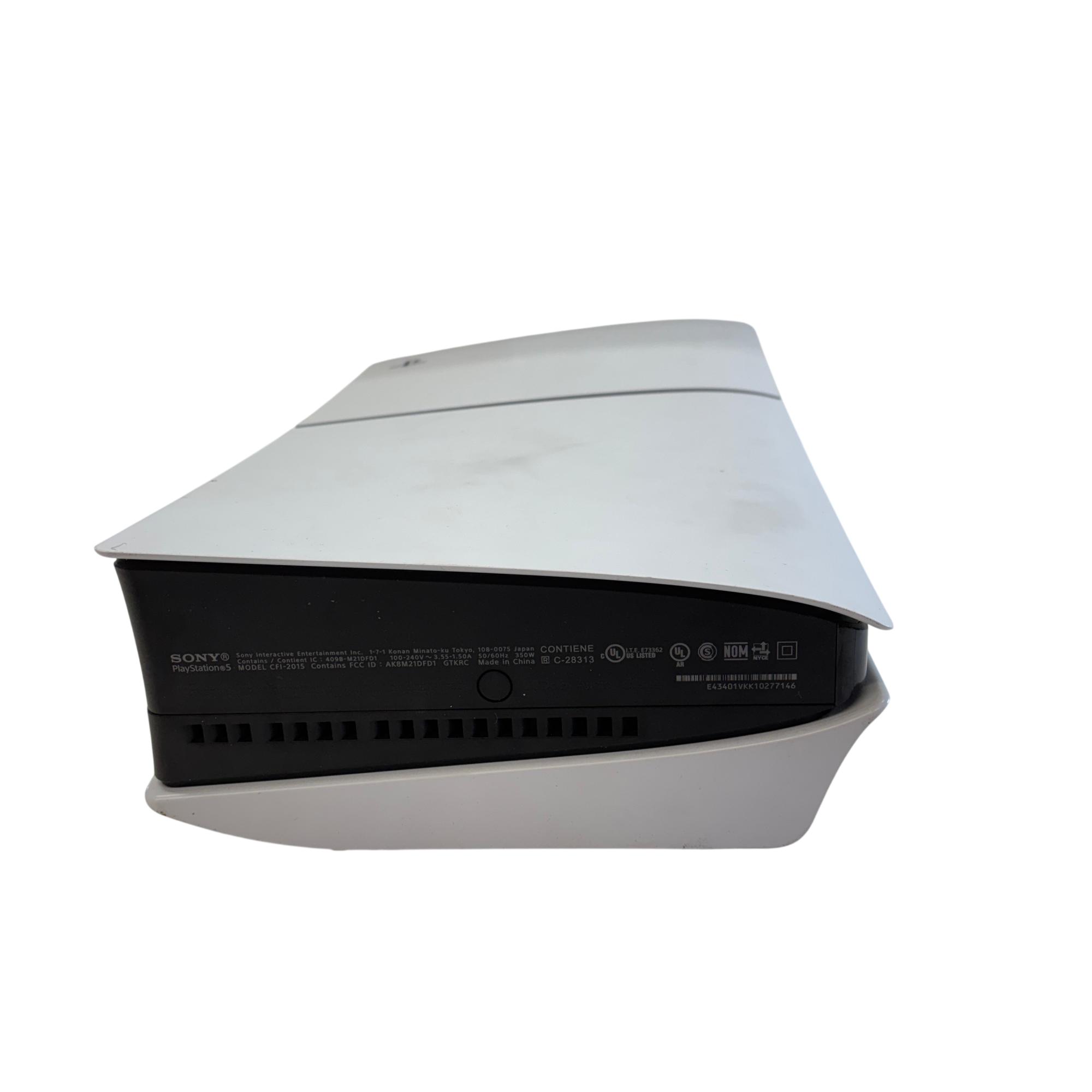Sony PlayStation 5 Slim Disc Edition 1TB (Model CFI-2015) is a sleek gaming console featuring a modern white and black design that fits seamlessly into any entertainment setup. It offers 1TB of storage and is equipped with HDMI connectivity for high-definition performance, delivering immersive 4K gaming experiences. This compact version of the PlayStation 5 maintains powerful hardware capabilities while providing a refined, space-saving form factor.