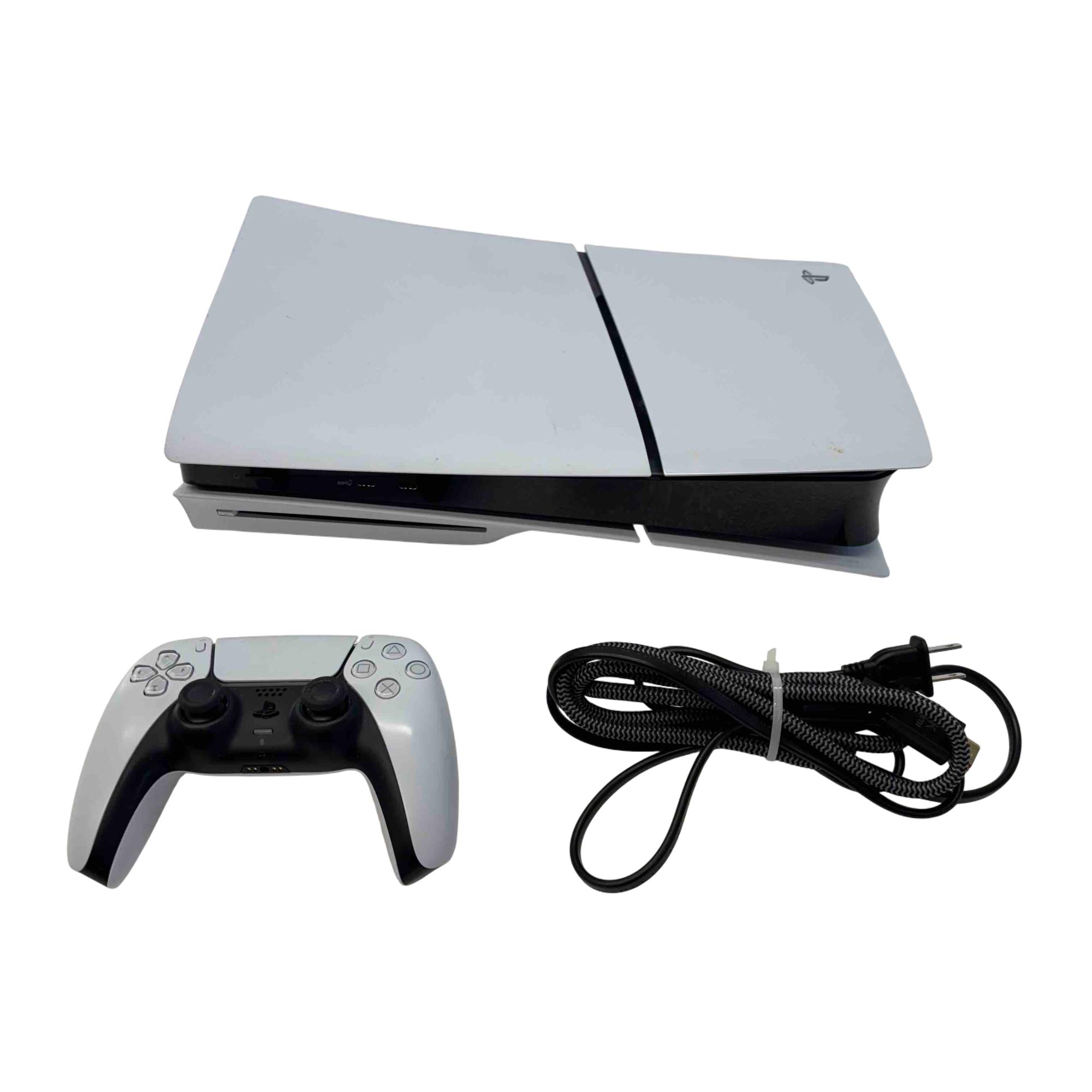 Experience next-generation gaming with the Sony PlayStation 5 Slim Disc Edition, featuring ultra-fast load times, breathtaking graphics, and a 1TB SSD for plenty of storage. This bundle includes the redesigned, sleek PS5 Slim console, a DualSense wireless controller, and all necessary cables. Its compact design brings powerful performance and immersive gameplay to your living room.