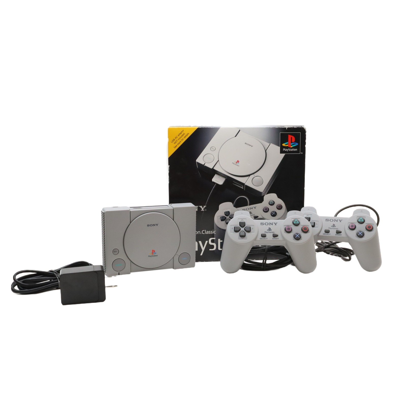 Introducing PlayStation Classic A miniature recreation of the iconic PlayStation console, pre loaded with 20 fan favorite games along with two wired controllers for local multiplayer showdowns and a virtual memory card for vital game saves. PlayStation Classic also features the same famous logo, button layout and outer packaging – but this mini console is approximately 45 percent smaller than the original PlayStation and includes a HDMI cable to connect directly to a TV. PlayStation Classic is the perfect console for retro loving fans – and for a new generation wanting to experience the dawn of PlayStation for the first time.