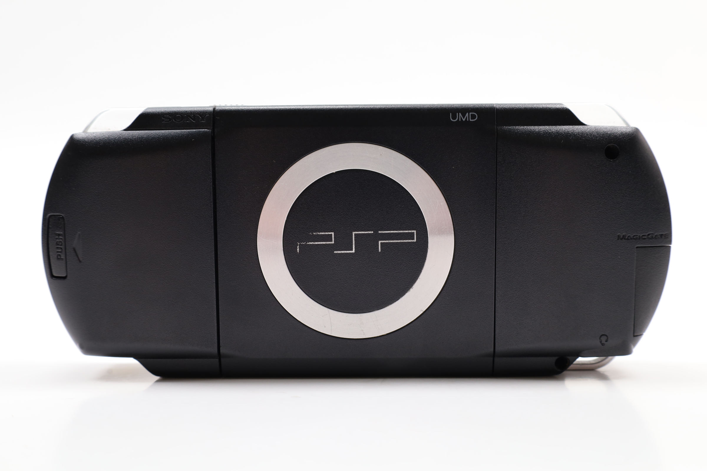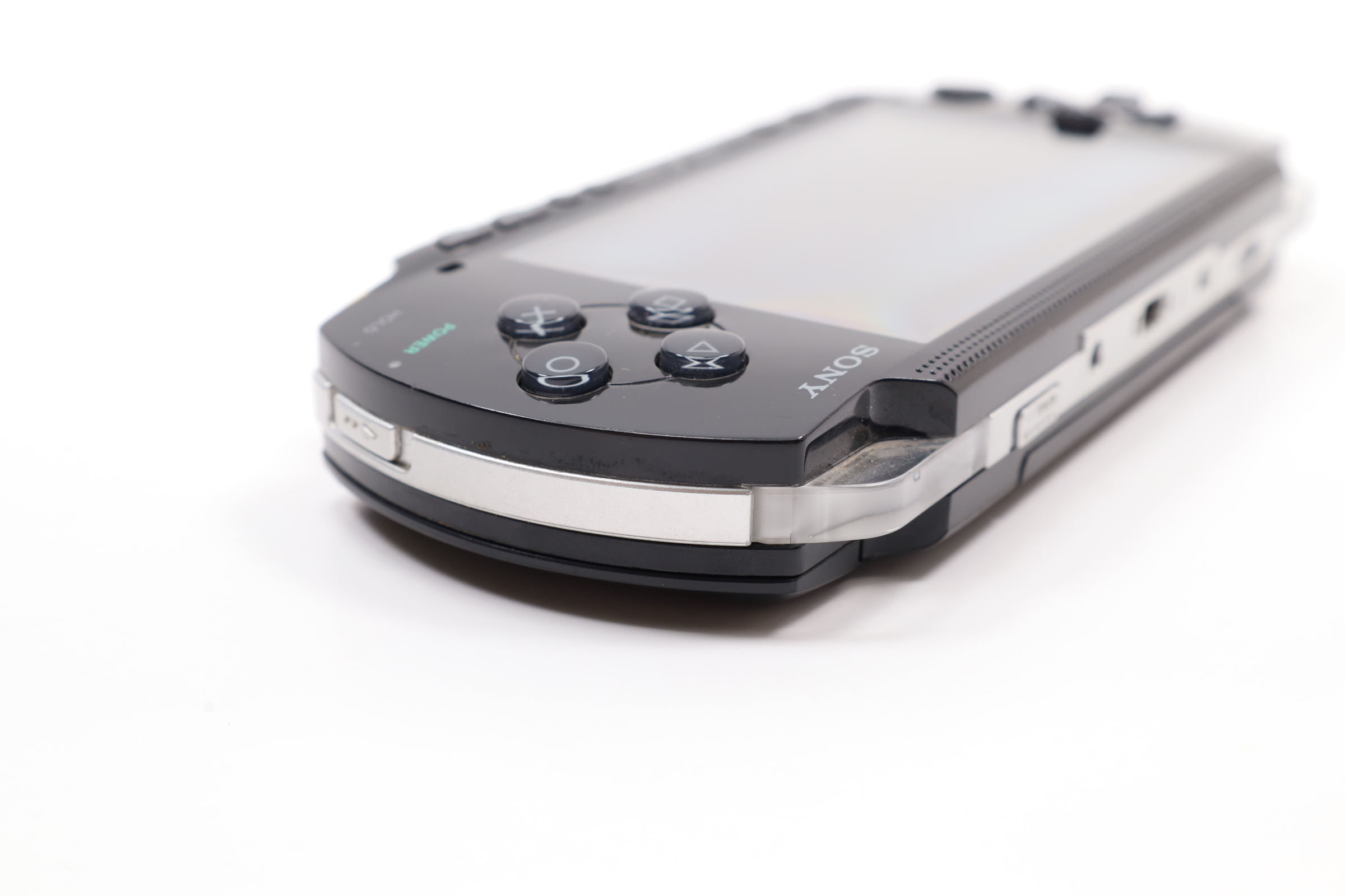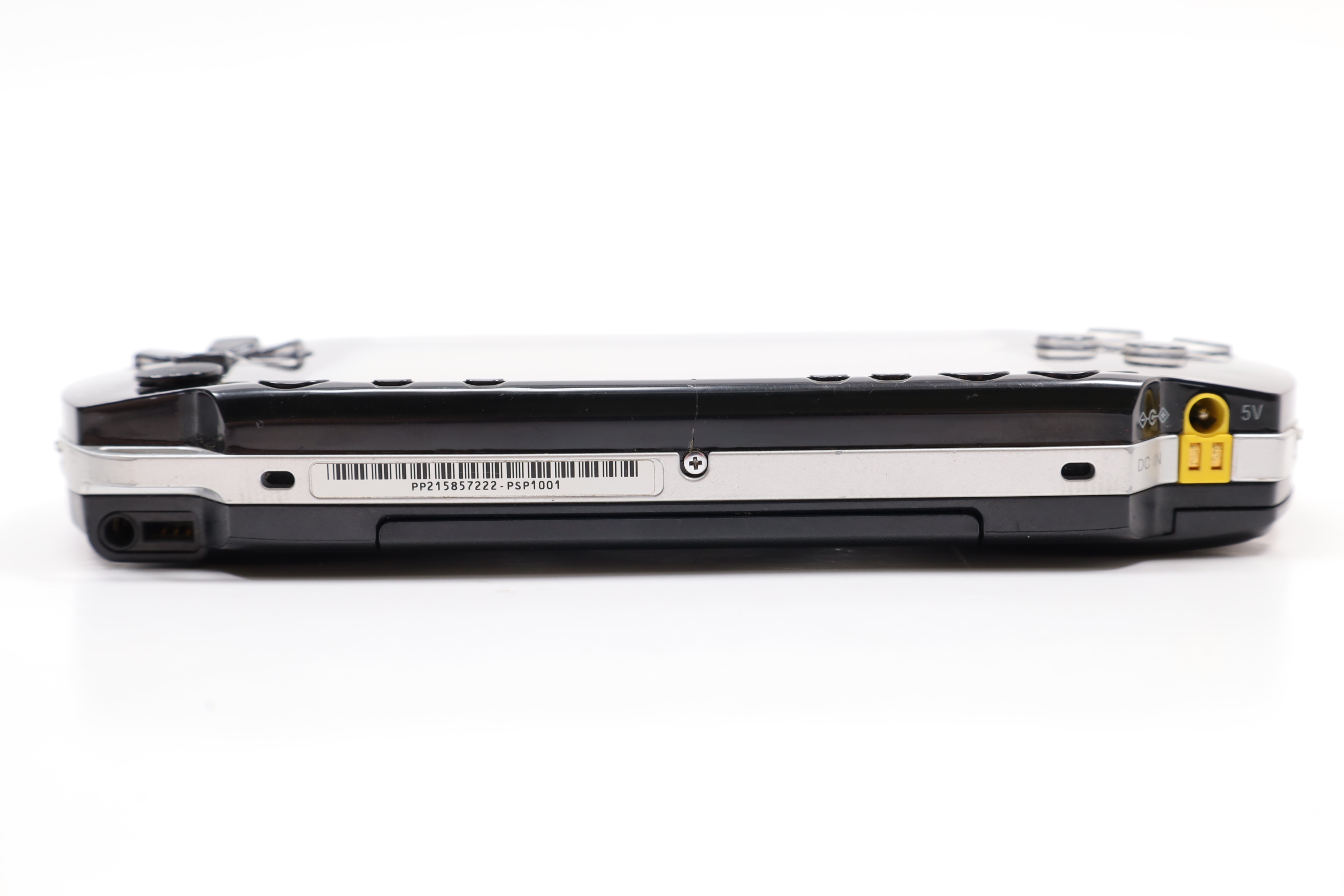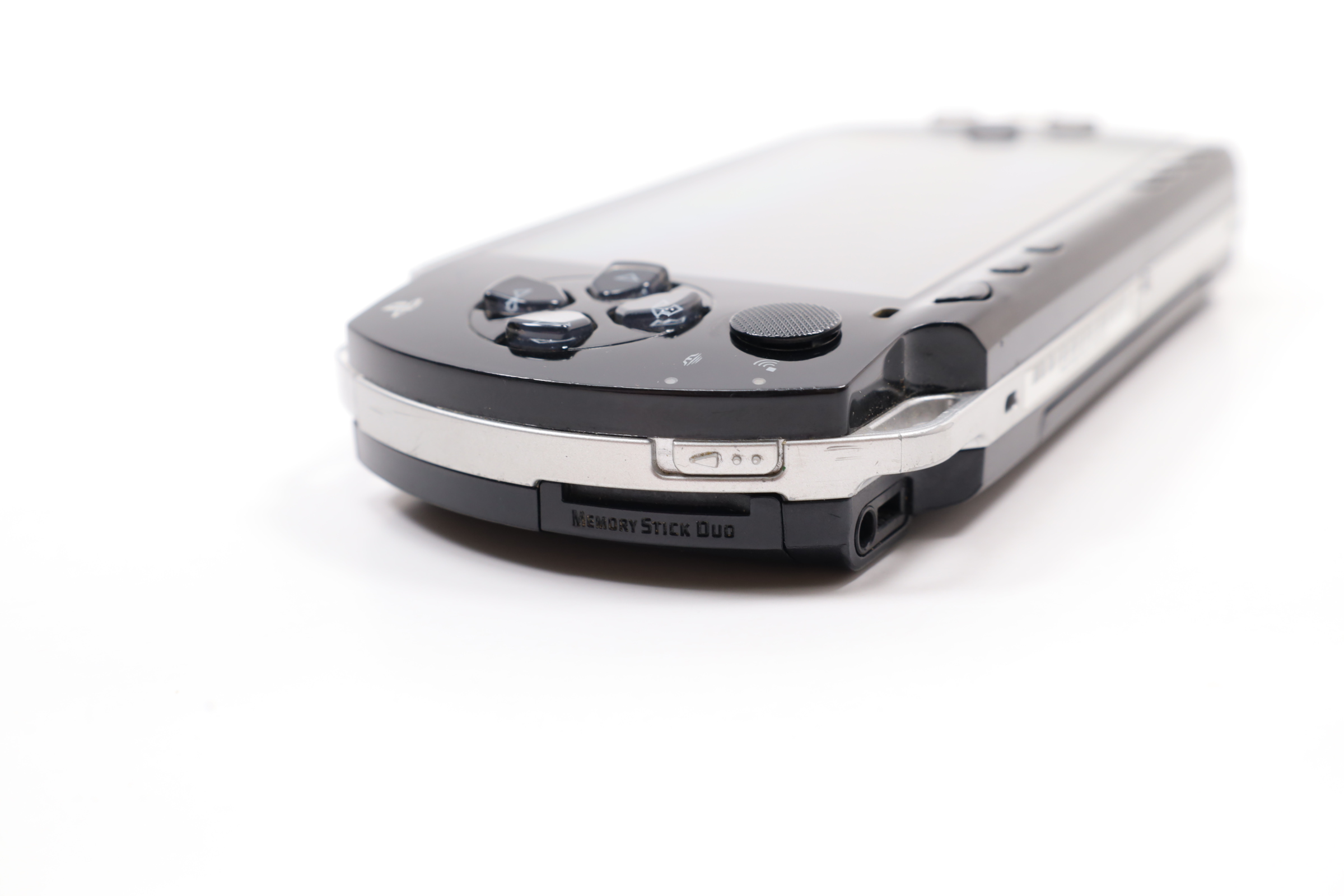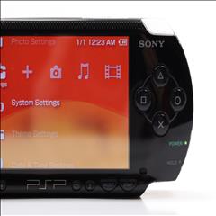 A compact gaming system featuring a 4.3-inch widescreen TFT LCD with a resolution of 480 x 272 pixels. It includes 64 MB of main memory and 4 MB of embedded DRAM. The PSP-2001 is equipped with Wi-Fi (IEEE 802.11b) for online multiplayer gaming and internet access. The device features a variety of controls, including a directional pad, an analog nub, and the four standard PlayStation face buttons. It also has a USB 2.0 mini-B port, a power cable input, and a UMD drive for games and movies. Additional features include a Memory Stick PRO Duo slot, built-in stereo speakers, a headphone port, and an infrared port. The PSP operates with dual 333 MHz MIPS32 R4000-based CPUs, a GPU at 166 MHz, and runs at 222 MHz by default, though later firmware updates allowed for 333 MHz operation.