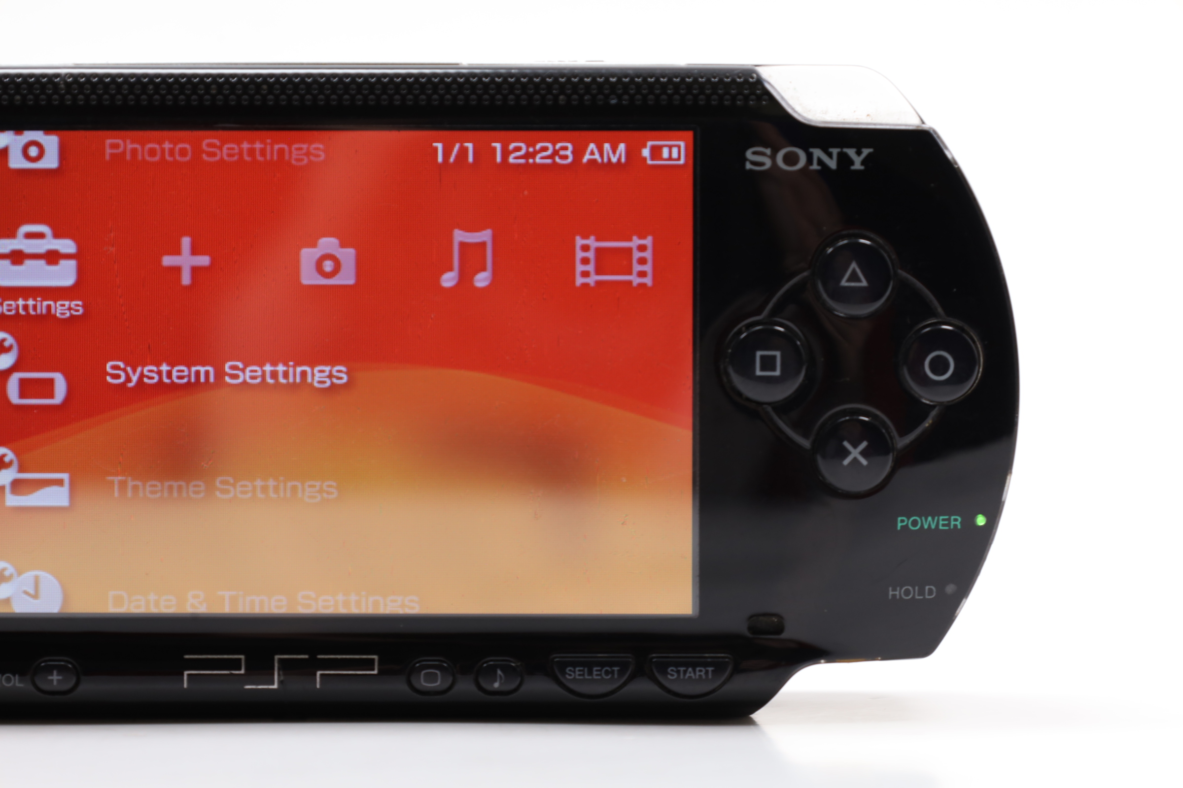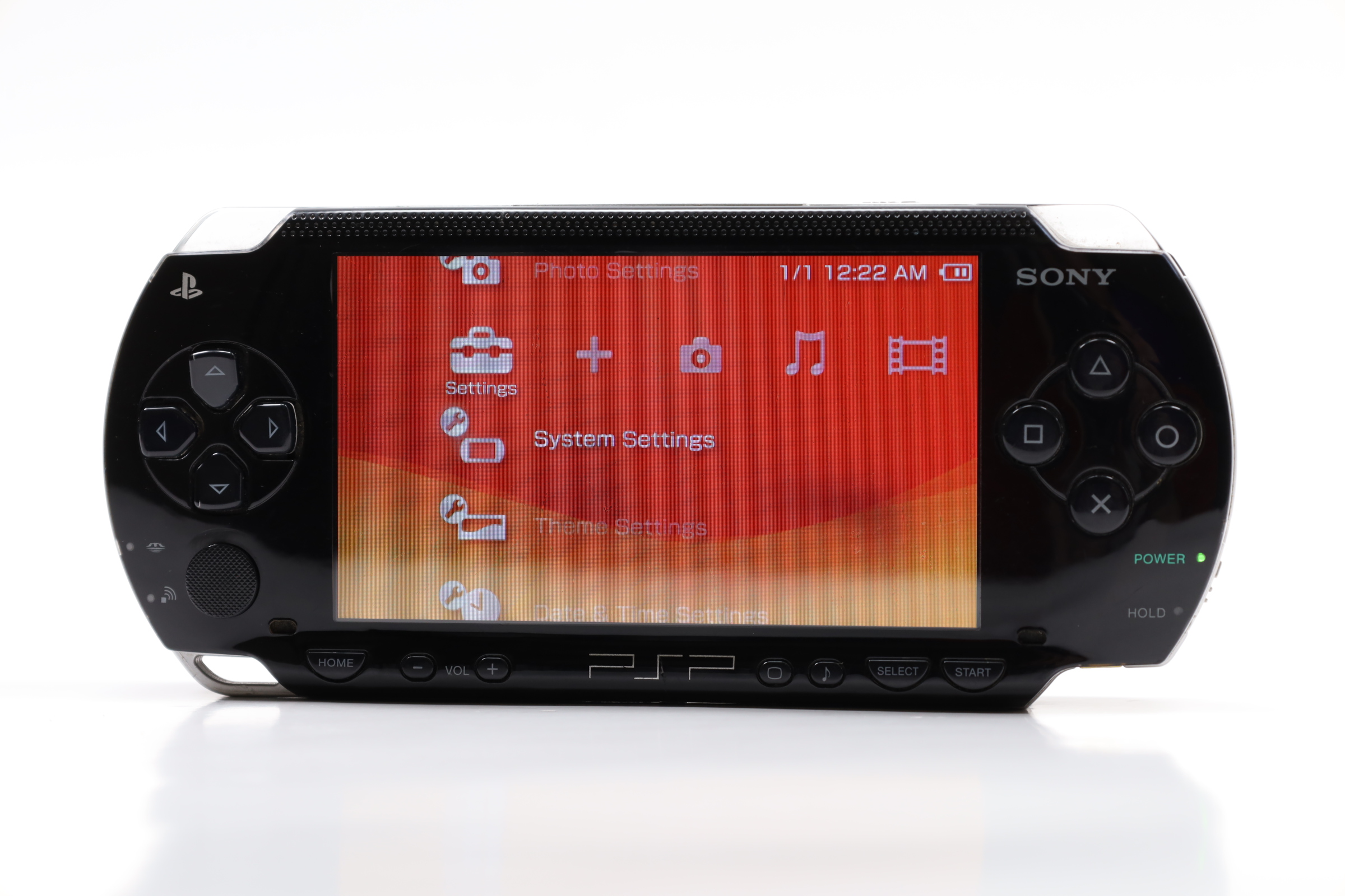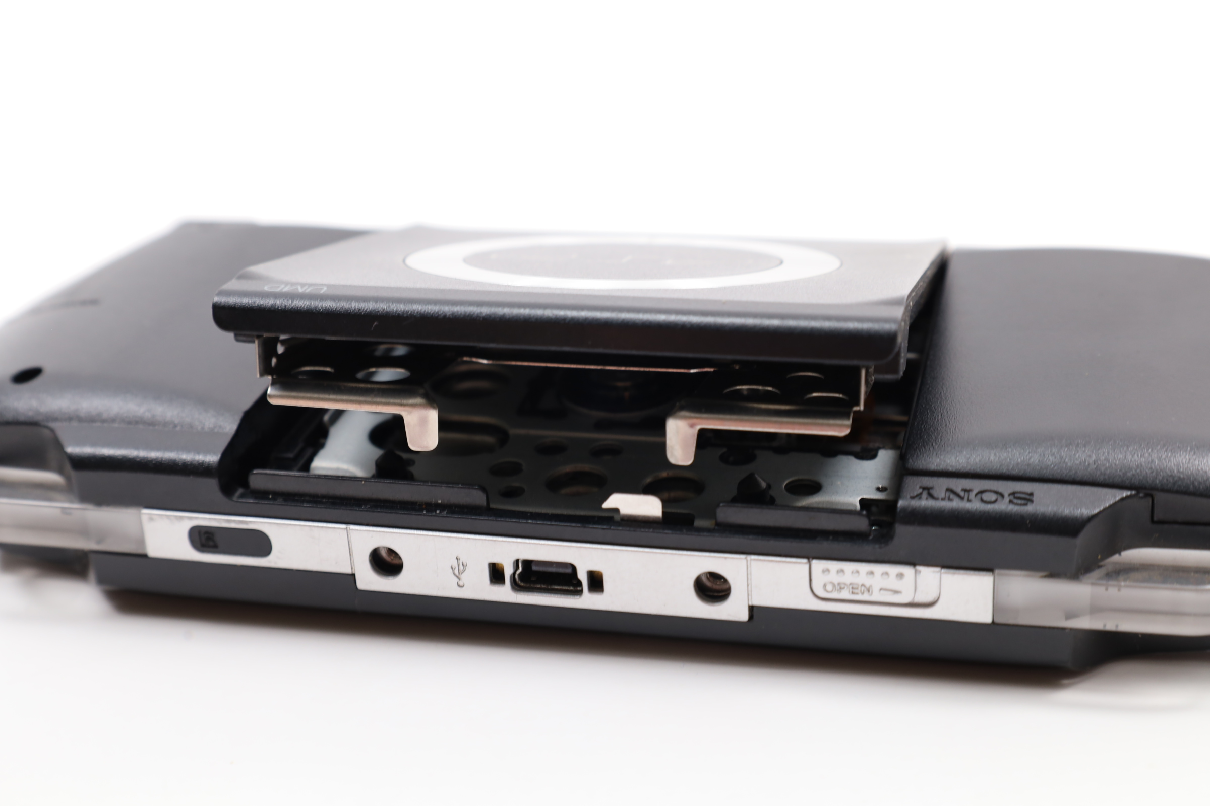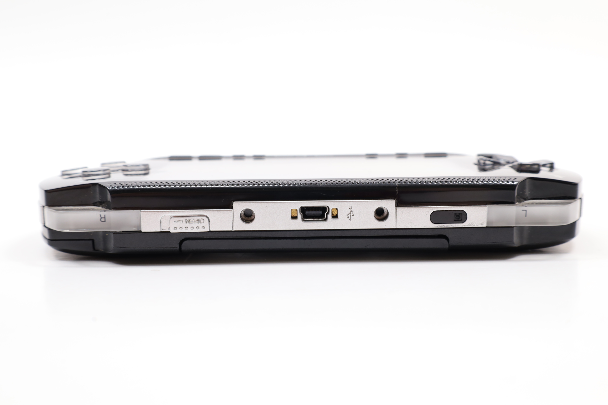 A compact gaming system featuring a 4.3-inch widescreen TFT LCD with a resolution of 480 x 272 pixels. It includes 64 MB of main memory and 4 MB of embedded DRAM. The PSP-2001 is equipped with Wi-Fi (IEEE 802.11b) for online multiplayer gaming and internet access. The device features a variety of controls, including a directional pad, an analog nub, and the four standard PlayStation face buttons. It also has a USB 2.0 mini-B port, a power cable input, and a UMD drive for games and movies. Additional features include a Memory Stick PRO Duo slot, built-in stereo speakers, a headphone port, and an infrared port. The PSP operates with dual 333 MHz MIPS32 R4000-based CPUs, a GPU at 166 MHz, and runs at 222 MHz by default, though later firmware updates allowed for 333 MHz operation.