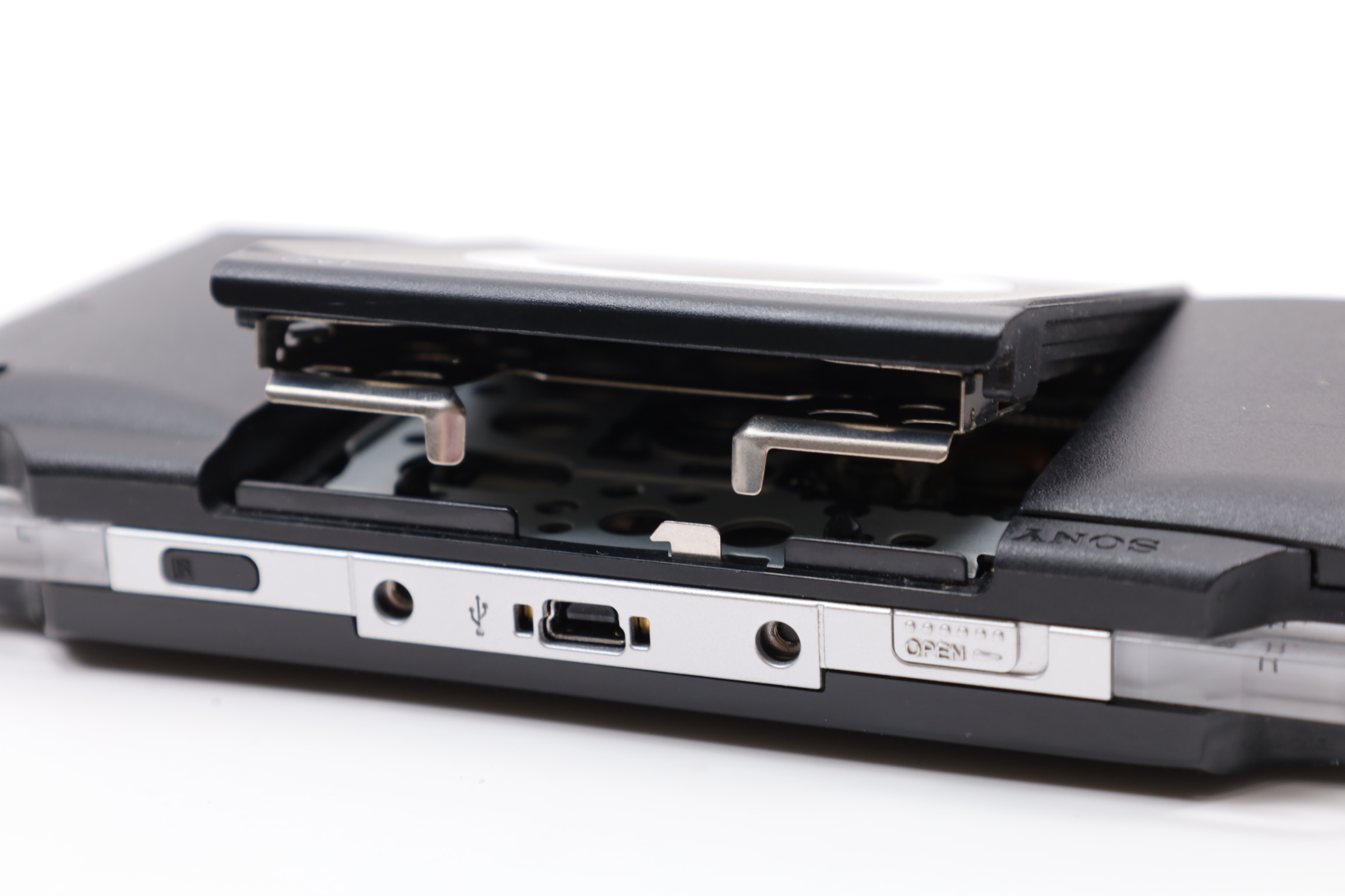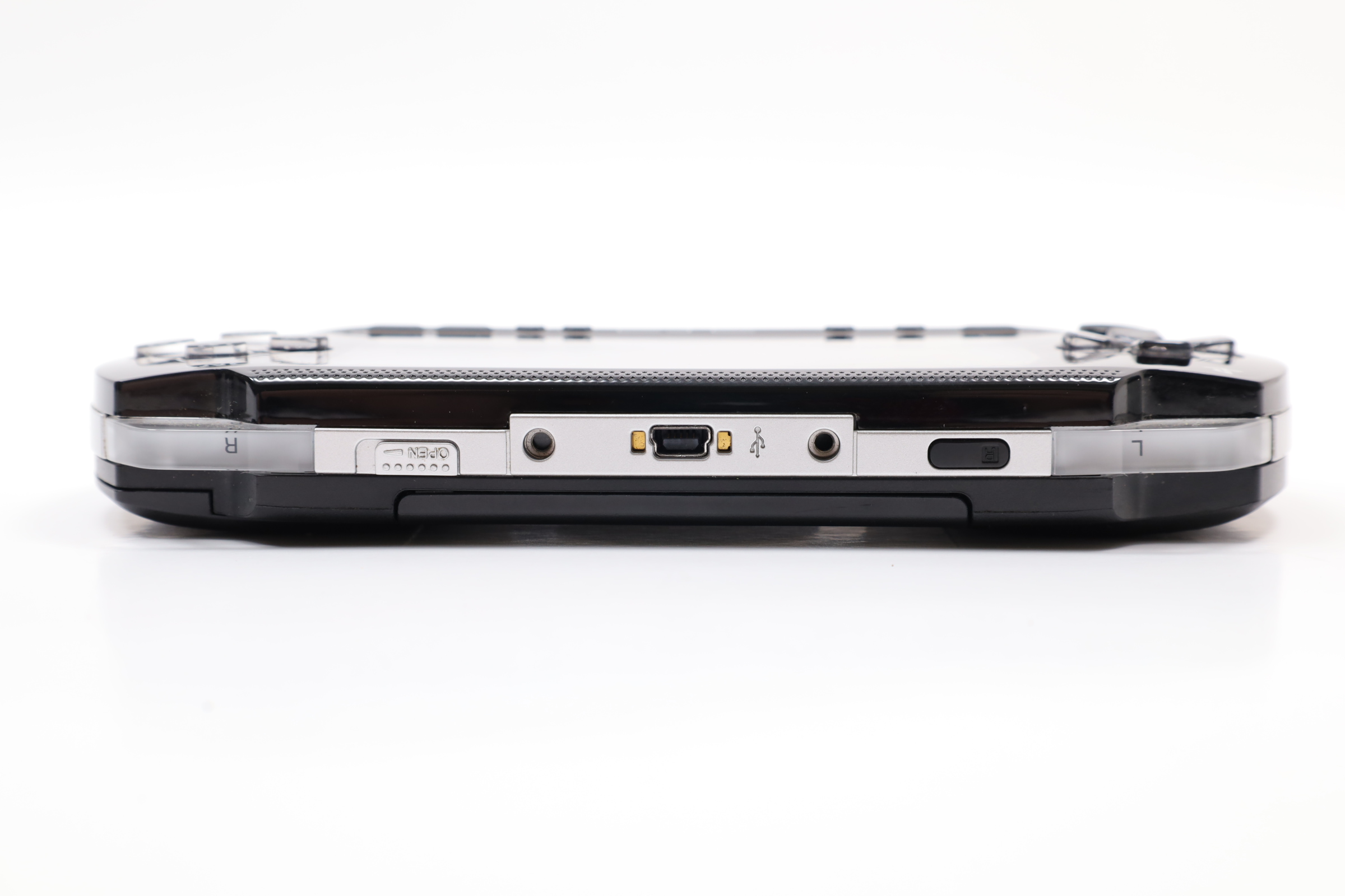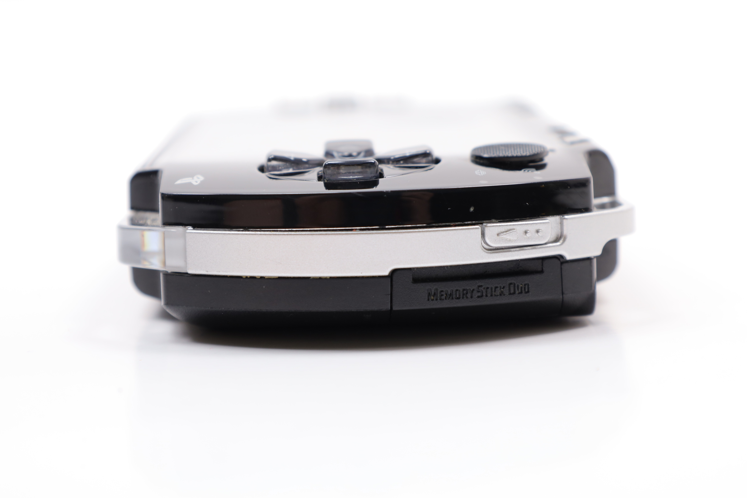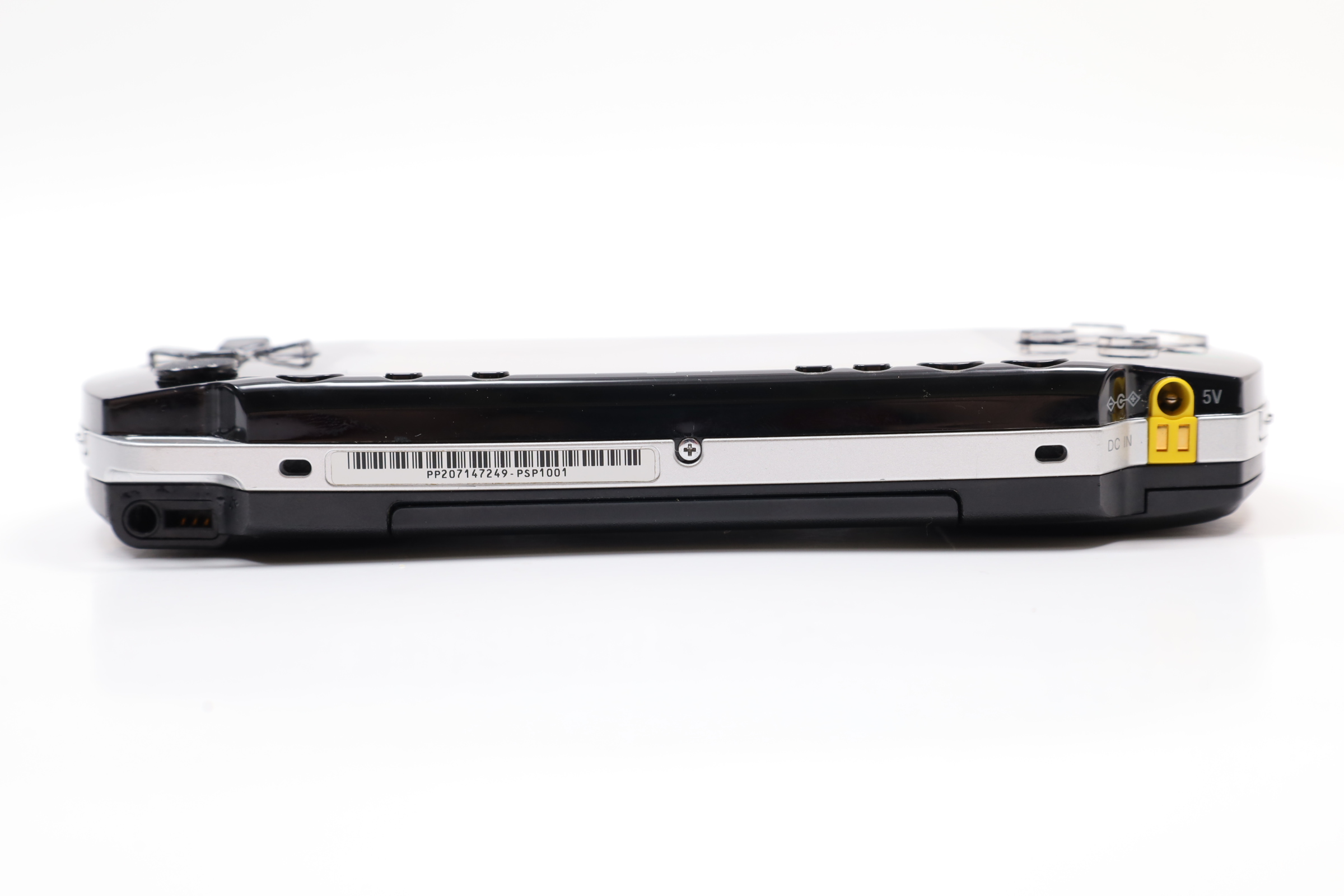 A compact gaming system featuring a 4.3-inch widescreen TFT LCD with a resolution of 480 x 272 pixels. It includes 64 MB of main memory and 4 MB of embedded DRAM. The PSP-2001 is equipped with Wi-Fi (IEEE 802.11b) for online multiplayer gaming and internet access. The device features a variety of controls, including a directional pad, an analog nub, and the four standard PlayStation face buttons. It also has a USB 2.0 mini-B port, a power cable input, and a UMD drive for games and movies. Additional features include a Memory Stick PRO Duo slot, built-in stereo speakers, a headphone port, and an infrared port. The PSP operates with dual 333 MHz MIPS32 R4000-based CPUs, a GPU at 166 MHz, and runs at 222 MHz by default, though later firmware updates allowed for 333 MHz operation.
