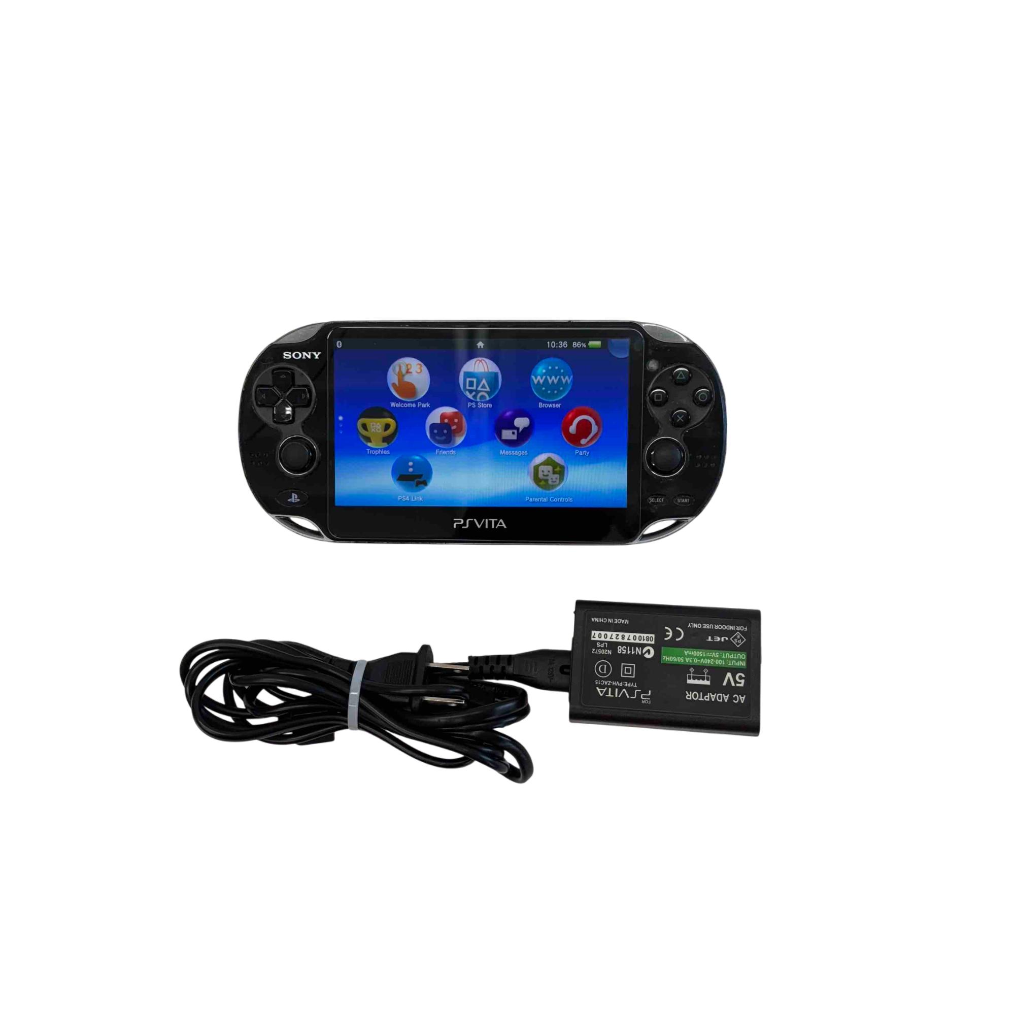 Experience gaming on-the-go with the Sony PlayStation Vita, a sleek handheld console featuring a vibrant touchscreen display and intuitive dual analog controls. This bundle includes the original Sony PS Vita PCH-1000 model along with a genuine AC adaptor, perfect for immersive gaming and multimedia entertainment anywhere you go. Discover top-rated games, apps, and the flexibility to connect with friends and your PS4 for a seamless portable gaming experience.