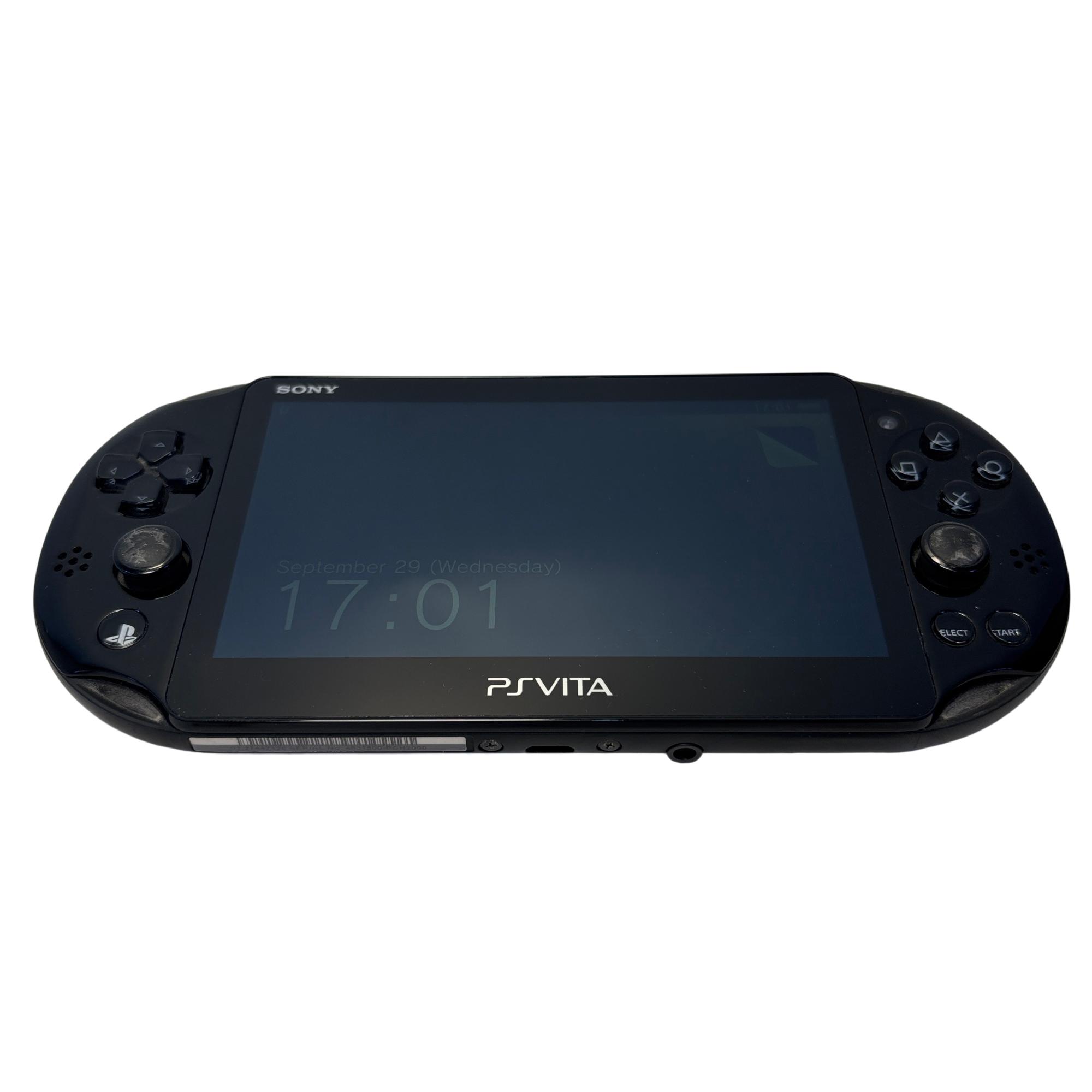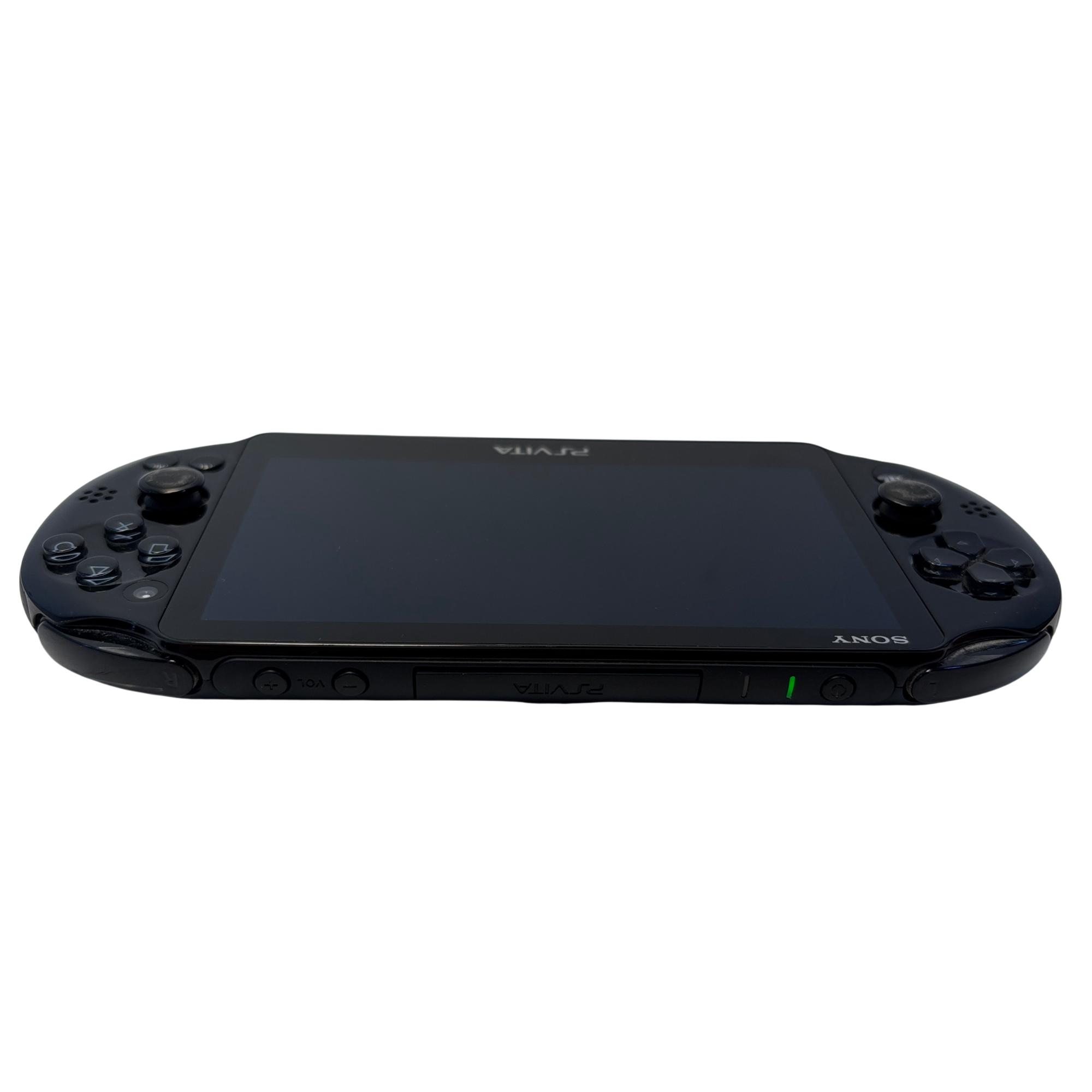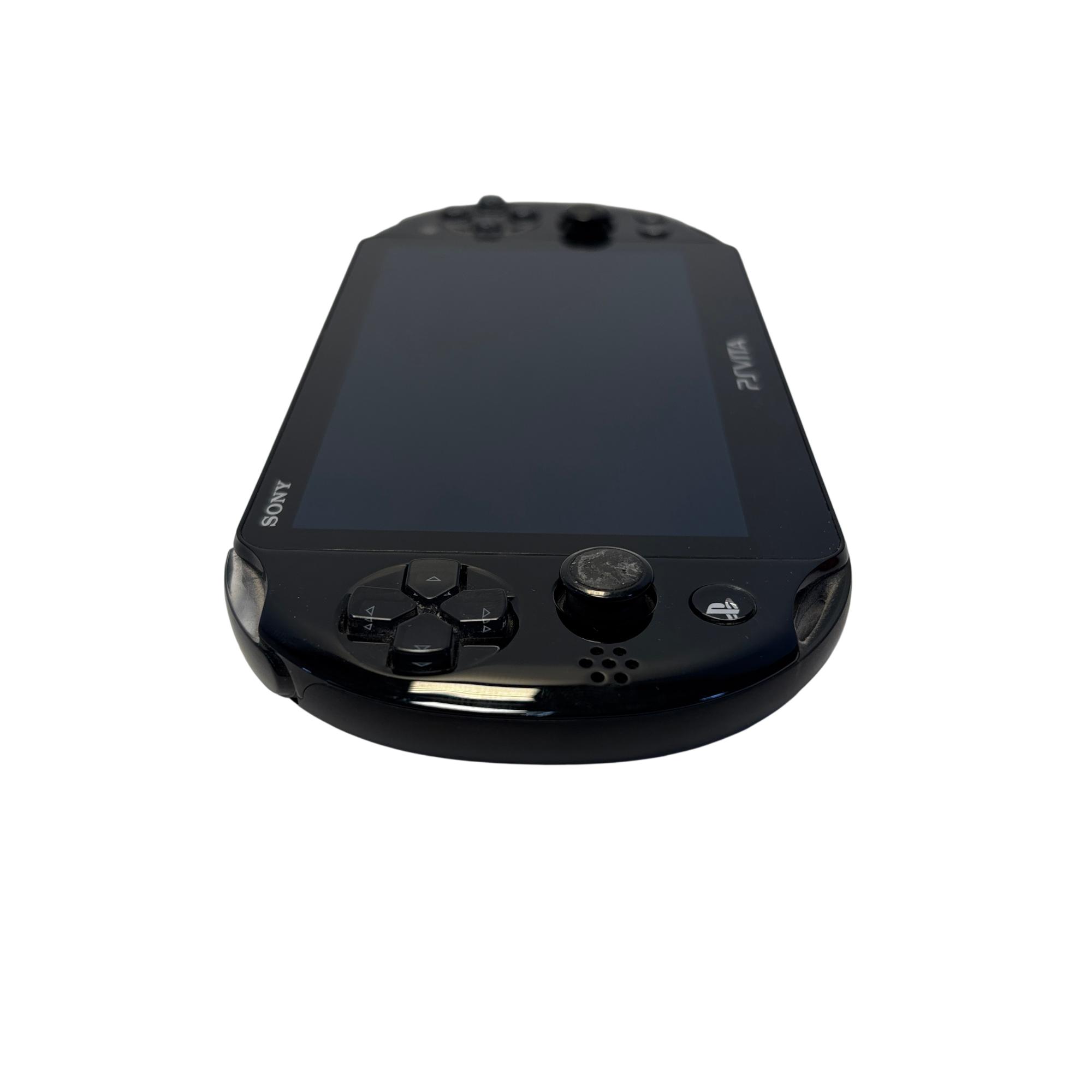 The Sony PlayStation Vita is a sleek handheld gaming console featuring a vibrant screen and compact design ideal for portable entertainment. This model supports a wide range of multimedia functions and offers responsive controls with distinct button layouts, including iconic PlayStation symbols on the gamepad. Its lightweight, black exterior and advanced electronics make it a versatile device for gaming on the go.