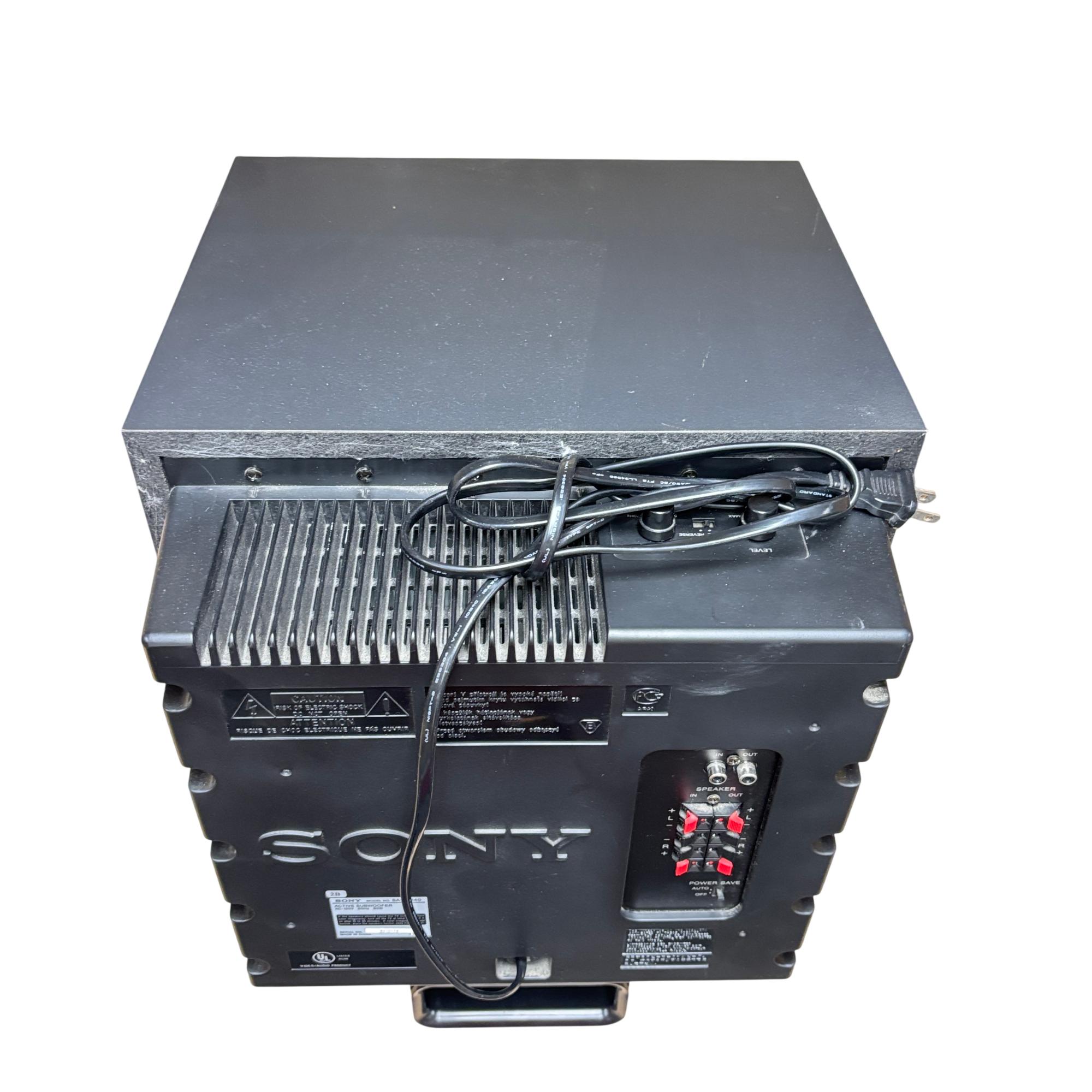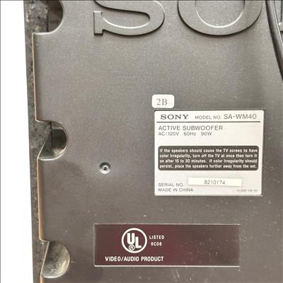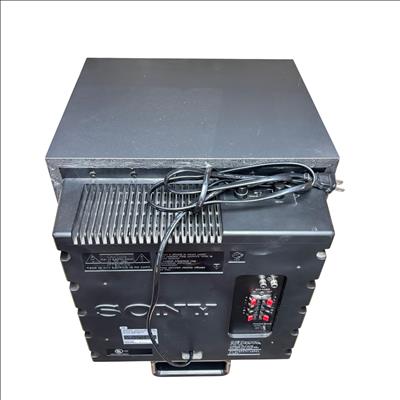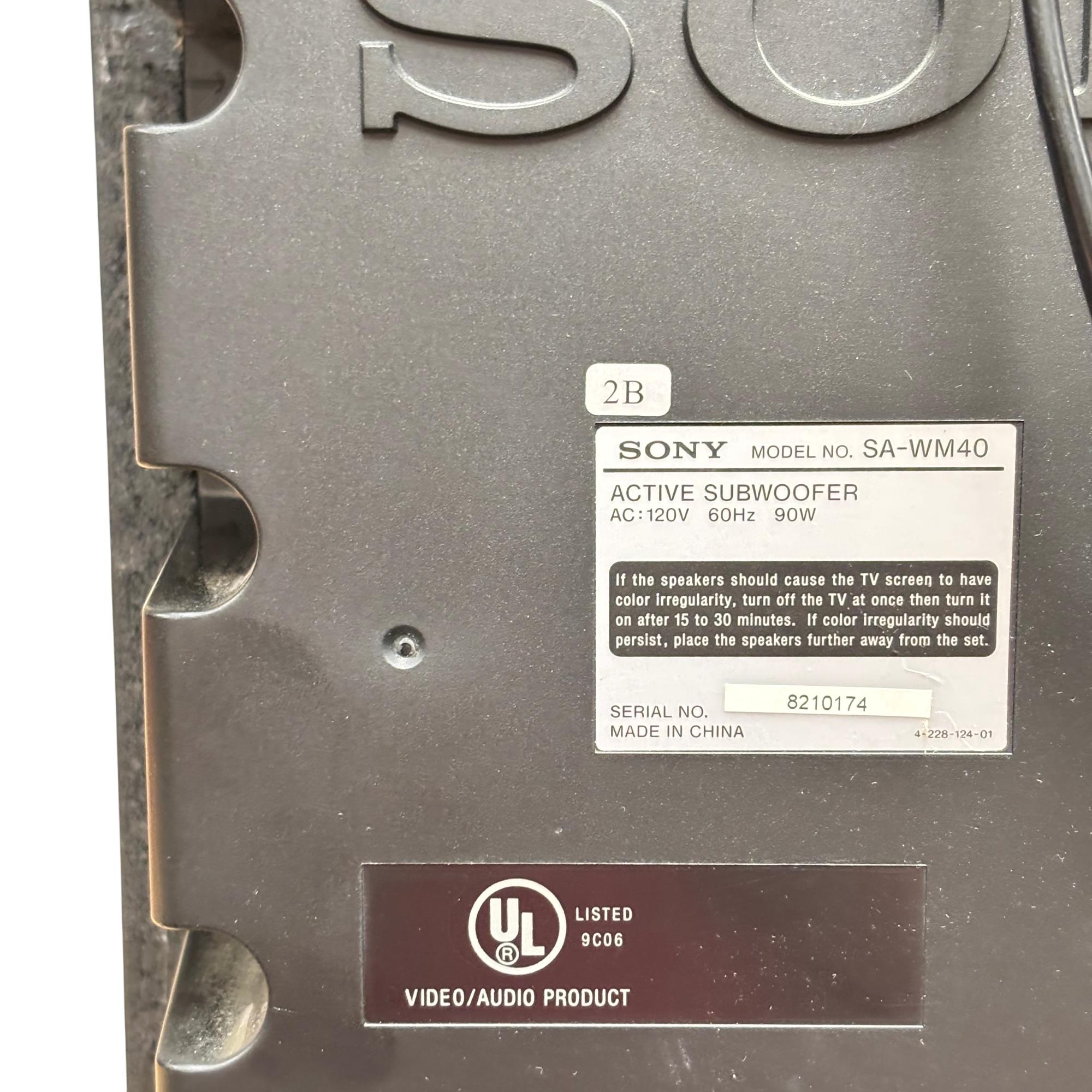 This Sony SA-WM40 Powered Active Subwoofer delivers powerful, deep bass with its 12-inch speaker designed for home audio systems. This active subwoofer features a sleek black cabinet with integrated controls for seamless audio adjustment, making it ideal for enhancing sound performance in various entertainment setups.