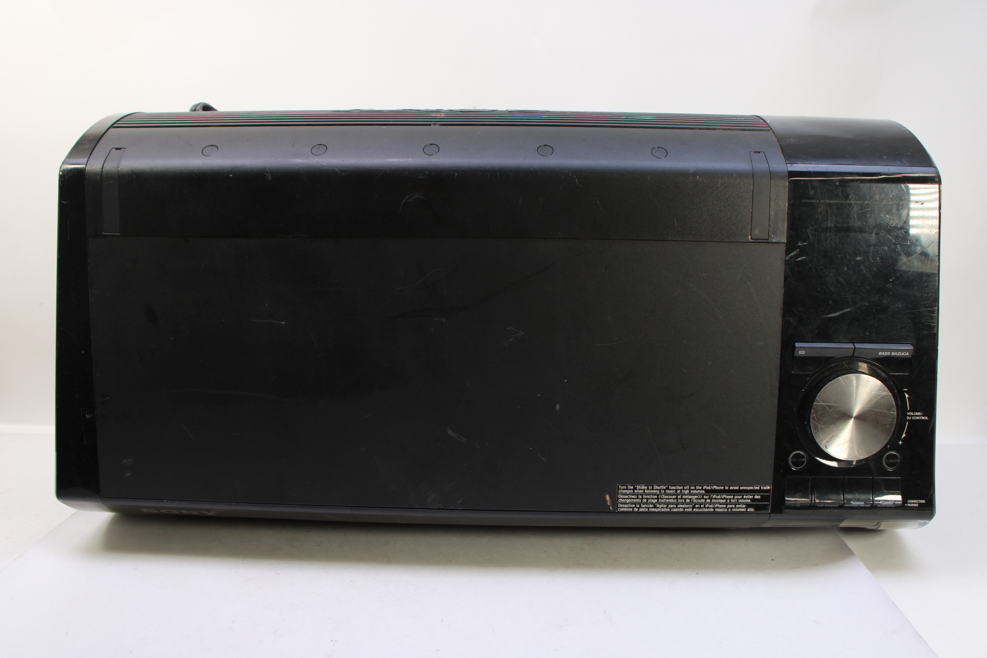 Enjoy powerful sound from a variety of audio sources with the black Portable Party System from Sony. This speaker system incorporates two woofers and tweeters that combine to deliver up to 420W of total power. With built-in Bluetooth connectivity, you can wirelessly stream music from a wide range of similarly equipped devices such as smartphones and tablets. Additionally, this system's Lightning connector cradle allows you to easily dock your compatible iOS devices like iPods and iPhones. Built-in EQ and DJ modes enable the Portable Party System to deliver a customized audio experience.