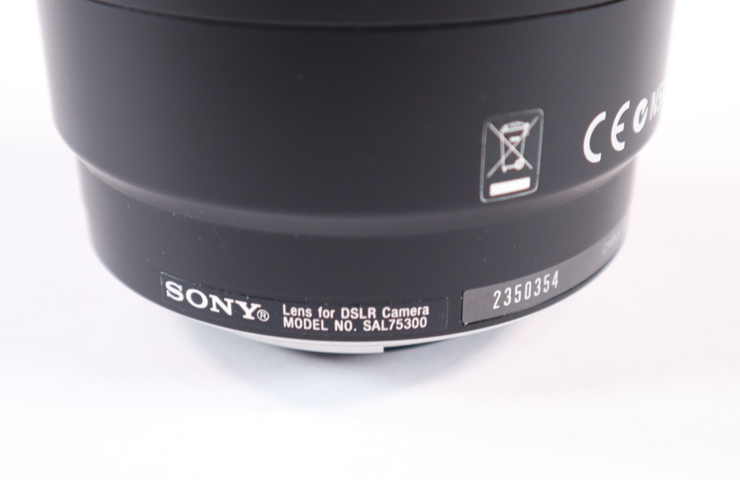 75-300mm telephoto zoom lens with f/4.5-5.6 maximum aperture for Alpha digital SLR cameras