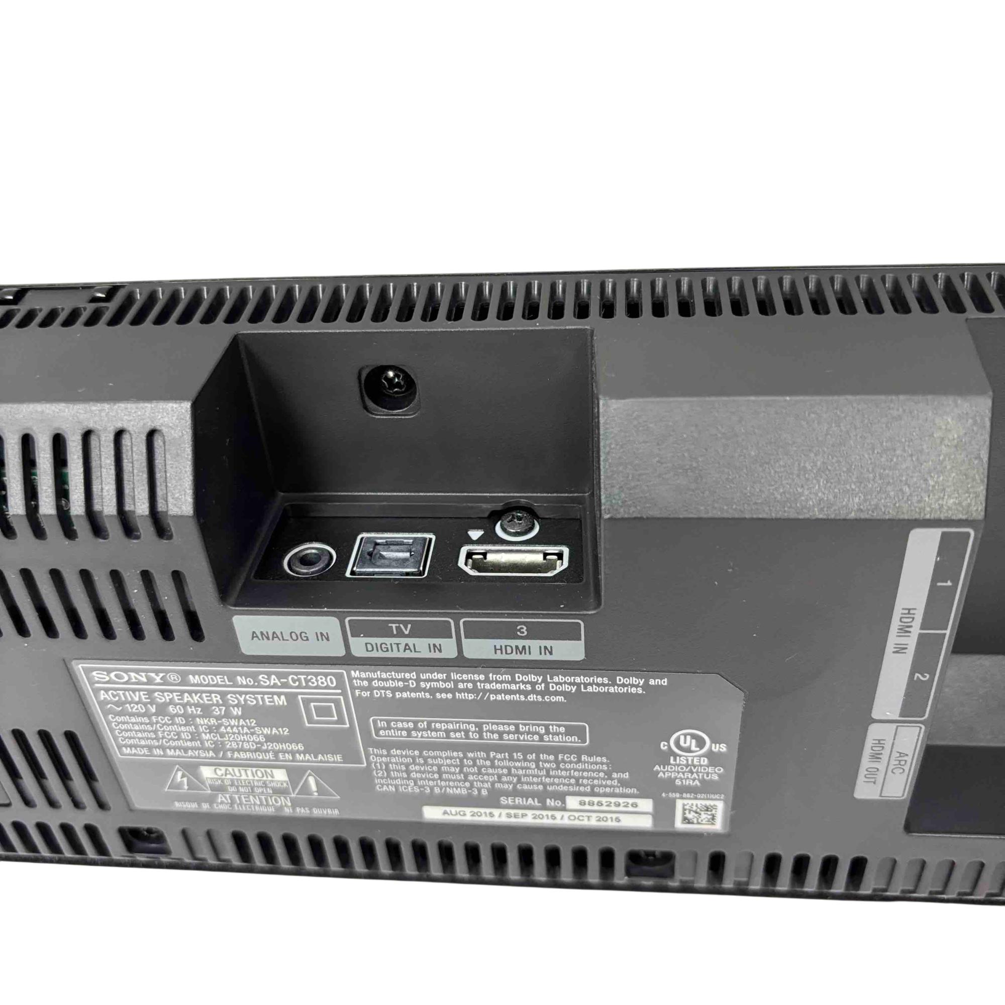 Experience immersive home theater sound with the Sony SA-WCT380 Soundbar and Subwoofer System. This sleek, black system includes a powerful subwoofer and a matching soundbar, providing room-filling audio and deep bass for your TV, movies, and music. Perfect for upgrading your entertainment setup, this lightly used Sony set includes all necessary wiring and a remote for convenient control.