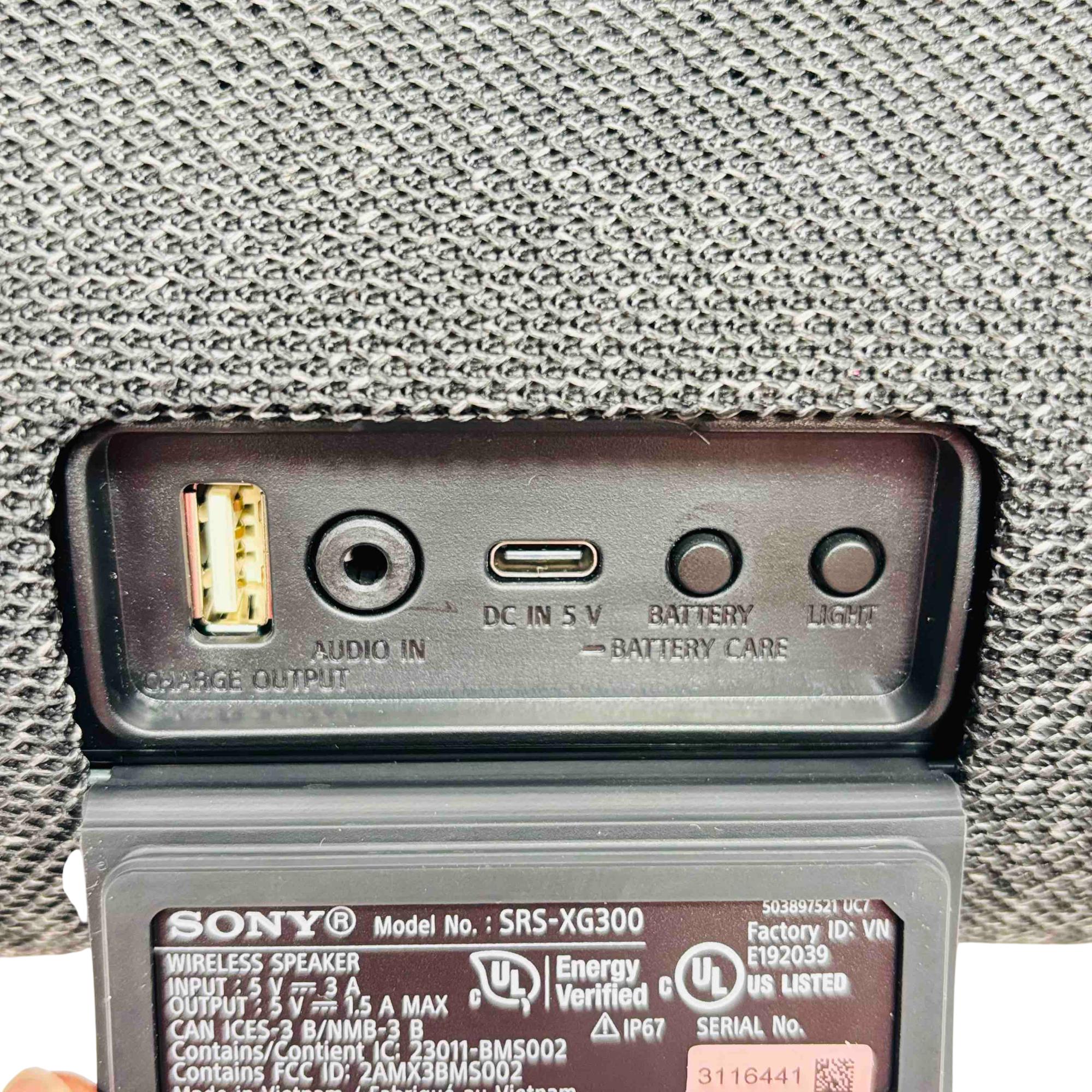 Elevate your sound experience with the Sony SRS-XG300 Portable Wireless Bluetooth Speaker. This powerhouse speaker boasts IP67 water resistance, making it perfect for any adventure, indoors or out. Complete with a sleek design and included charger, it promises high-quality audio and convenient charging wherever you go.