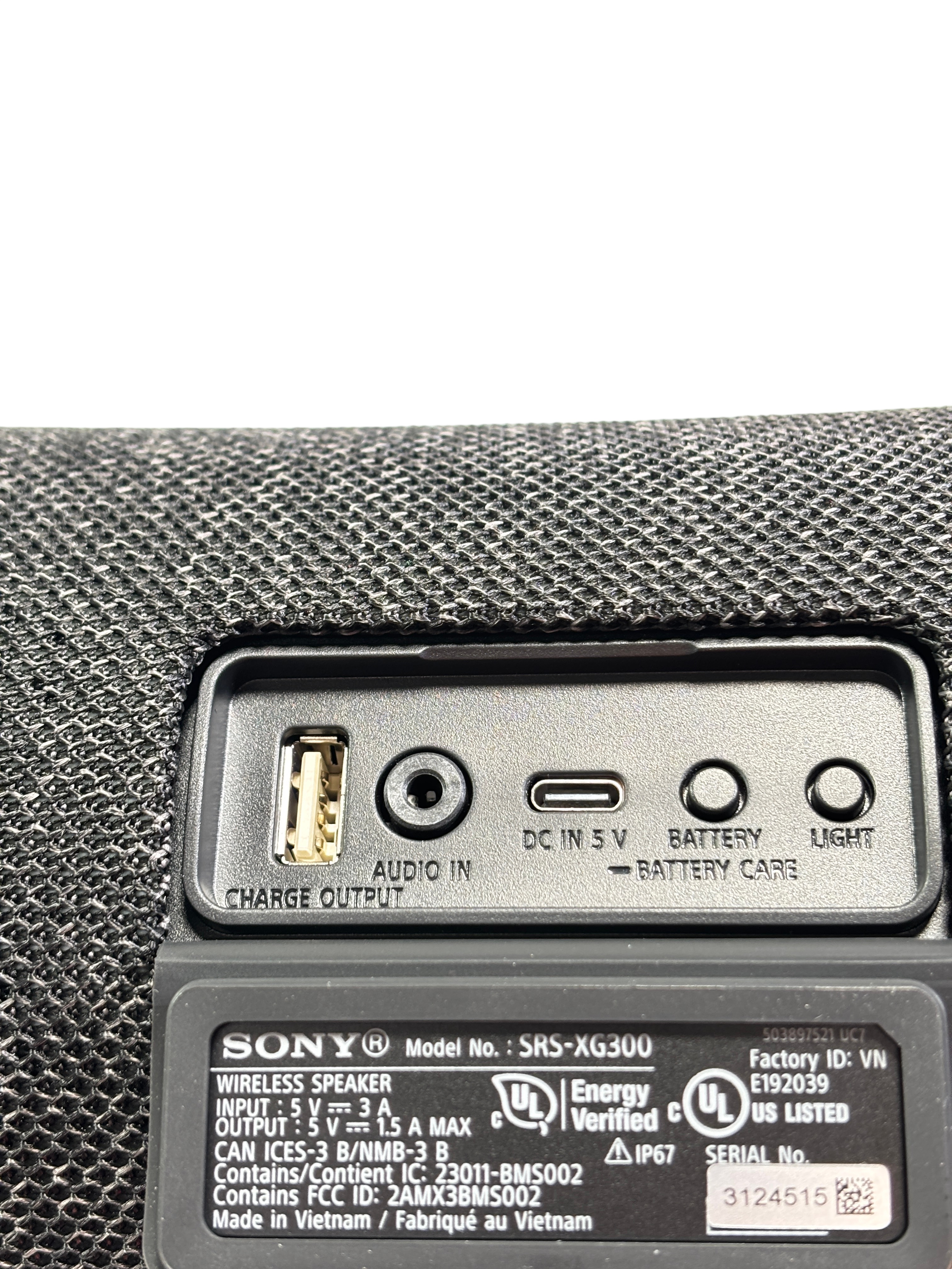 The Sony SRS-XG300 Wireless Speaker offers powerful MEGA BASS sound with a durable IP67 waterproof and dustproof design, perfect for both indoor and outdoor use. Featuring Bluetooth connectivity, a USB charge output port, and Battery Care technology, this speaker ensures long-lasting performance and convenience.