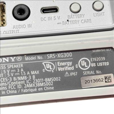 Experience powerful sound and deep bass wherever you go with the Sony SRS-XG300 X-Series Portable Wireless Bluetooth Speaker. With its sleek light gray design, this speaker is IP67 rated waterproof and dustproof, making it perfect for parties, outdoor adventures, and on-the-go entertainment. Enjoy long-lasting battery life, dynamic audio, and connectivity without the hassle of wires.