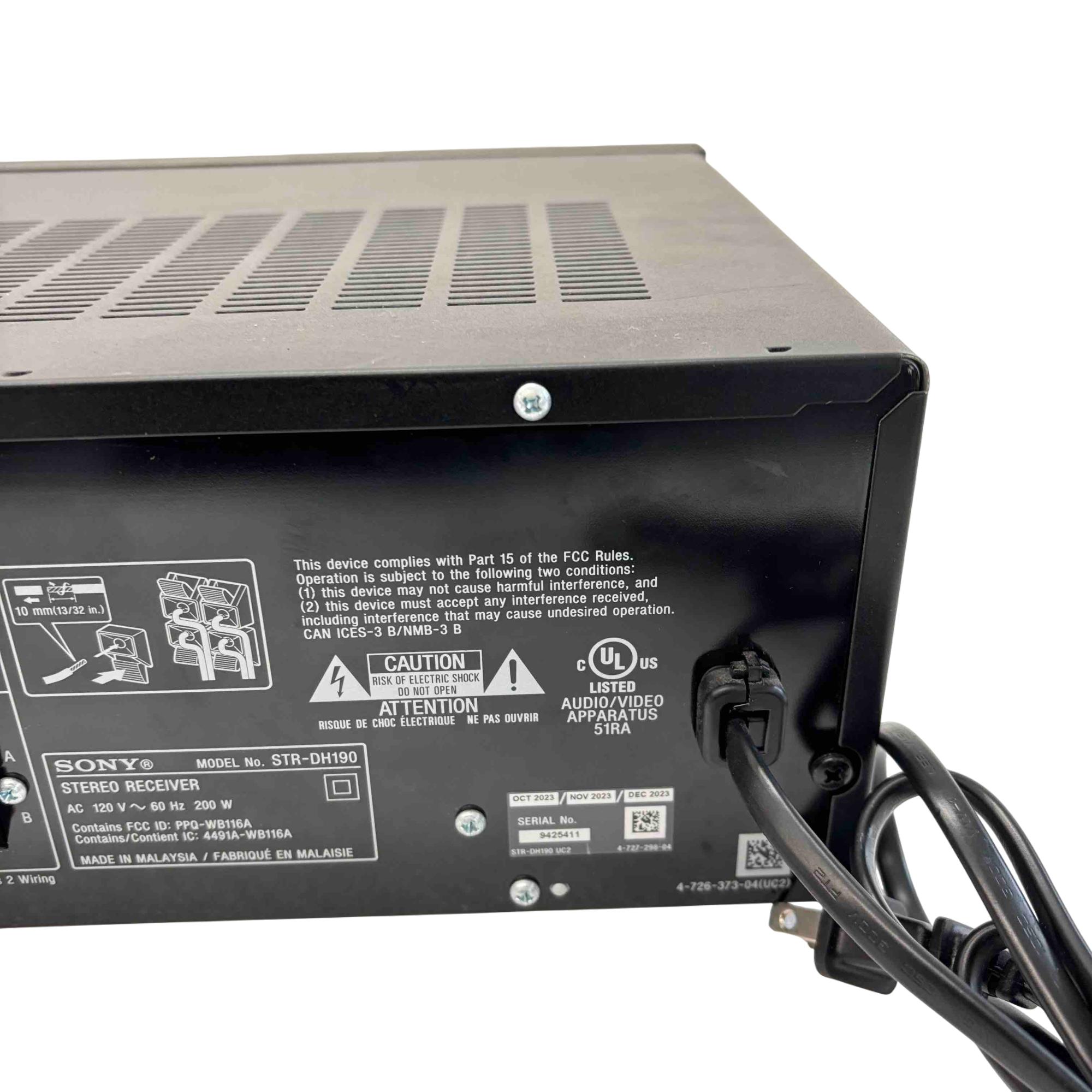 Experience high-quality sound with the Sony STR-DH190 Stereo Receiver, perfect for vinyl enthusiasts and music lovers alike. With dedicated phono input, Bluetooth connectivity, and Hi-Res Audio certification, this receiver seamlessly connects to your turntable and wireless devices. Enjoy crisp, powerful audio for your home entertainment setup with easy operation via the included remote control.