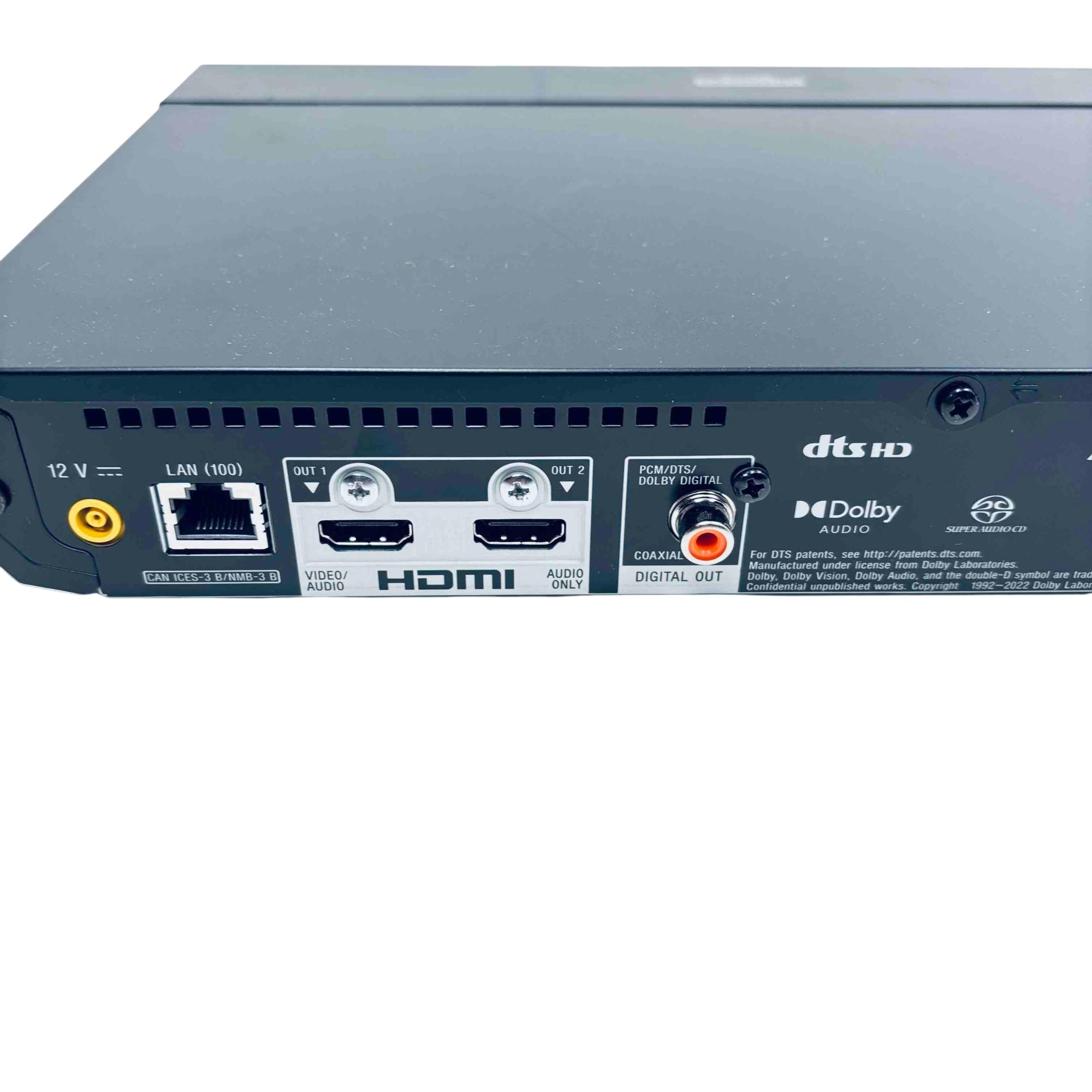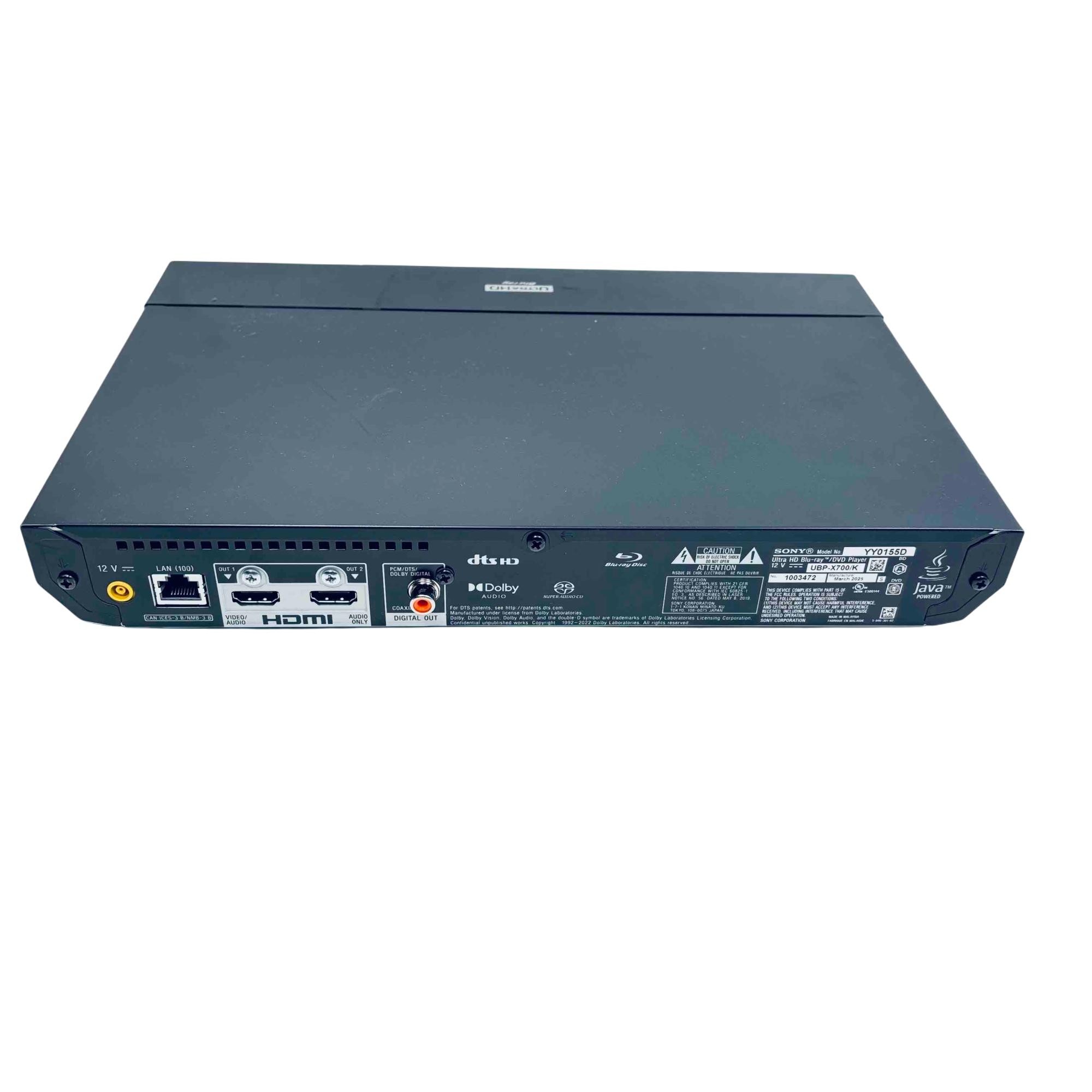 Experience cinematic picture quality at home with the Sony UBP-X700 4K Ultra HD Blu-ray Player. This model supports Dolby Vision, HDR10, and features HDMI and LAN connectivity for seamless streaming. Included are the original remote control and power adapter, making it ready to plug and play for your home entertainment system.
