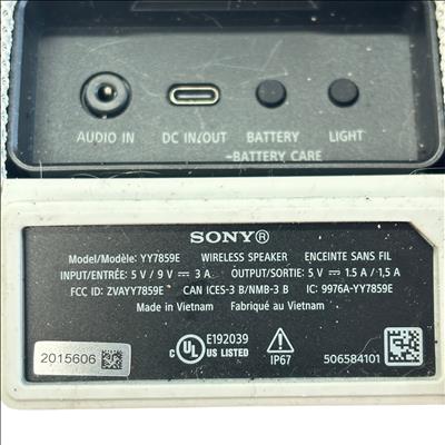 The Sony YY7859E Wireless Speaker offers a compact and durable design with IP67 waterproof and dustproof rating, making it ideal for outdoor and indoor use. Powered by a rechargeable battery with USB-C DC In/Out charging, this speaker supports both wireless Bluetooth connectivity and wired audio input. Its lightweight and portable form factor measuring approximately 7.5 inches in length and 3 inches in height and width makes it easy to carry for music on the go. This model also features battery care functions to maintain battery health over time.