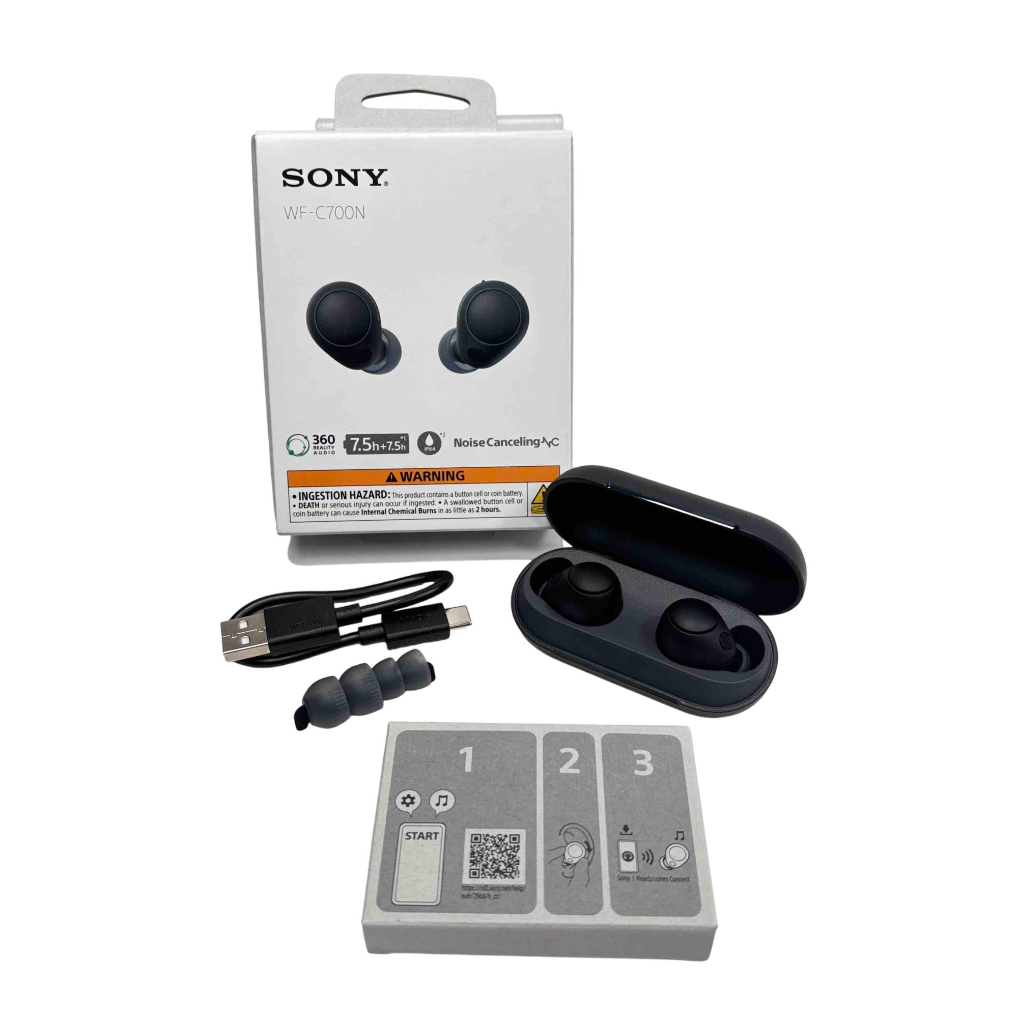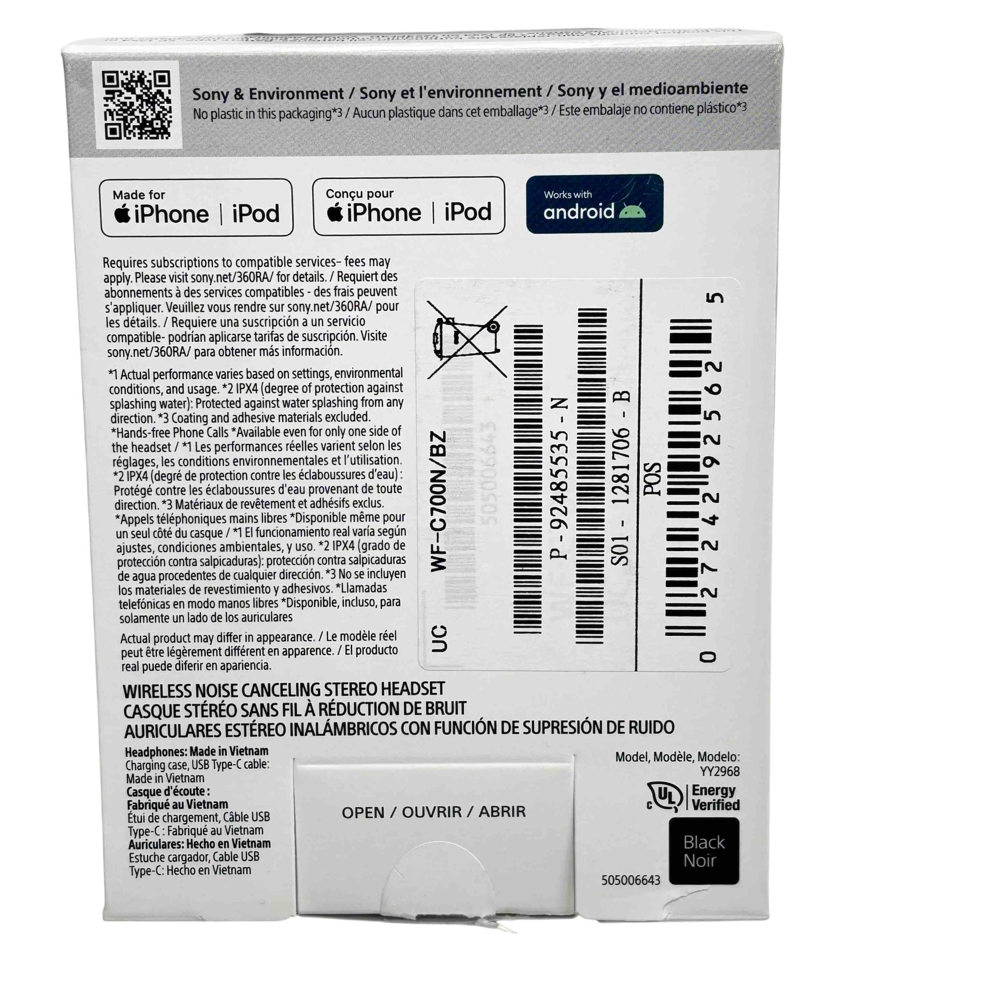 Experience immersive sound with the Sony WF-C700N Truly Wireless Noise Canceling In-Ear Bluetooth Earbuds. These sleek black earbuds feature advanced noise-canceling technology and a long-lasting 7.5-hour battery life. With IPX4 water resistance, theyre perfect for an active lifestyle, ensuring high-quality audio wherever you go.