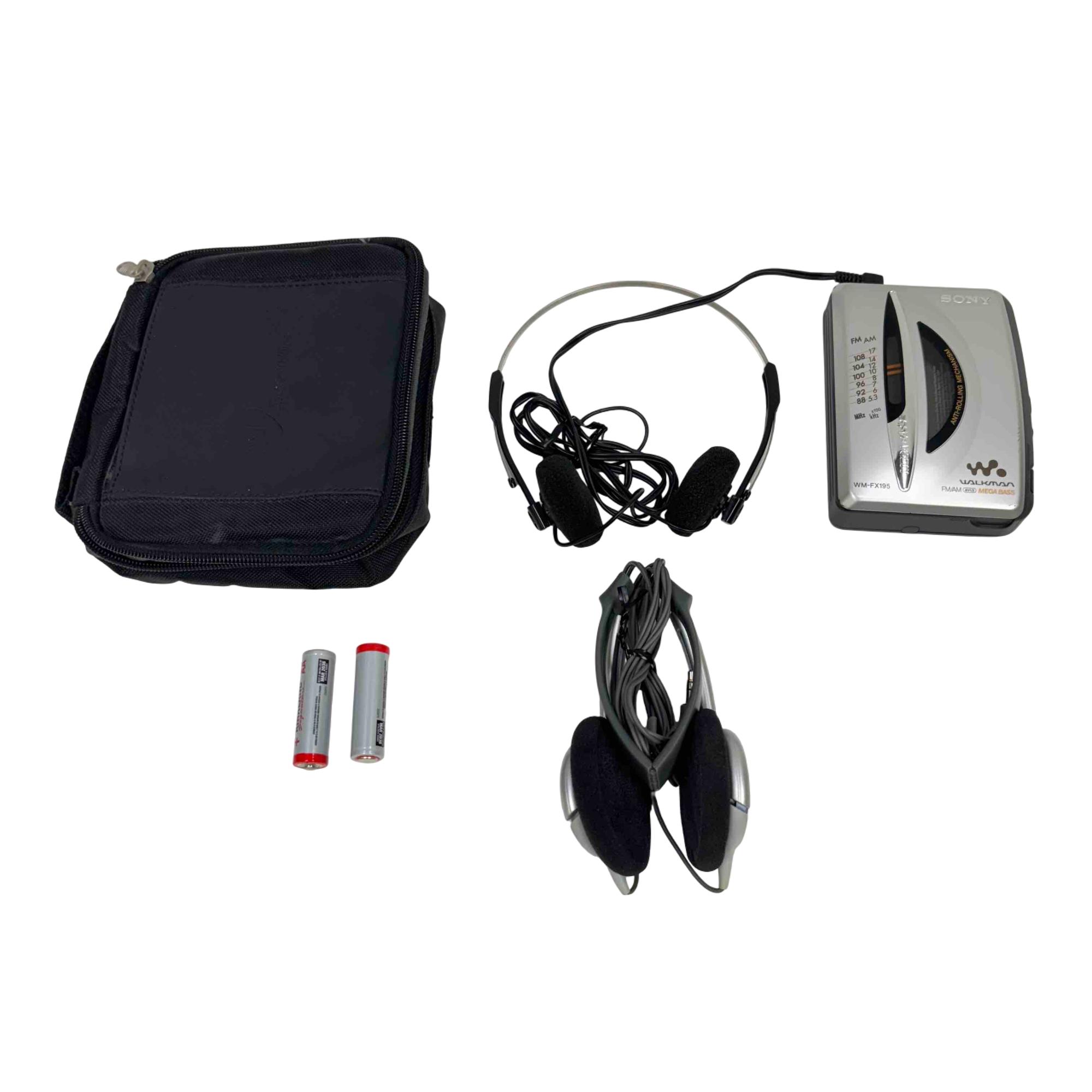 Experience retro audio with the Sony Walkman WM-FX195, a classic portable cassette player featuring FM/AM radio and Mega Bass for rich, dynamic sound. This bundle includes the original headphones, protective carrying case, and batteries, making it the perfect light-use, ready-to-go set for music enthusiasts or collectors. Enjoy analog music with iconic Sony reliability and vintage flair.