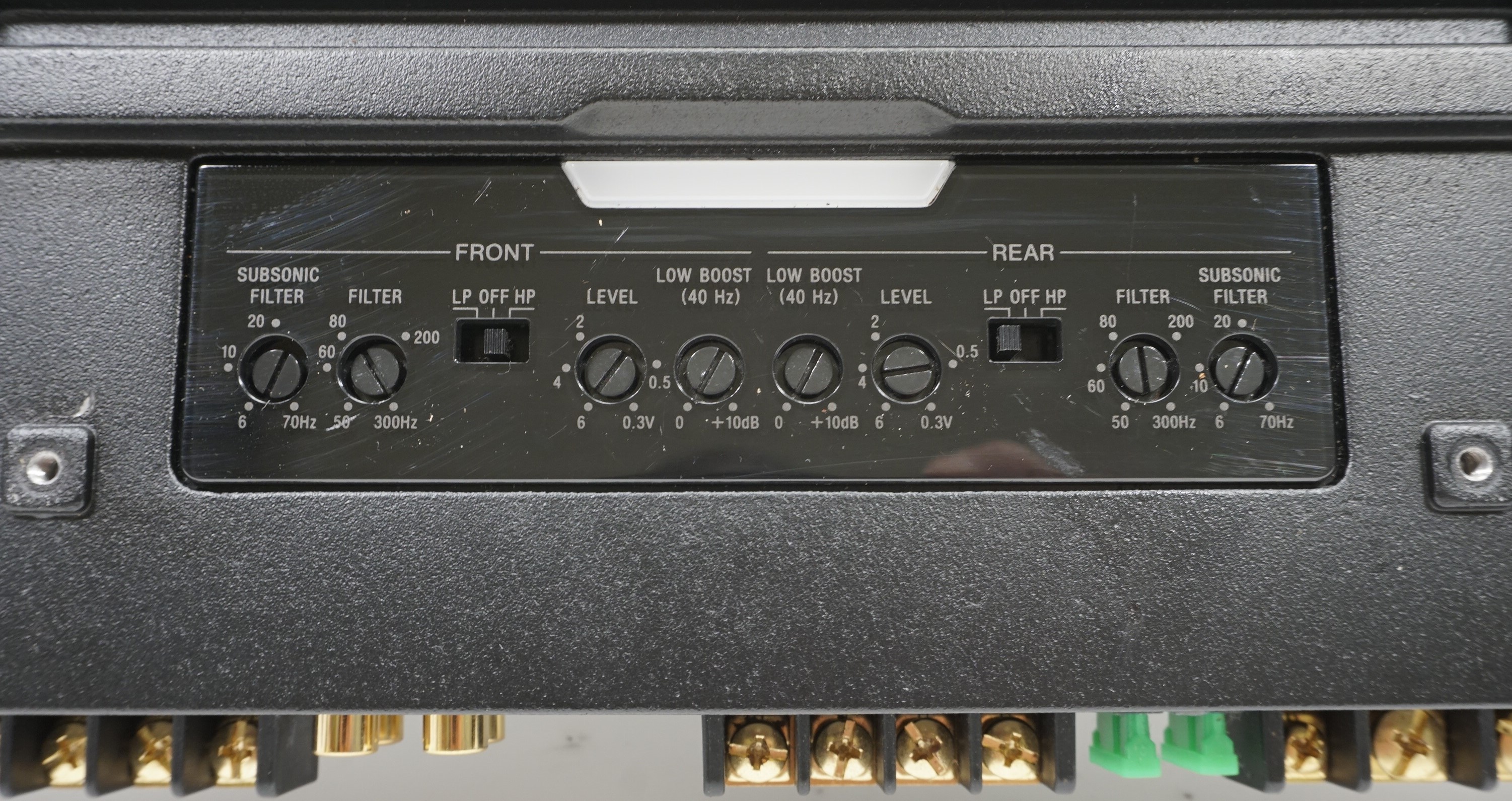Separate variable high- and low-pass filters for front and rear channels (50-300 Hz, 12 dB per octave)