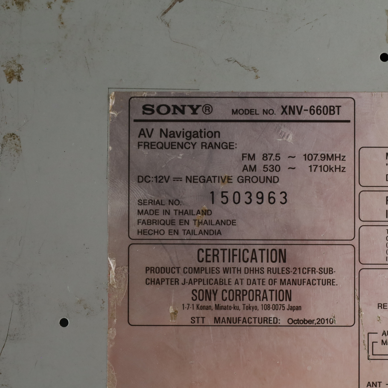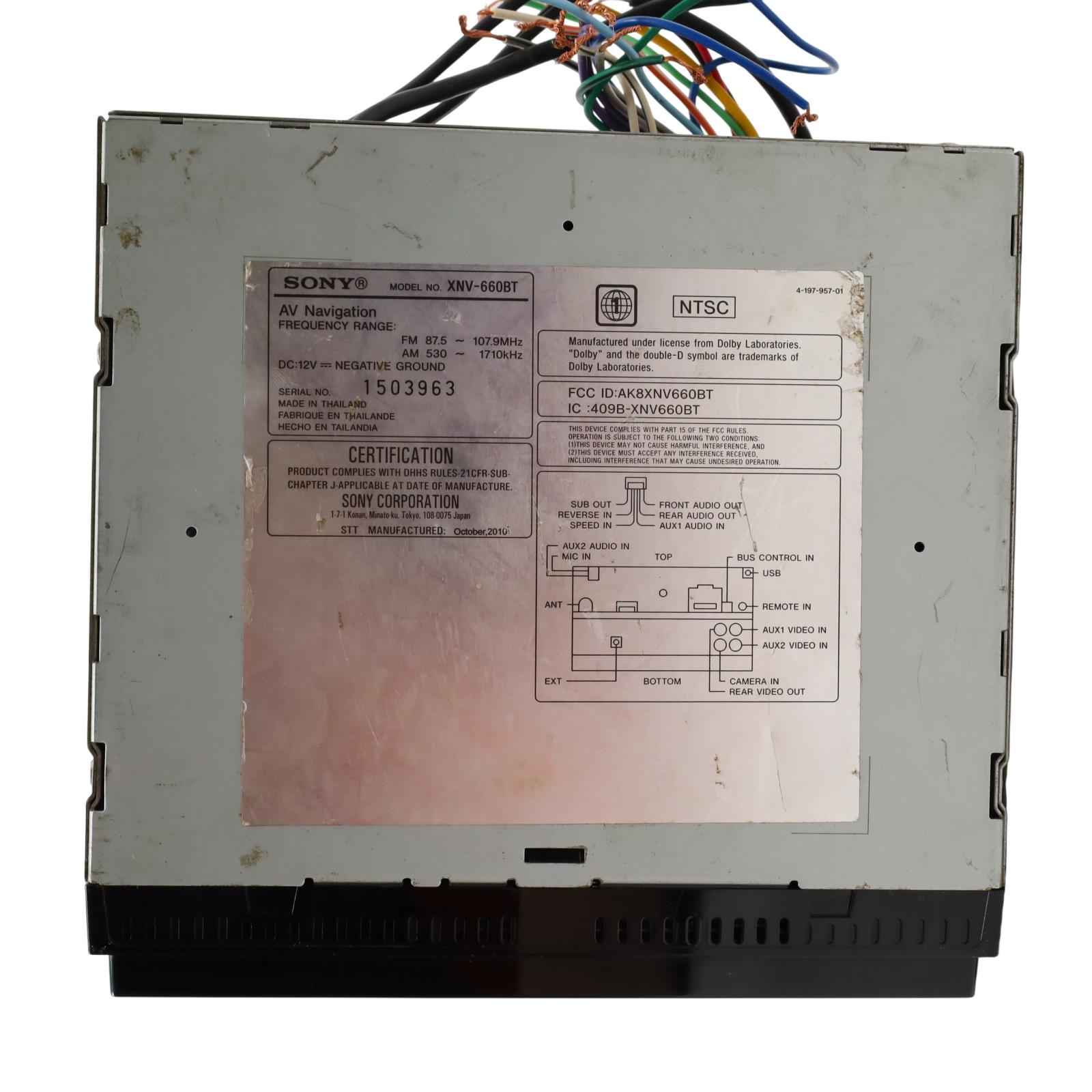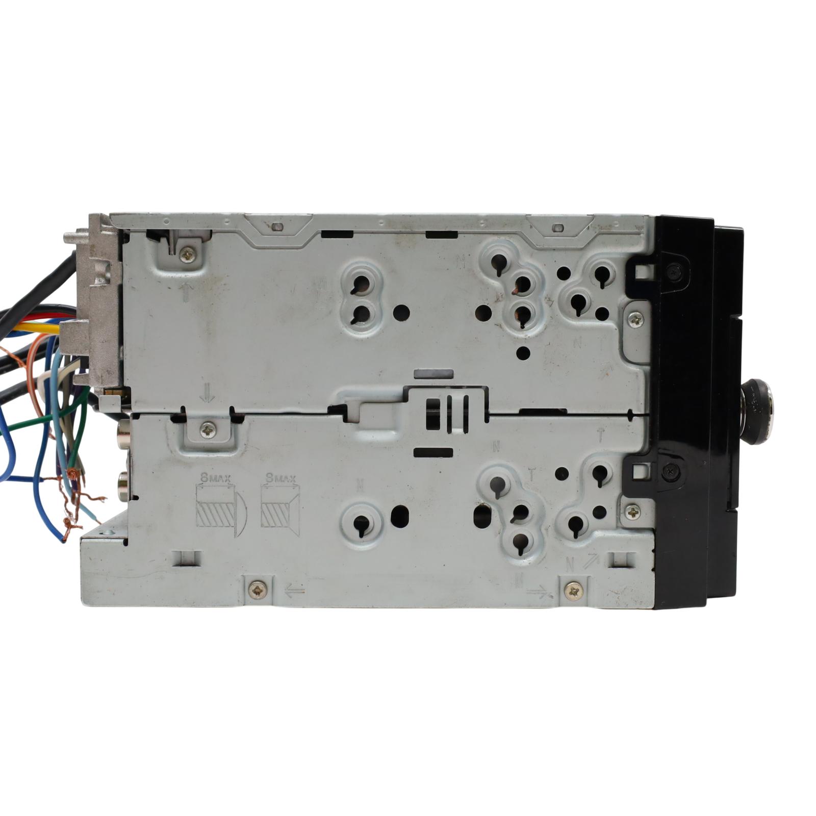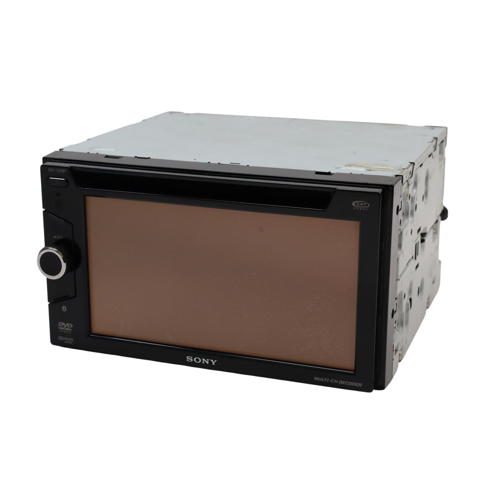 A double-DIN in-dash multimedia receiver featuring a 6.1-inch touchscreen display and an integrated TomTom navigation system with U.S. and Canada map coverage and a detachable navigation module that can be updated via computer, along with Advanced Lane Guidance and extensive points-of-interest data; it includes a built-in internal amplifier rated at 17 watts RMS per channel (CEA-2006) driving four channels, Bluetooth support for hands-free calling and wireless audio streaming, and broad media playback support for DVD, CD, MP3, WMA, AAC audio files, JPEG images, and MP4 video from disc or USB sources, complemented by a 24-bit digital-to-analog converter, high-pass and low-pass filters, and a 7-band EQ with multiple preset curves; expandability includes rear USB, rear A/V input, rear-view camera input, compatibility with satellite radio and HD Radio tuners, built-in iPod control via optional adapter cable, six-channel 4-volt preamp outputs for front, rear, and subwoofer connections, and a dedicated video output, all housed in a chassis designed to fit standard 4-inch-tall double-DIN dash openings.