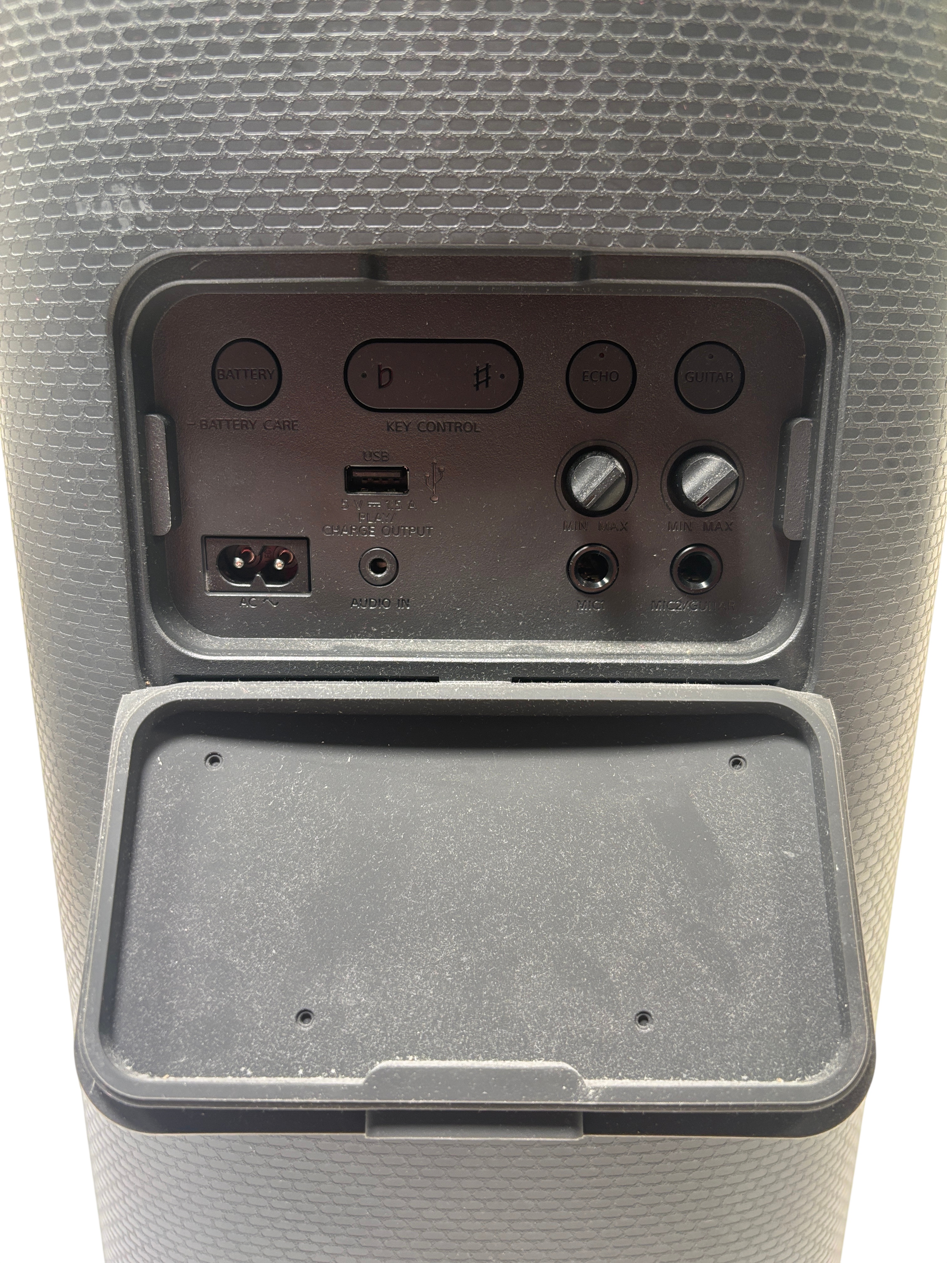 The Sony SRS-XV500 Portable Bluetooth Speaker (Model YY7855E) delivers powerful sound with Mega Bass technology and versatile connectivity options including Bluetooth, USB, and audio input. This black speaker features stamina mode for extended playback and built-in light effects to enhance your listening experience. Compact yet robust, it includes a charger cable and is ideal for both indoor and outdoor use, providing rich audio performance wherever you go.