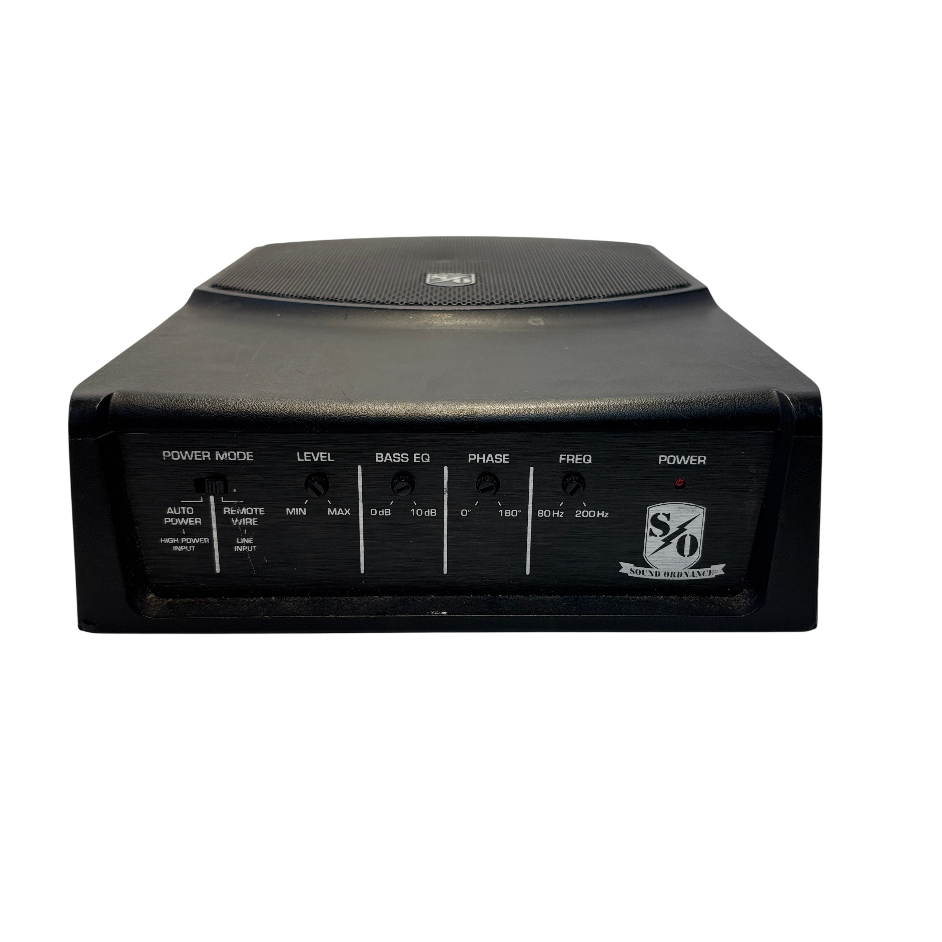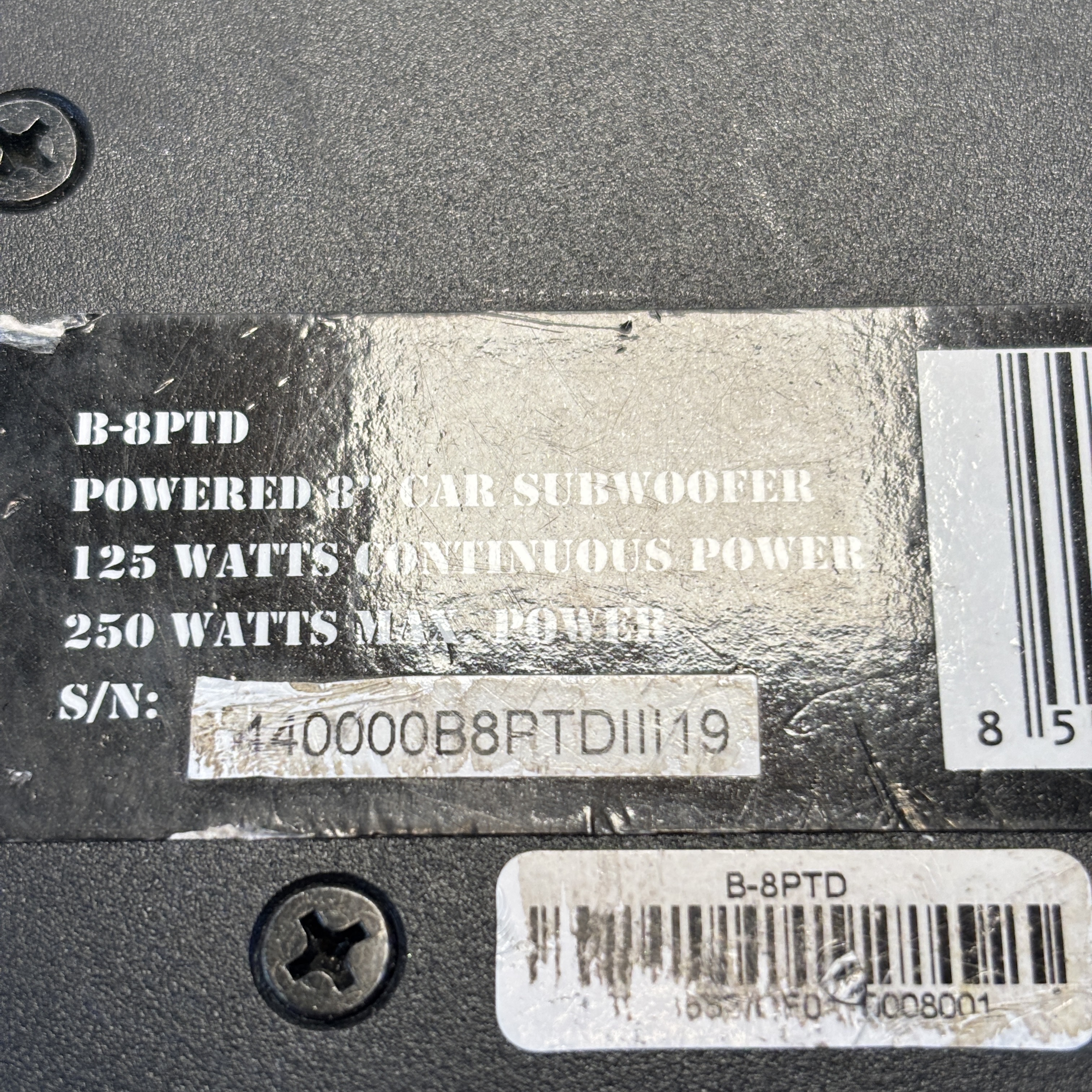 The Sound Ordnance B-8PTD Powered 8" Car Subwoofer delivers 125 Watts of continuous power and up to 250 Watts max power for enhanced bass performance in your vehicle. Featuring adjustable bass EQ from 0 to 10 dB and phase control from 0° to 180°, this subwoofer allows for customized sound tuning. It includes multiple input options such as remote wire, line input, and high power input for versatile connectivity. Compact and durable, this powered subwoofer is designed to fit easily into most car audio setups, providing deep, rich bass to elevate your listening experience.