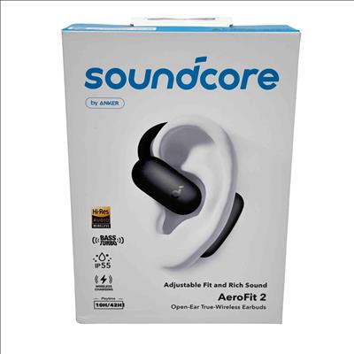 Soundcore by Anker AeroFit 2 Open Ear Headphones Black (Model: A3874Z11) feature a wireless design with adjustable ear hooks for a secure and comfortable fit during active use. These high-resolution audio earbuds deliver clear, immersive sound with advanced bass performance and a lightweight, open-ear style that allows ambient noise awareness.
