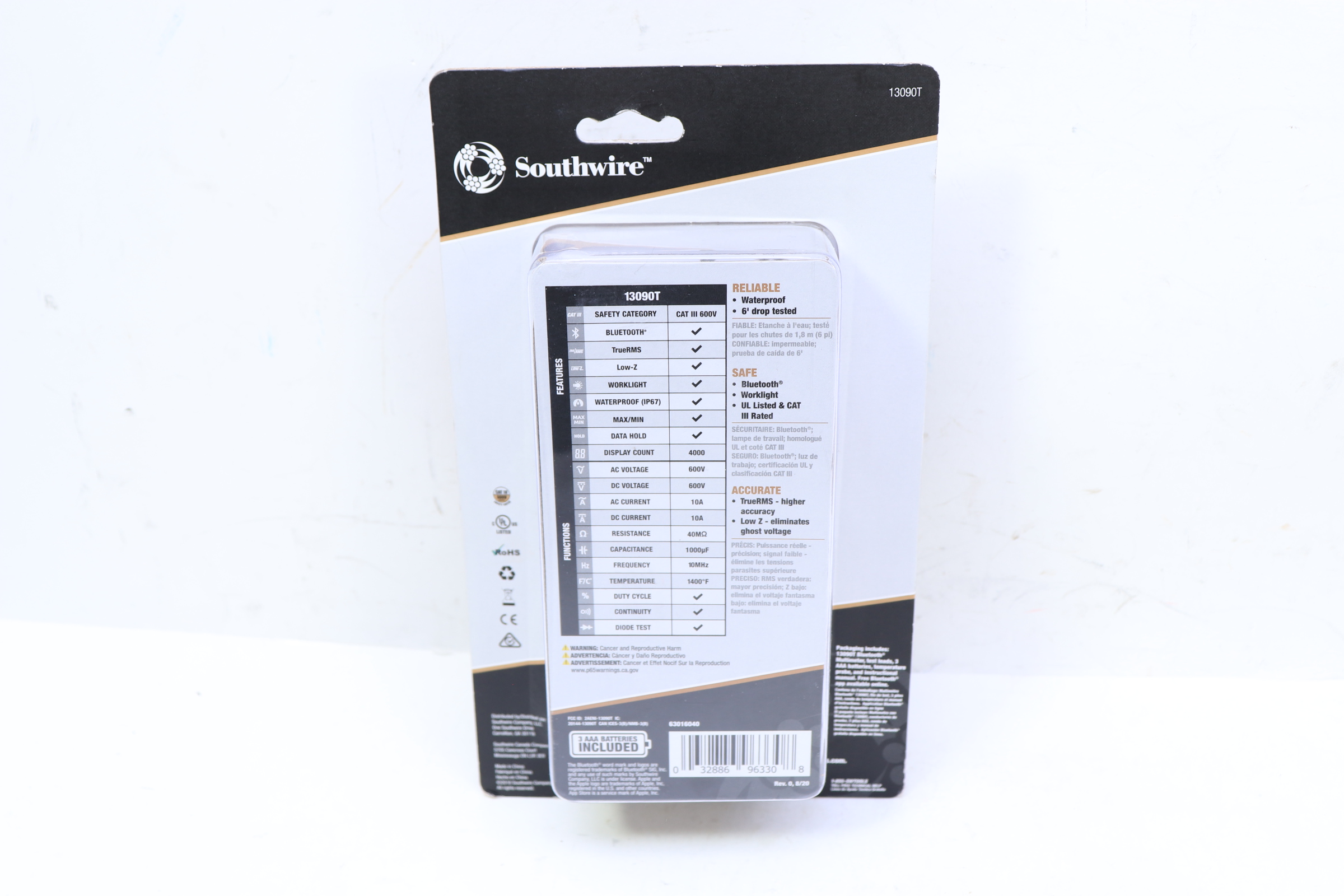 Introducing the ultimate tool for electricians and technicians - the Southwire Mapp Bluetooth multi-meter. With its Bluetooth interface, you can easily view, record, and share readings using the Mapp mobile app, allowing you to work more efficiently and accurately. This multi-meter features TrueRMS measurements, providing accurate AC readings, while the Low Z function eliminates false readings from "Ghost" voltage, ensuring the highest level of accuracy in your measurements. The built-in LED flashlight adds convenience to your work by providing extra illumination in dark or dimly lit areas, making it easier to read your measurements.