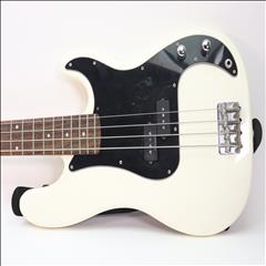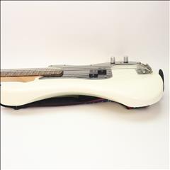 The Squier Mini Precision Bass is the perfect companion for players seeking a reduced-size instrument with classic styling and familiar Fender tone. Highlights include a thin and lightweight body, a short-scale neck with an easy-to-play "C"-shaped profile, a Squier split single-coil pickup with volume and tone controls for sonic variety, and a hardtail bridge for solid tuning stability.