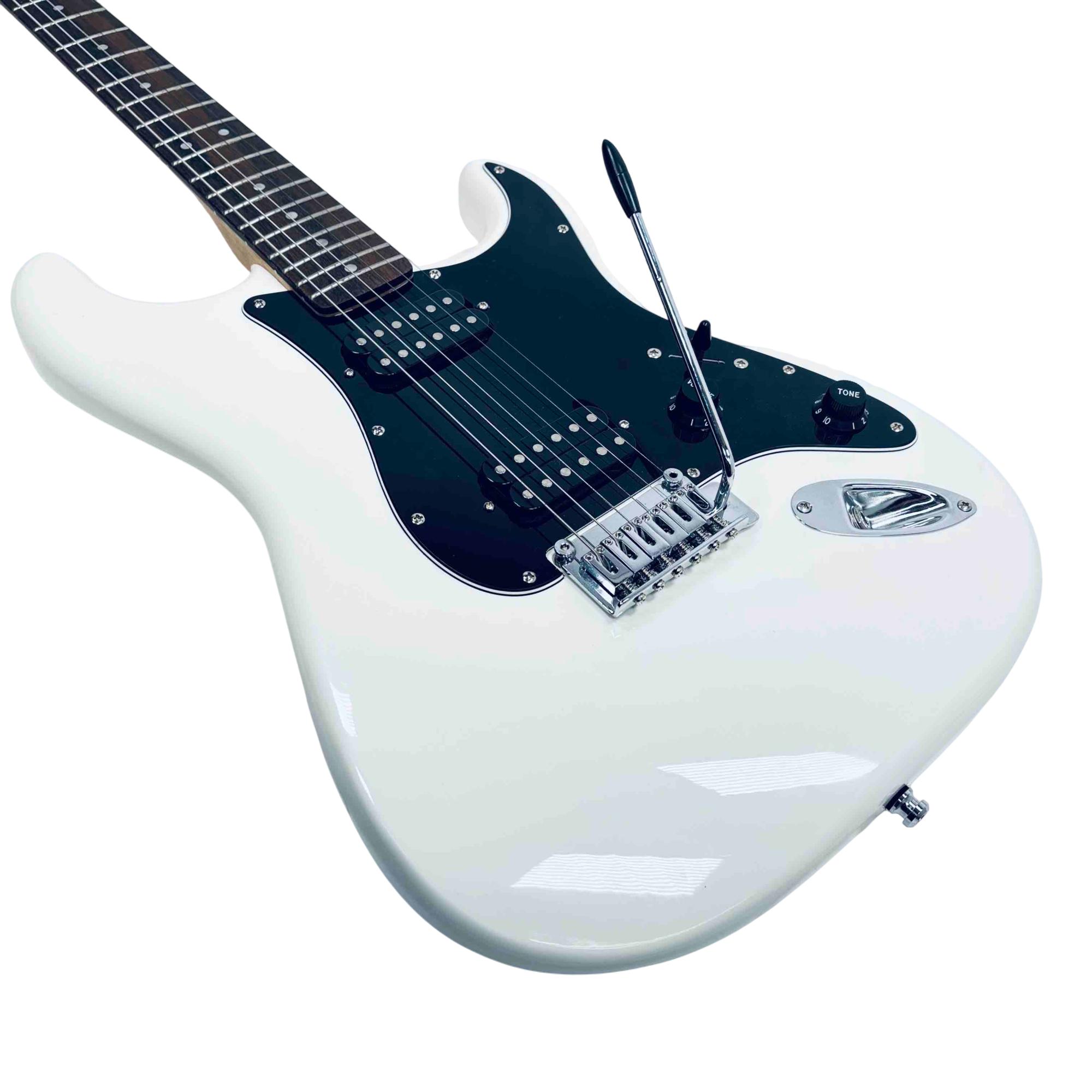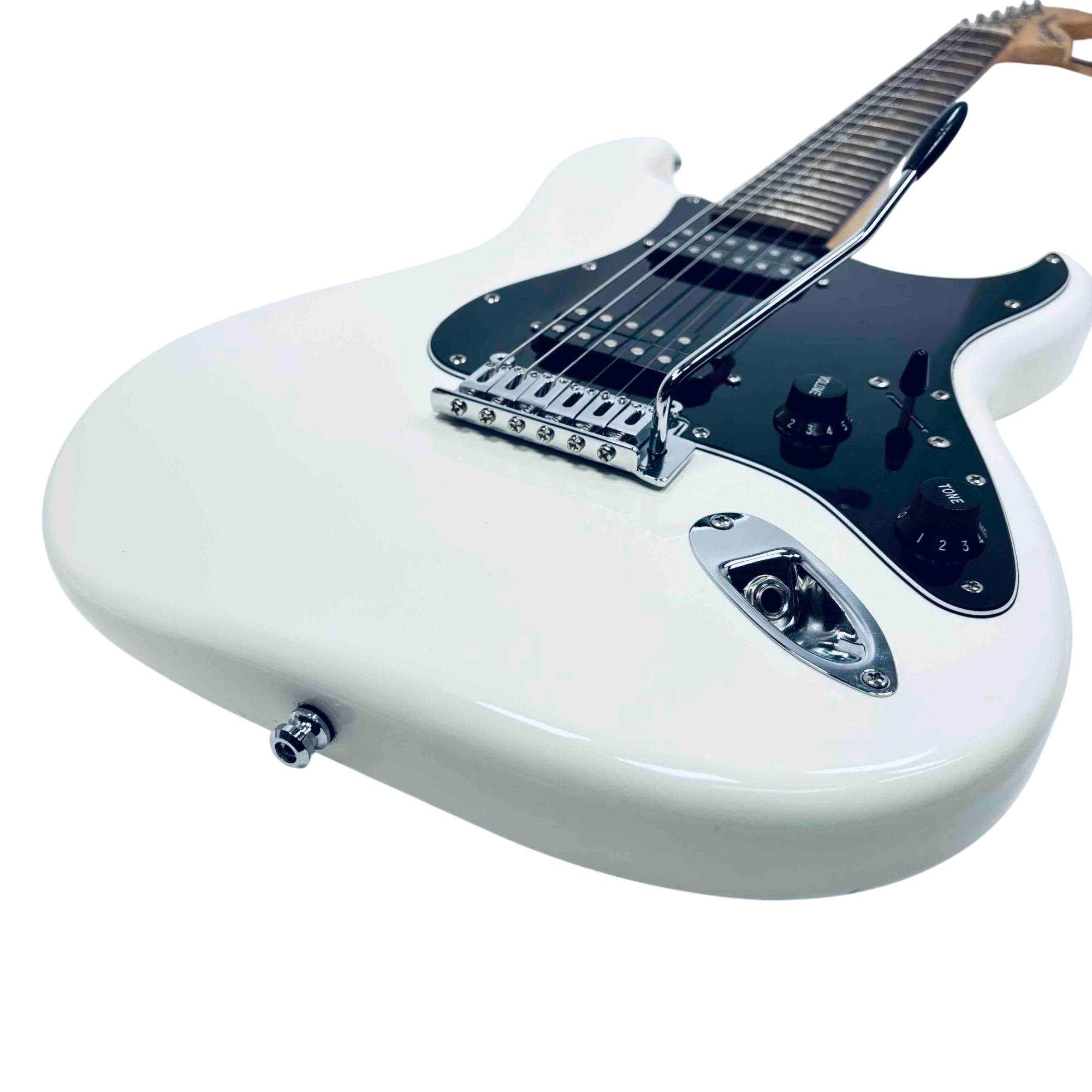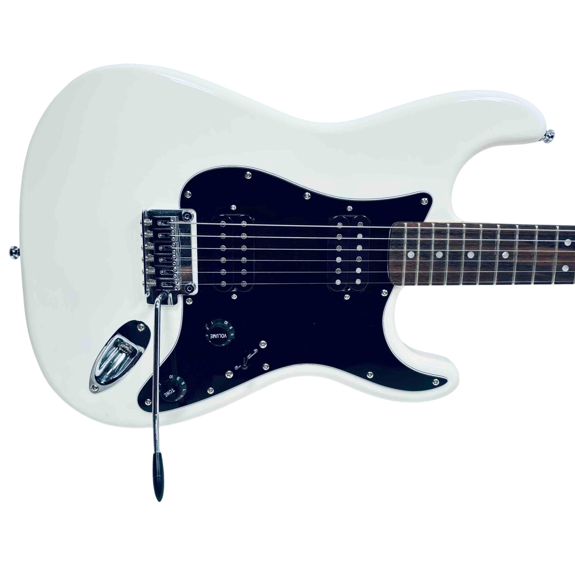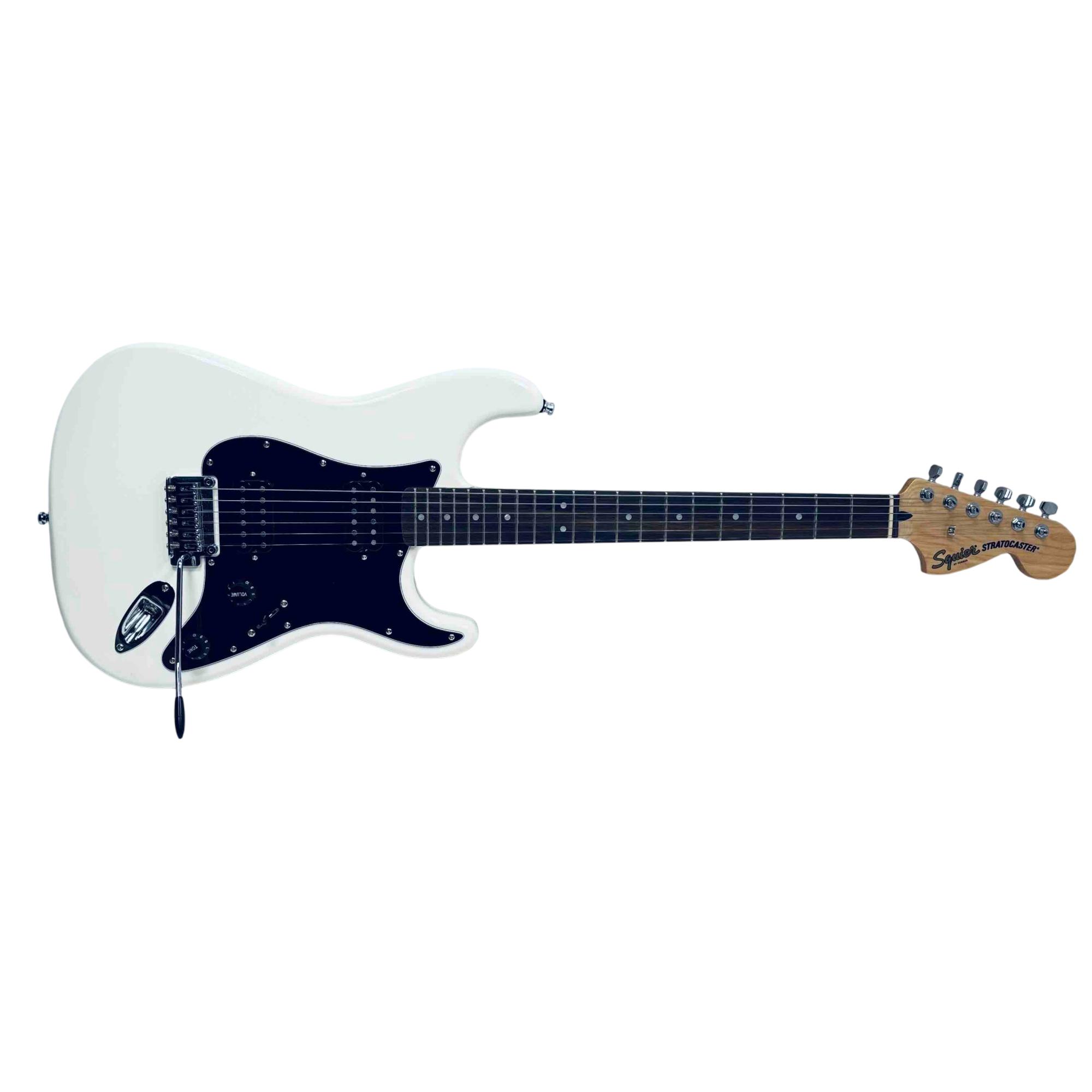 Experience classic Fender tone and style with the Squier Affinity Series Stratocaster HH. This electric guitar features a sleek white finish, dual humbucker pickups for versatile sound, and the iconic Stratocaster shape. Perfect for beginners and seasoned players alike, its a reliable and stylish choice for any performance.