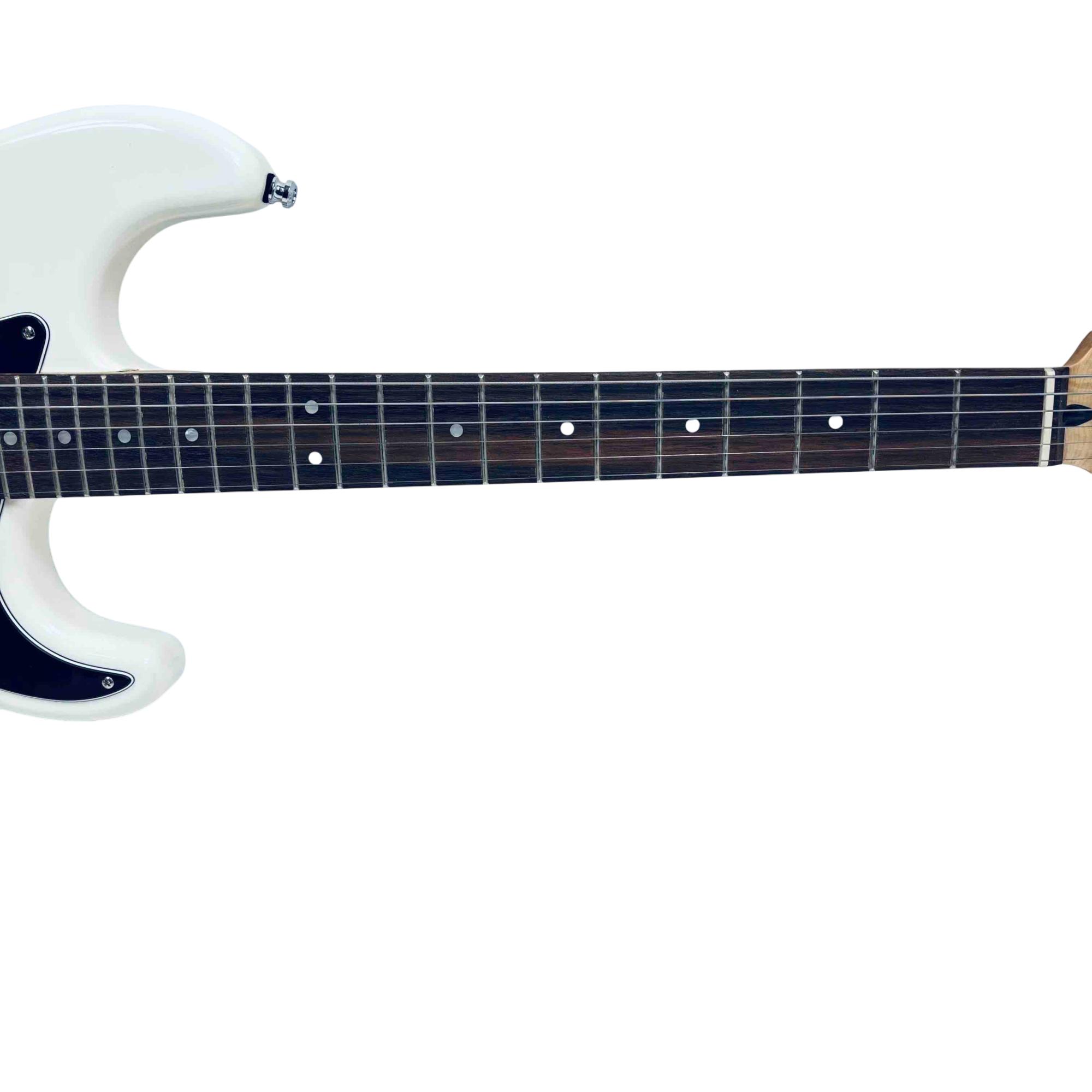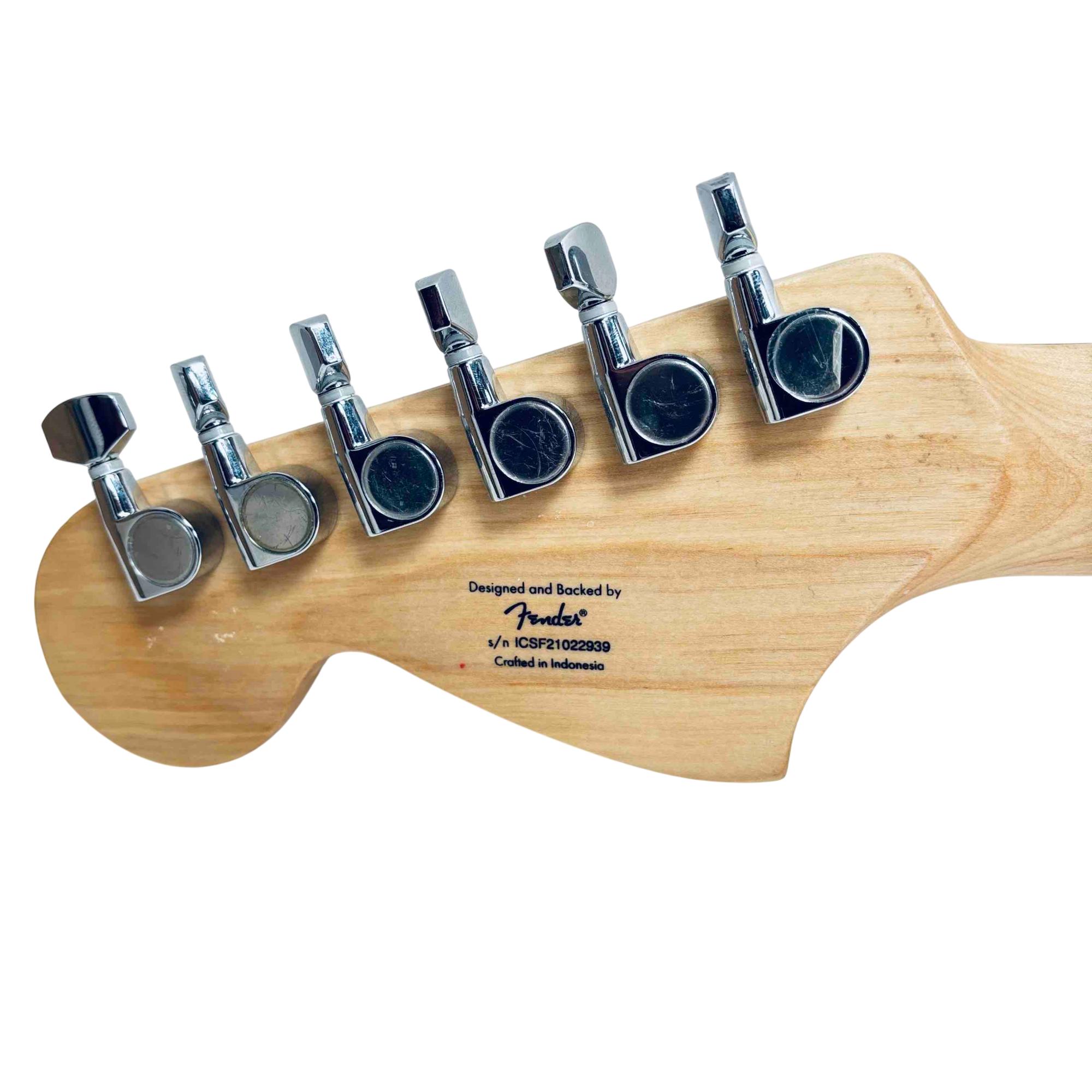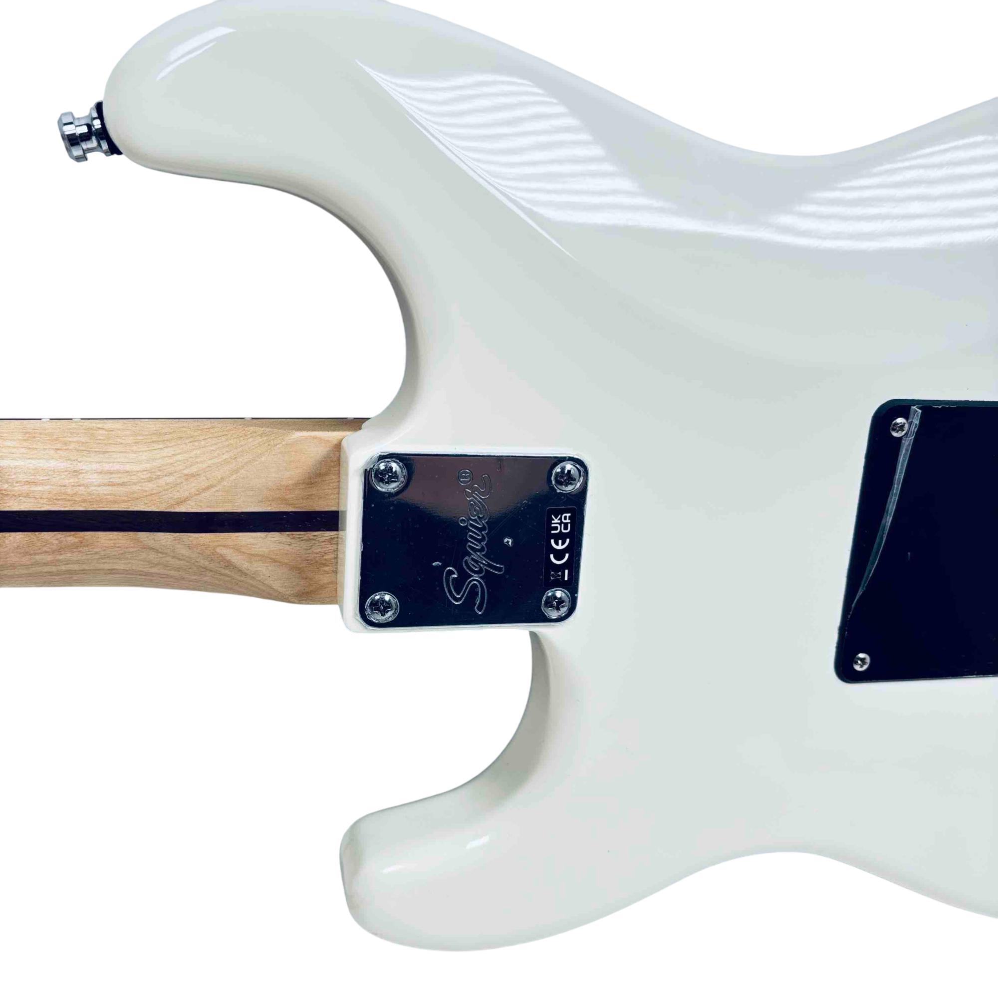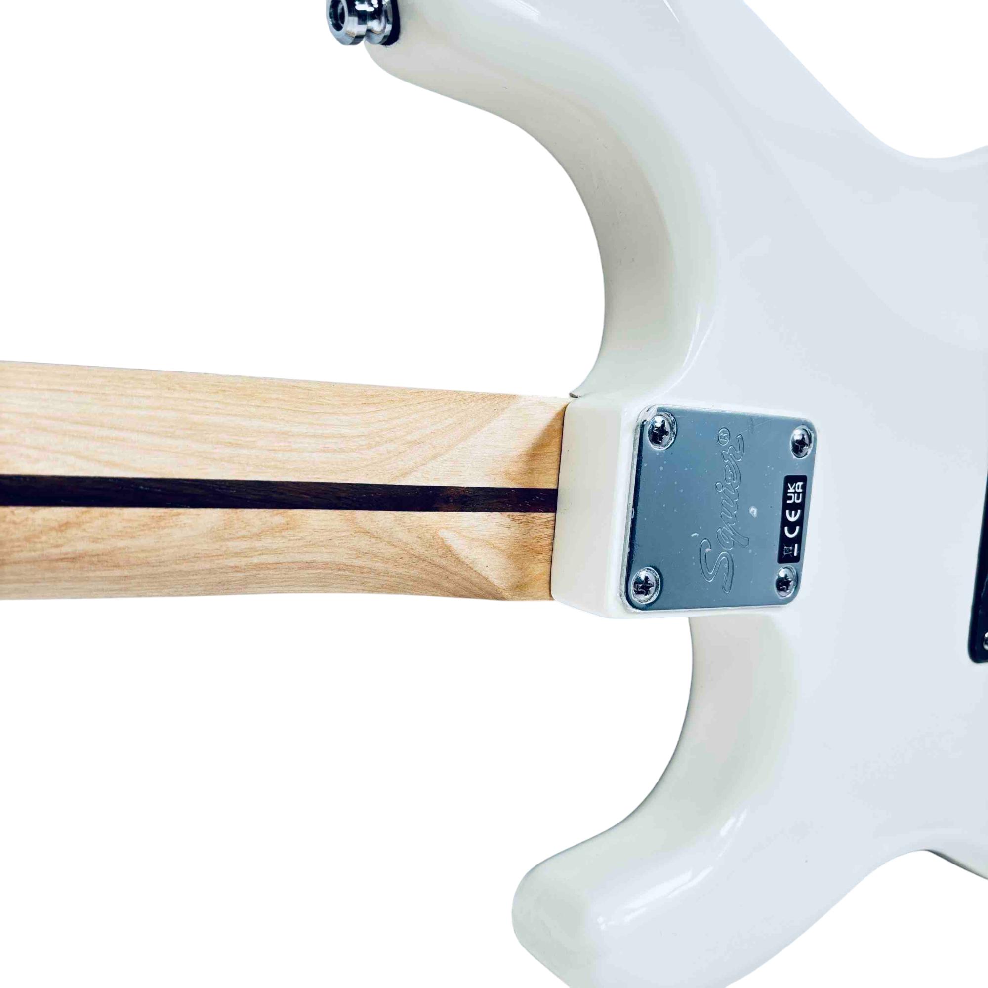 Experience classic Fender tone and style with the Squier Affinity Series Stratocaster HH. This electric guitar features a sleek white finish, dual humbucker pickups for versatile sound, and the iconic Stratocaster shape. Perfect for beginners and seasoned players alike, its a reliable and stylish choice for any performance.