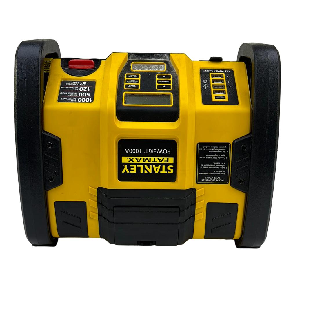 Experience unparalleled power and convenience with the Stanley FATMAX POWERIT 1000A Digital Compressor. This rugged, yellow and black powerhouse is perfect for inflating tires, jump-starting vehicles, and providing USB power when you need it most. With 1000 peak battery amps, 120 PSI air compressor capacity, and built-in AC adapter, this versatile device is a must-have for every car owner.