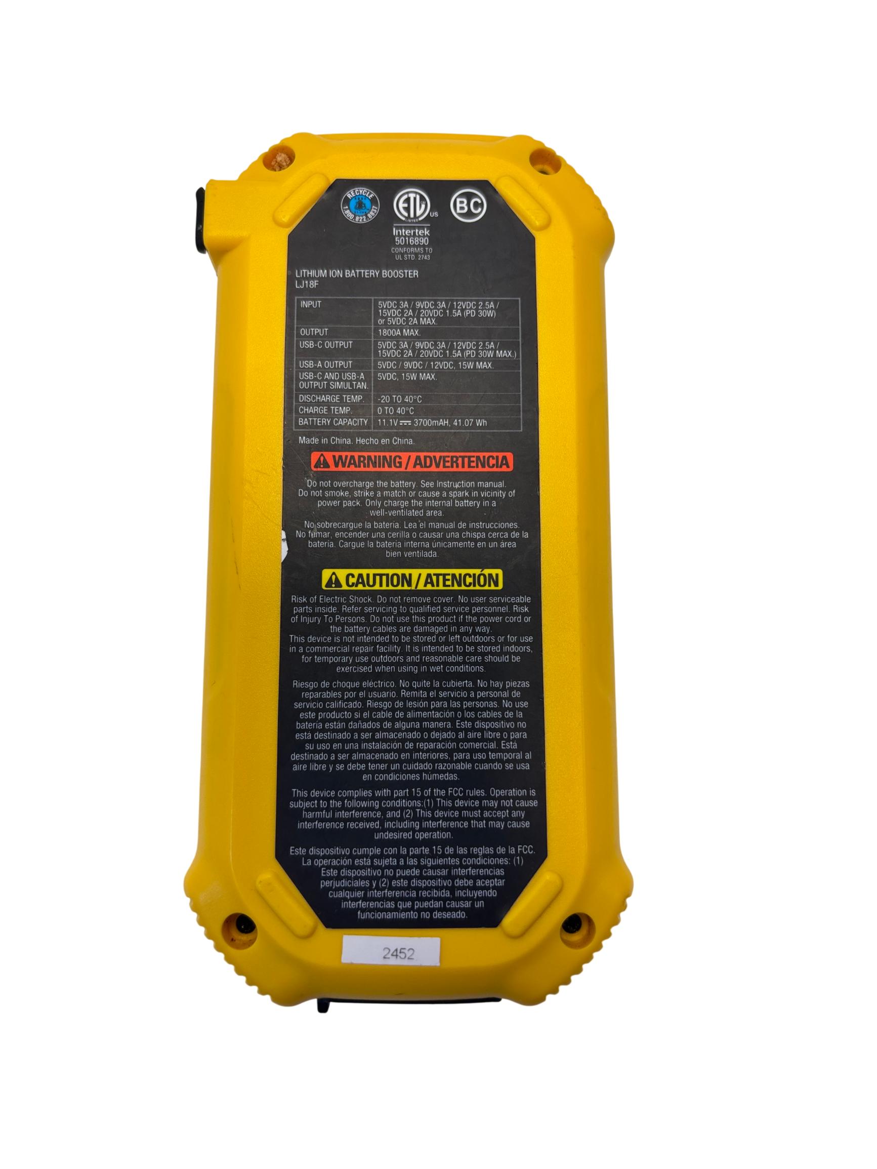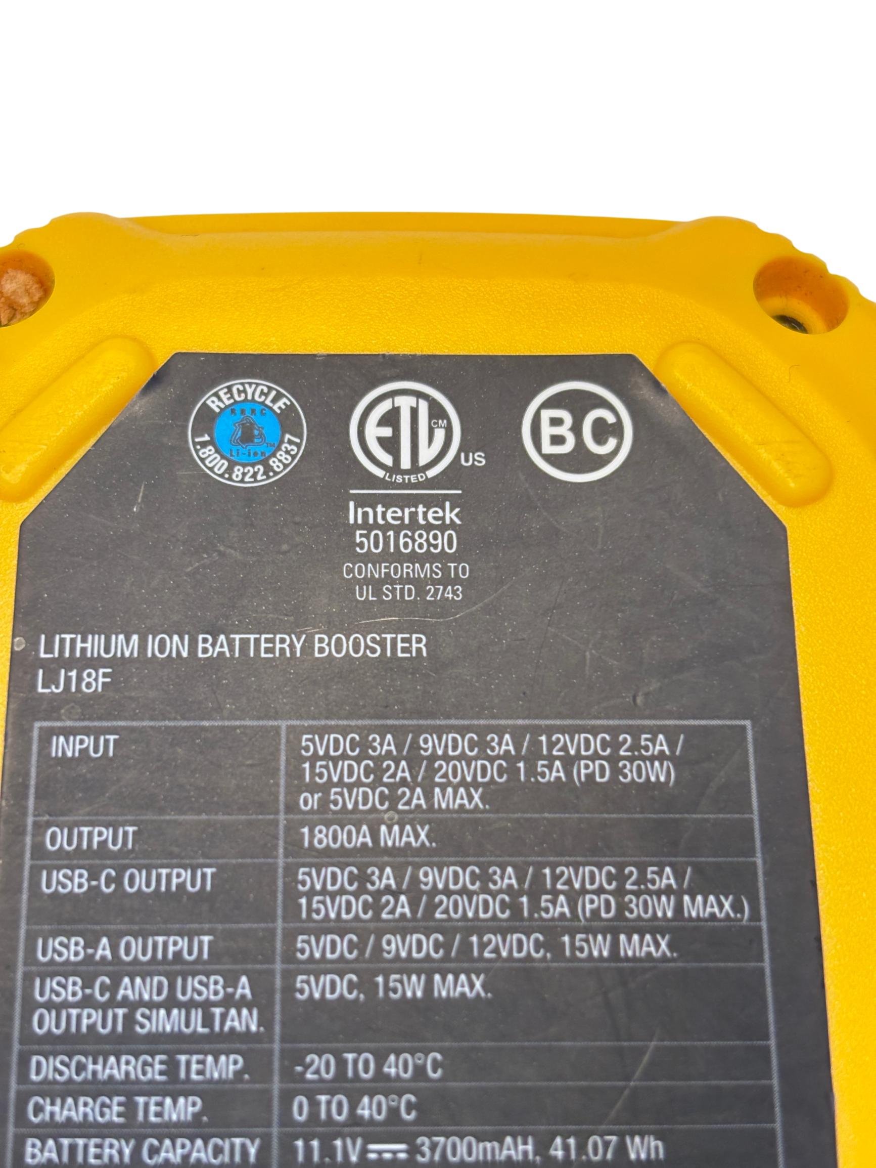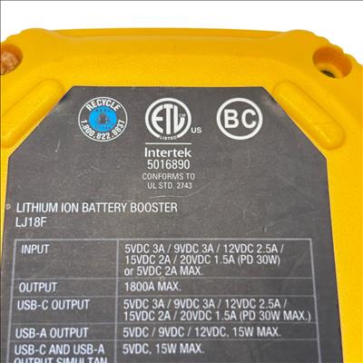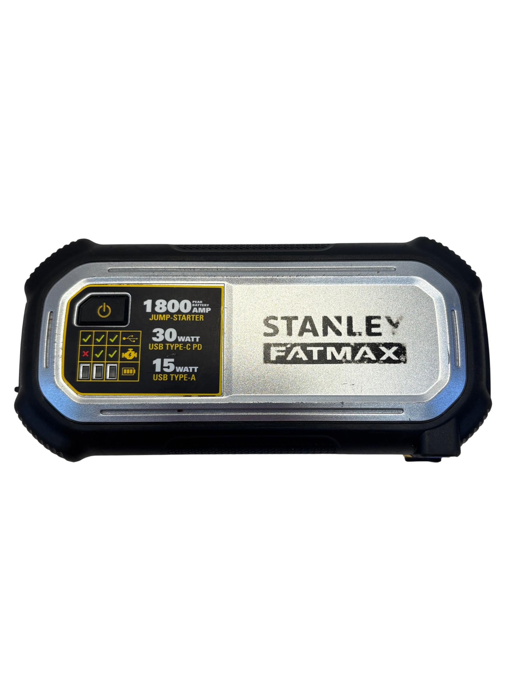 The Stanley FatMax 1800A Lithium Ion Jump Starter J18F delivers powerful 1800-amp peak current for quick vehicle starts and features versatile USB-C PD and USB-A outputs supporting up to 30W and 15W respectively for efficient device charging. Designed with multiple input voltage options and temperature operating ranges between 0 to 40 degrees Celsius, this compact and durable jump starter offers reliable performance with enhanced safety protections.